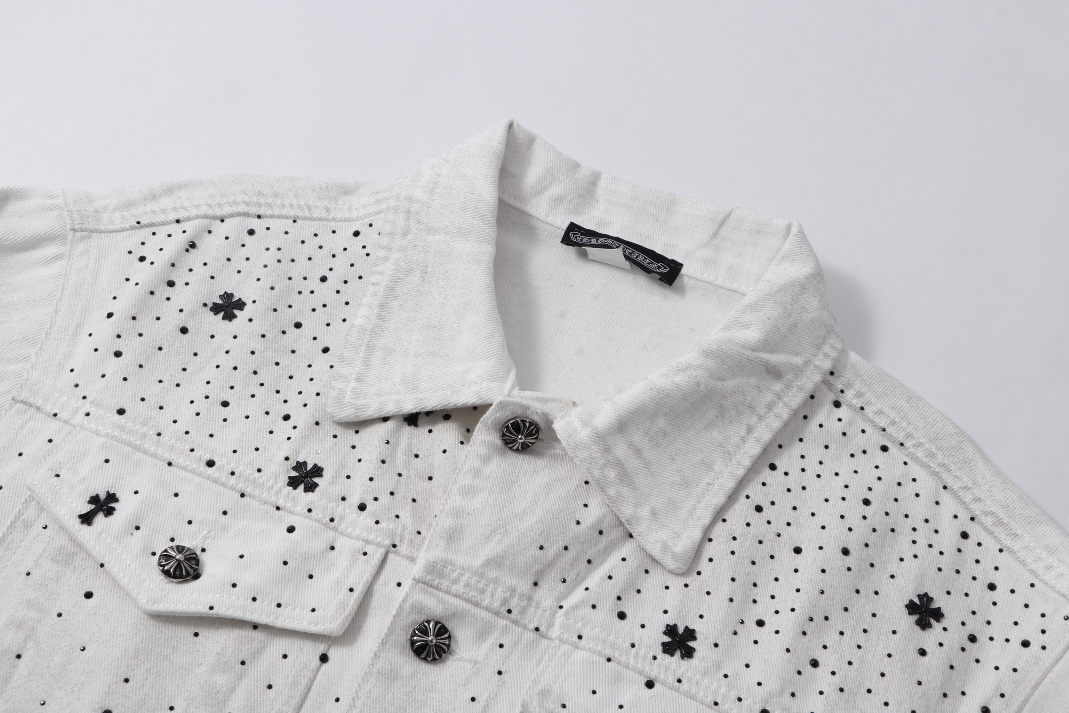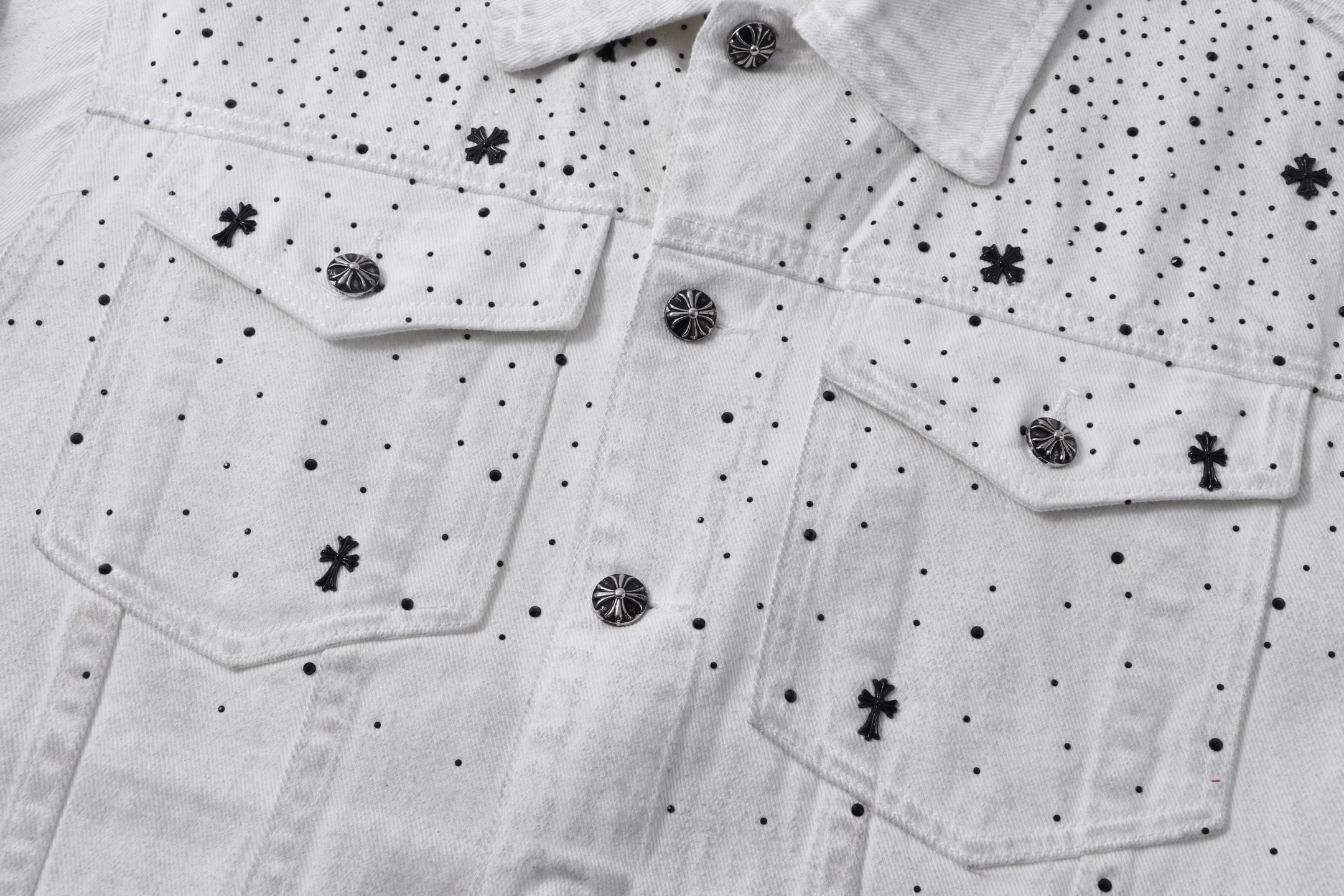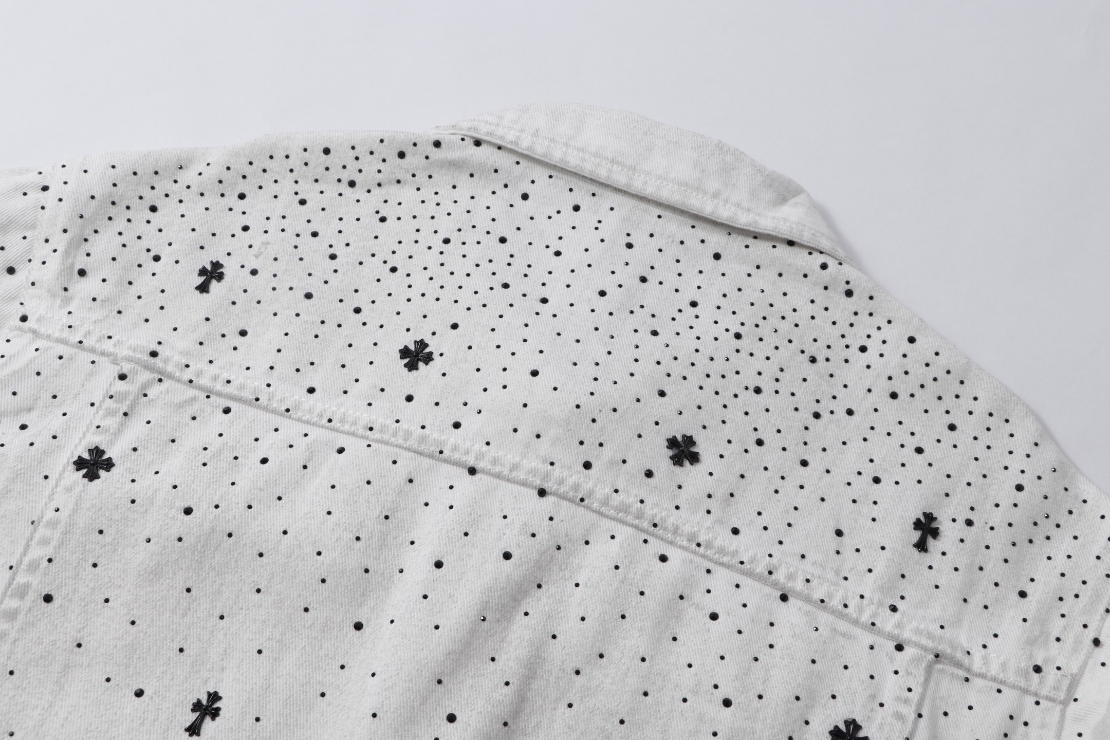 这款衣服是AAAAA 1:1 质量 (非常棒). 使用了和原版一模一样的材料. 商标部分也保持了和克罗心/Chrome Hearts一样. 图片拍摄是实物衣服拍摄, 您所收到的实物保证和我们图片一模一样.
