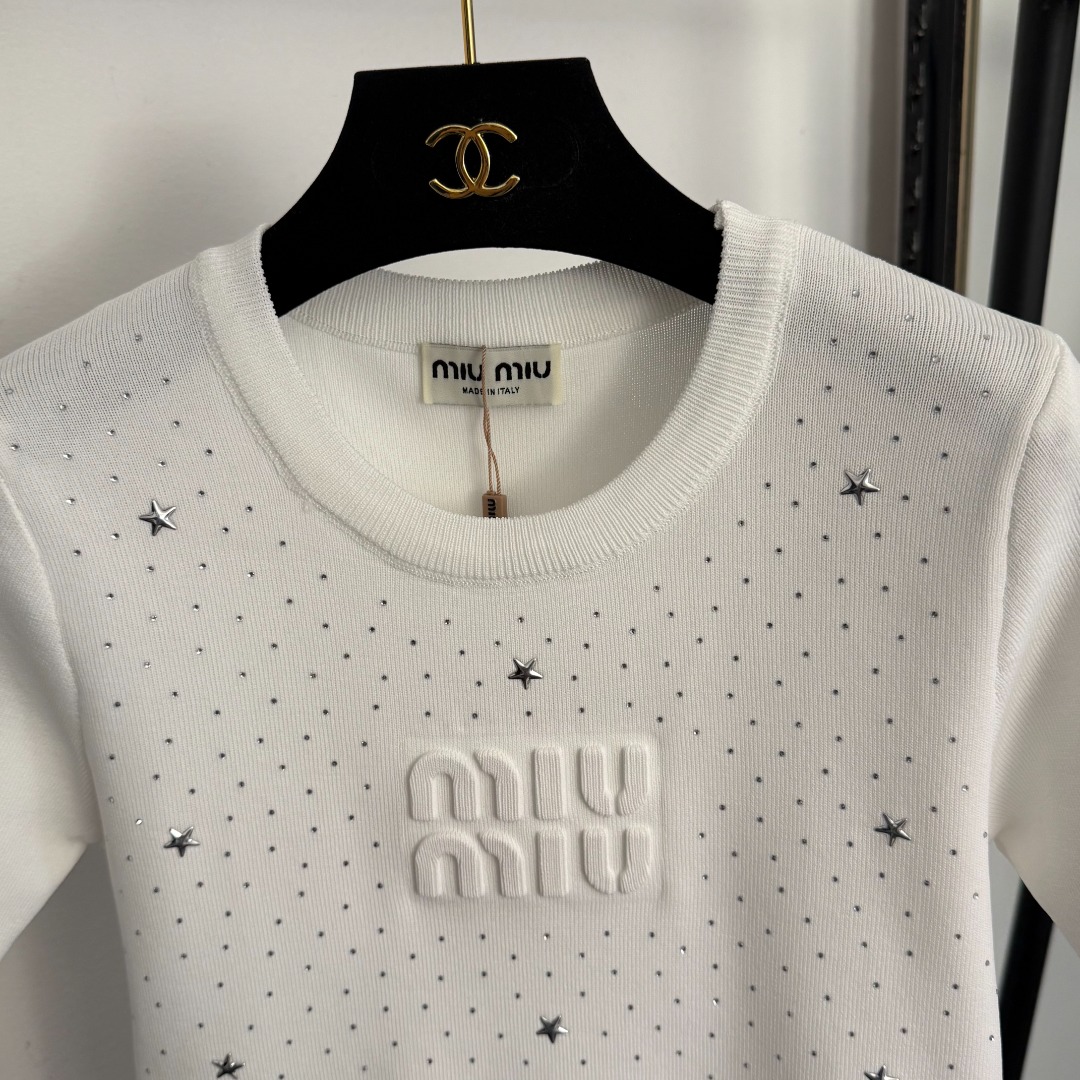 这款衣服是AAAAA 1:1 质量 (非常棒). 使用了和原版一模一样的材料. 商标部分也保持了和缪缪/Miu Miu一样. 图片拍摄是实物衣服拍摄, 您所收到的实物保证和我们图片一模一样.