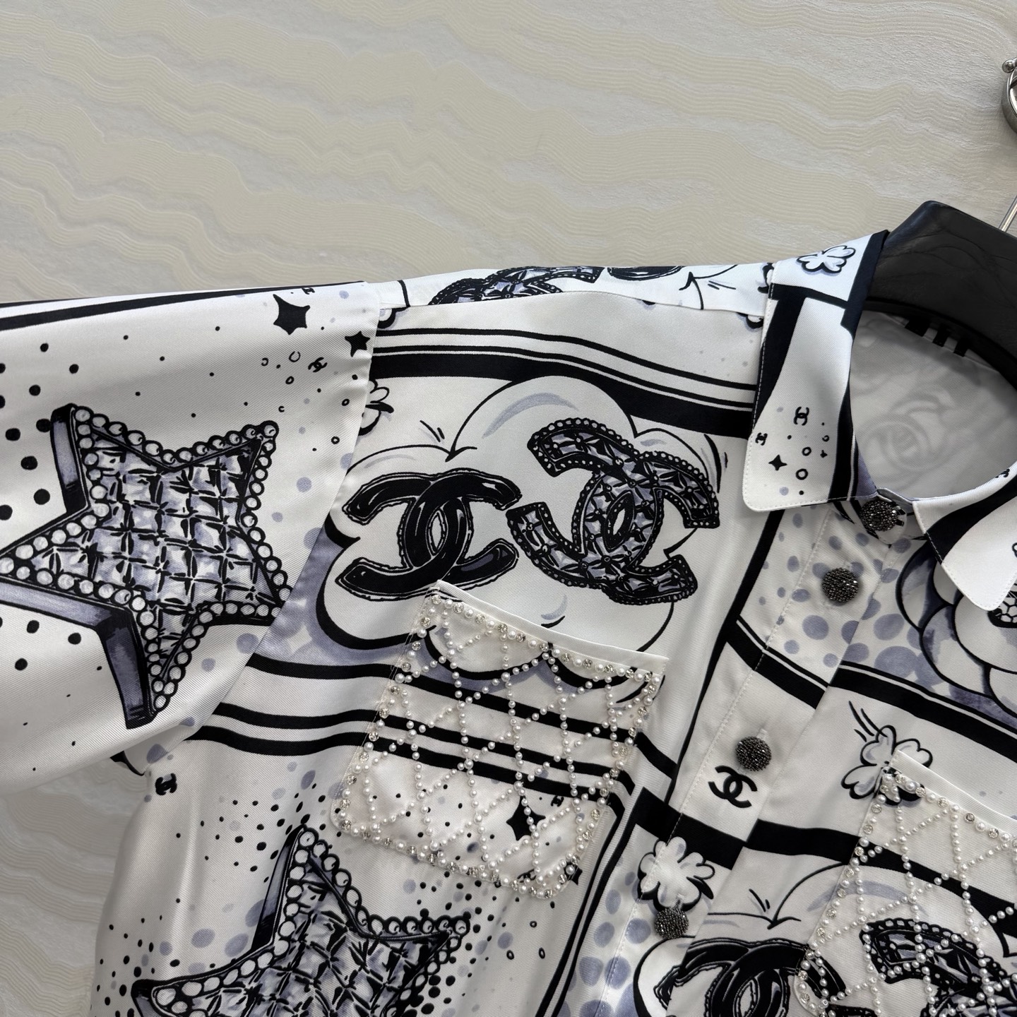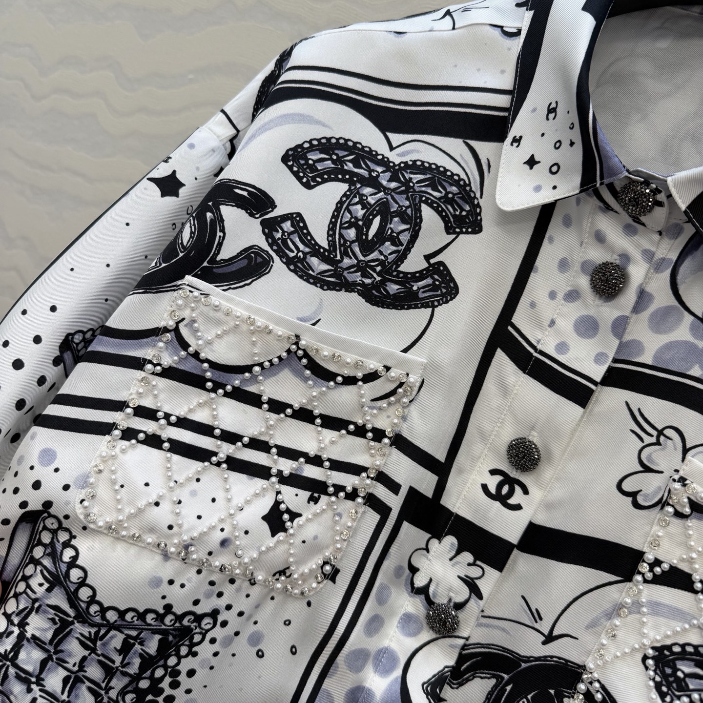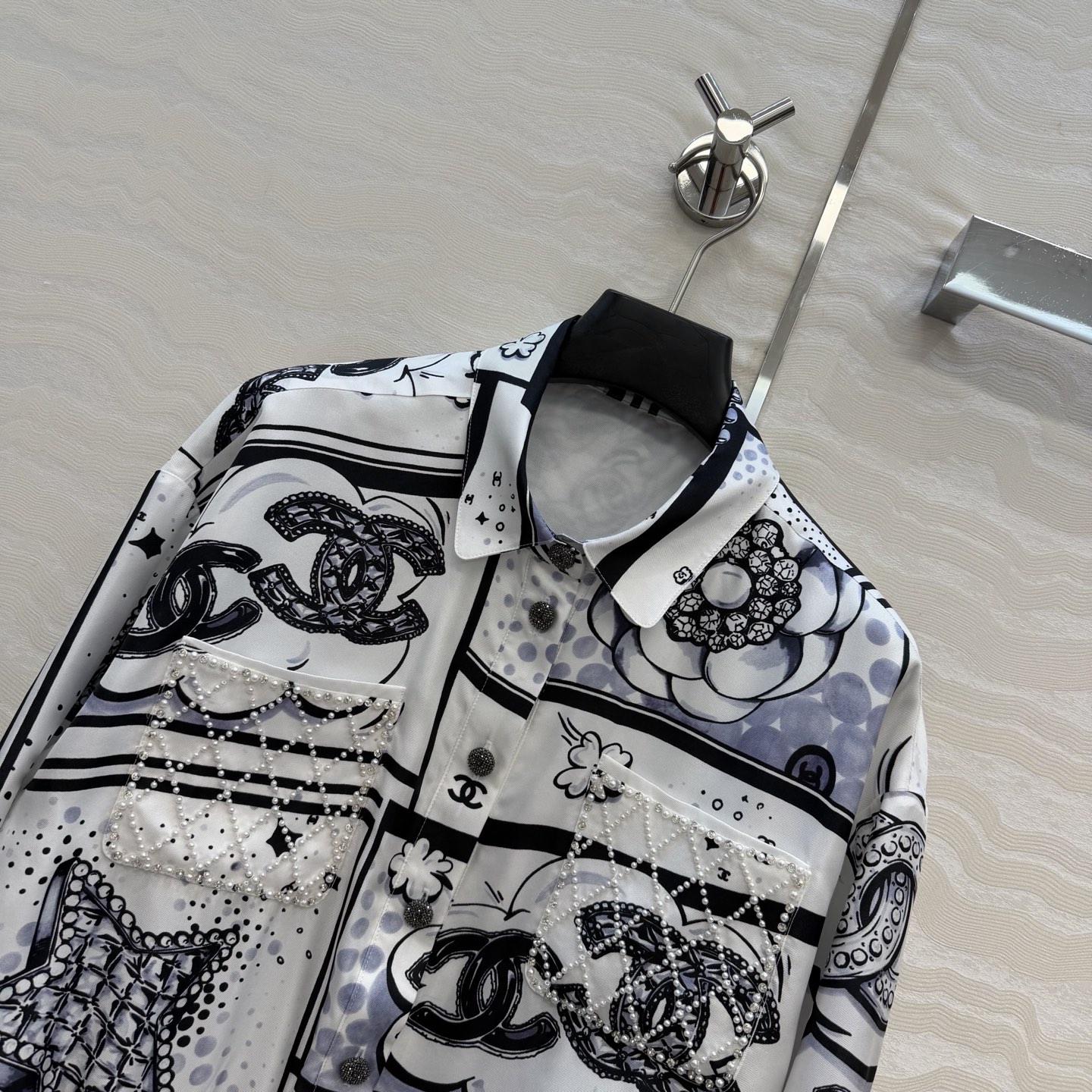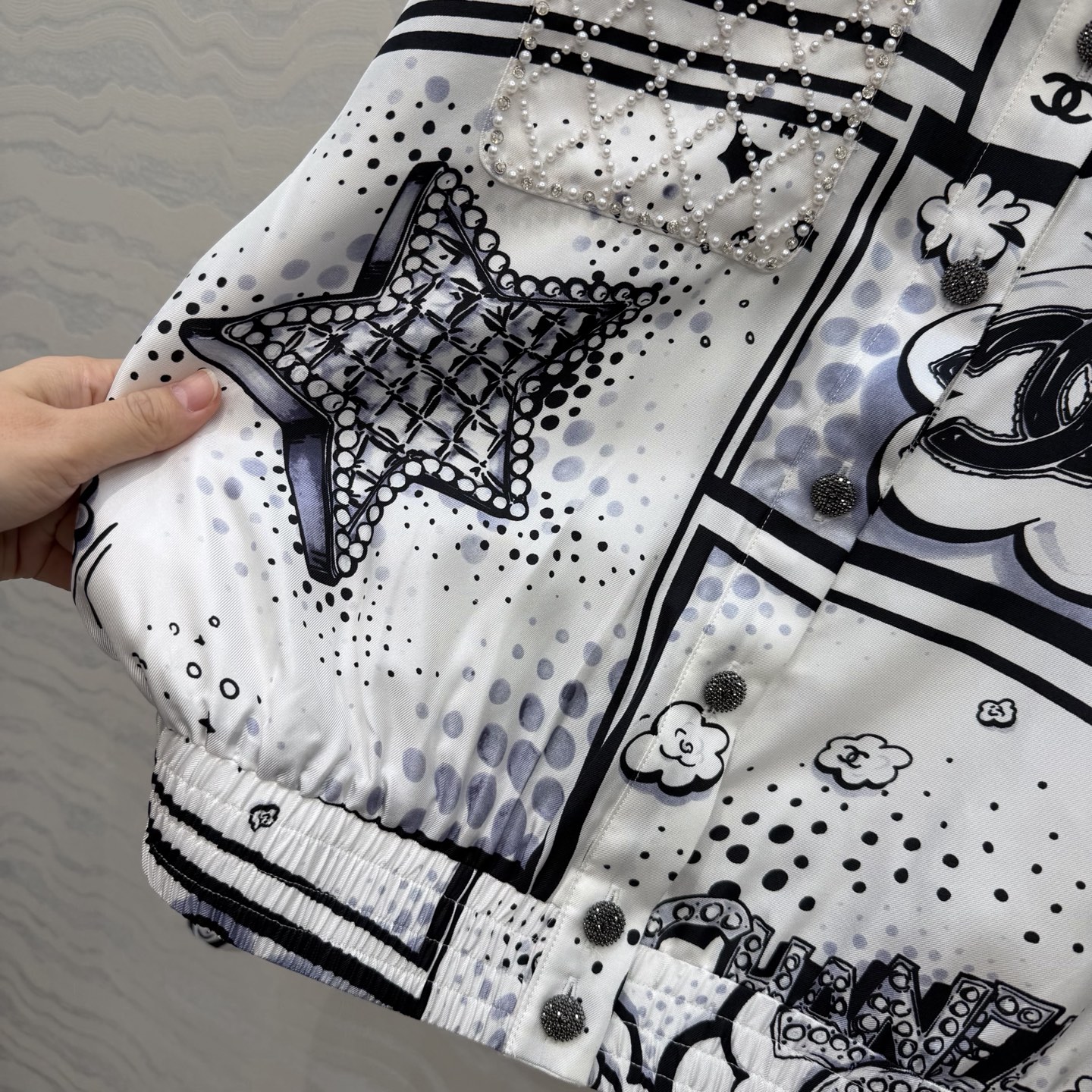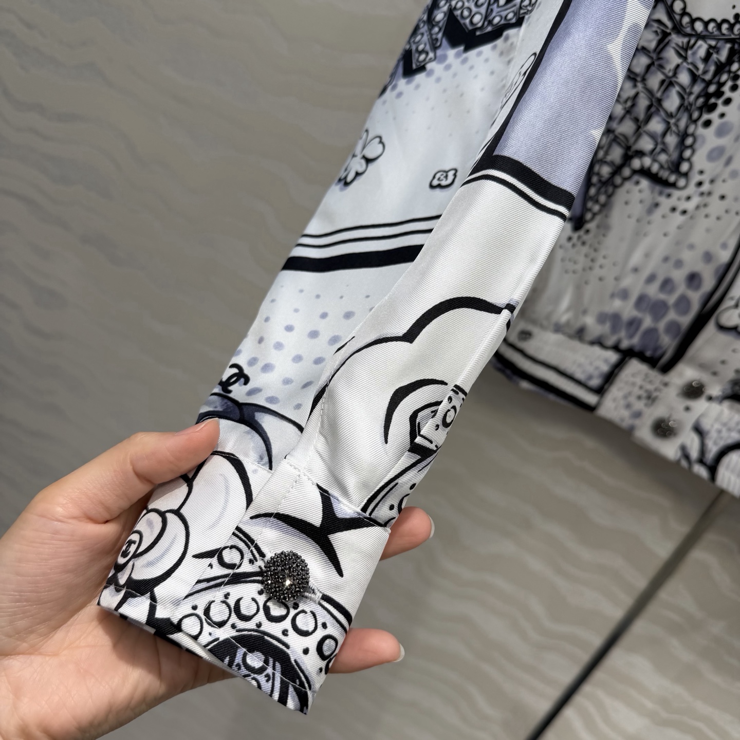 这款衣服是AAAAA 1:1 质量 (非常棒). 使用了和原版一模一样的材料. 商标部分也保持了和香奈儿/Chanel一样. 图片拍摄是实物衣服拍摄, 您所收到的实物保证和我们图片一模一样.