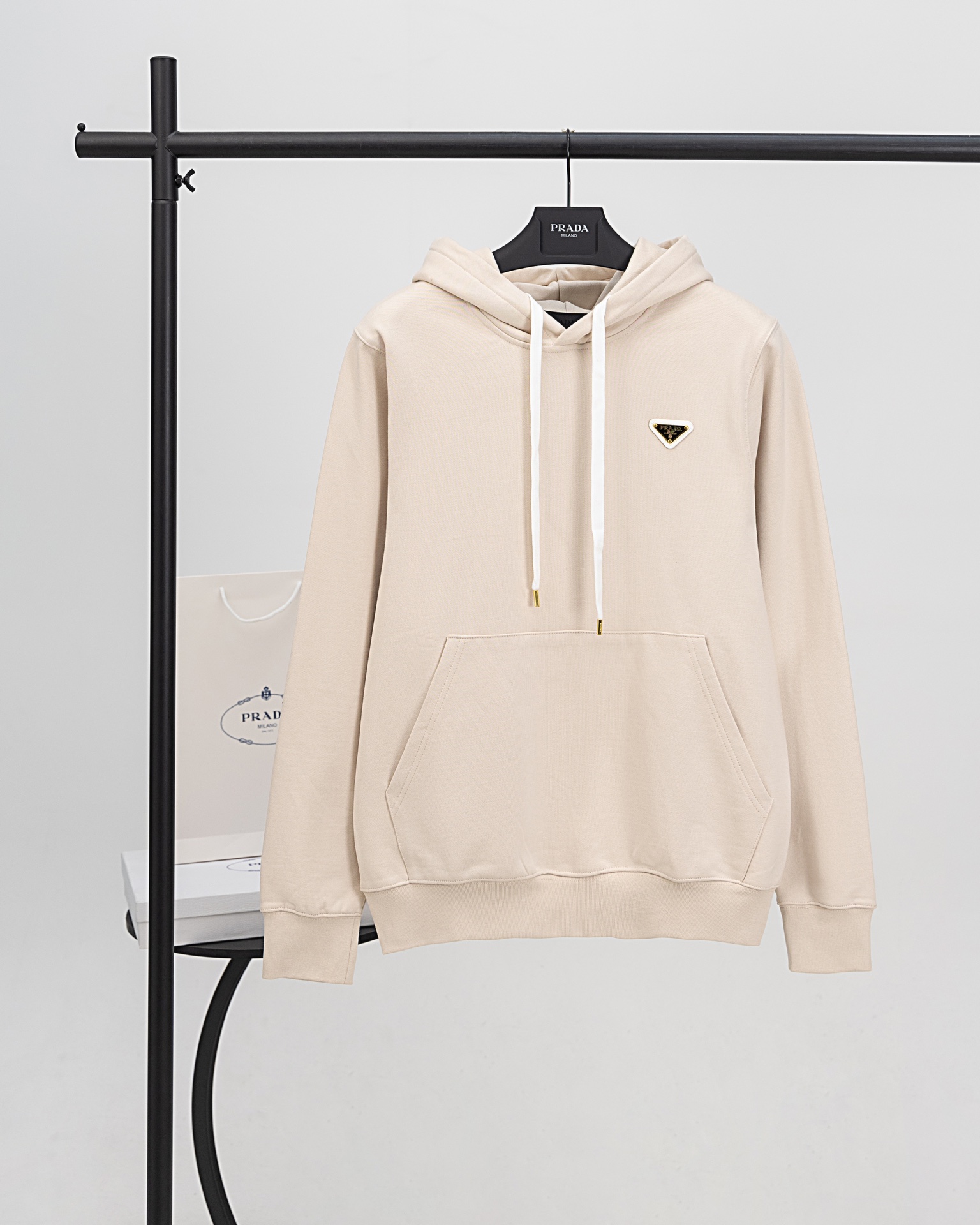 这款衣服是AAAAA 1:1 质量 (非常棒). 使用了和原版一模一样的材料. 商标部分也保持了和普拉达/Prada一样. 图片拍摄是实物衣服拍摄, 您所收到的实物保证和我们图片一模一样.
