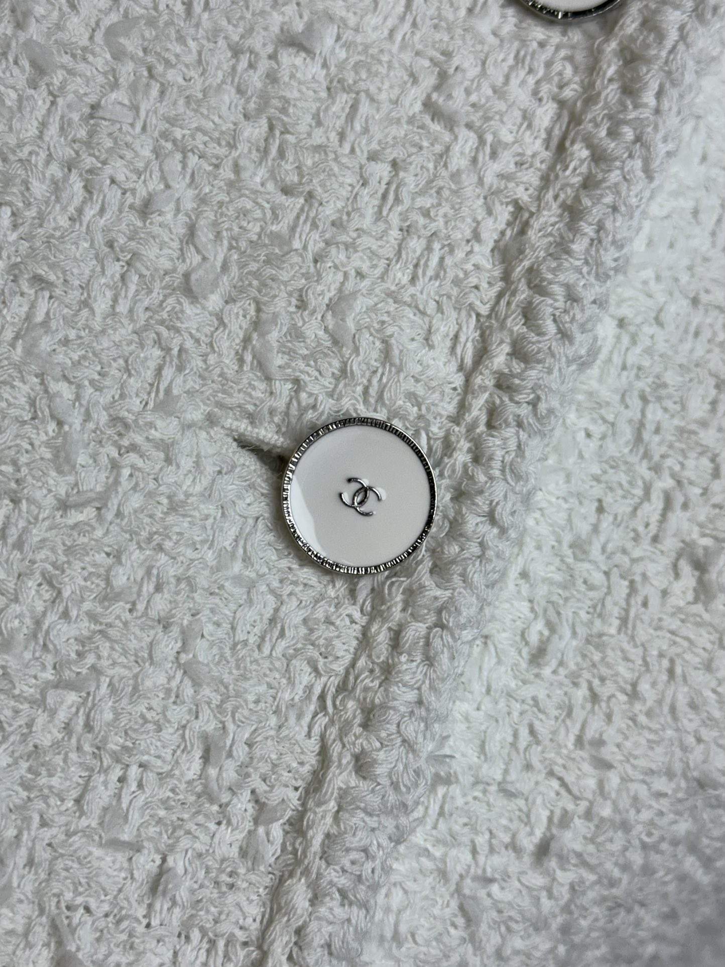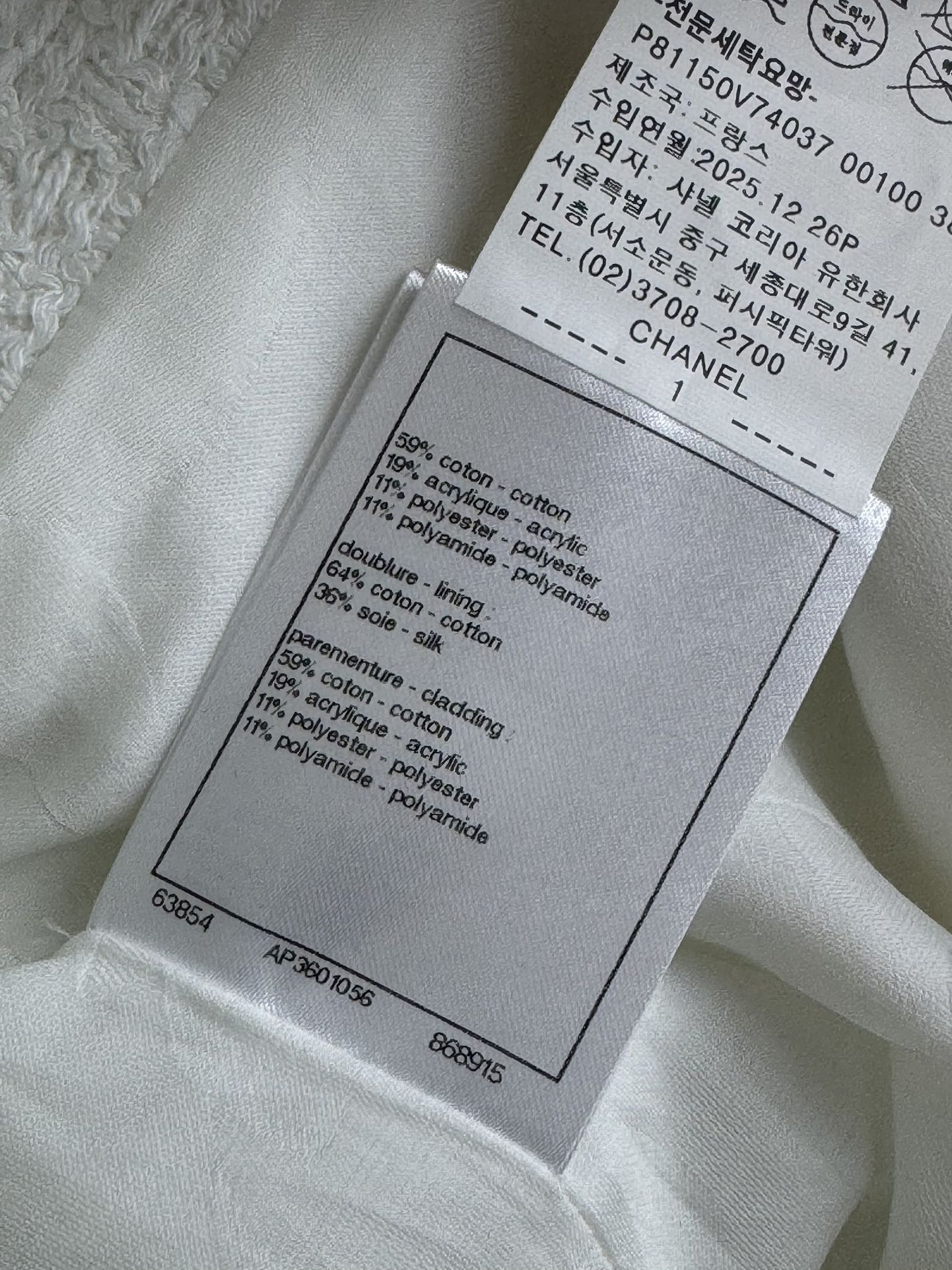 这款衣服是AAAAA 1:1 质量 (非常棒). 使用了和原版一模一样的材料. 商标部分也保持了和香奈儿/Chanel一样. 图片拍摄是实物衣服拍摄, 您所收到的实物保证和我们图片一模一样.