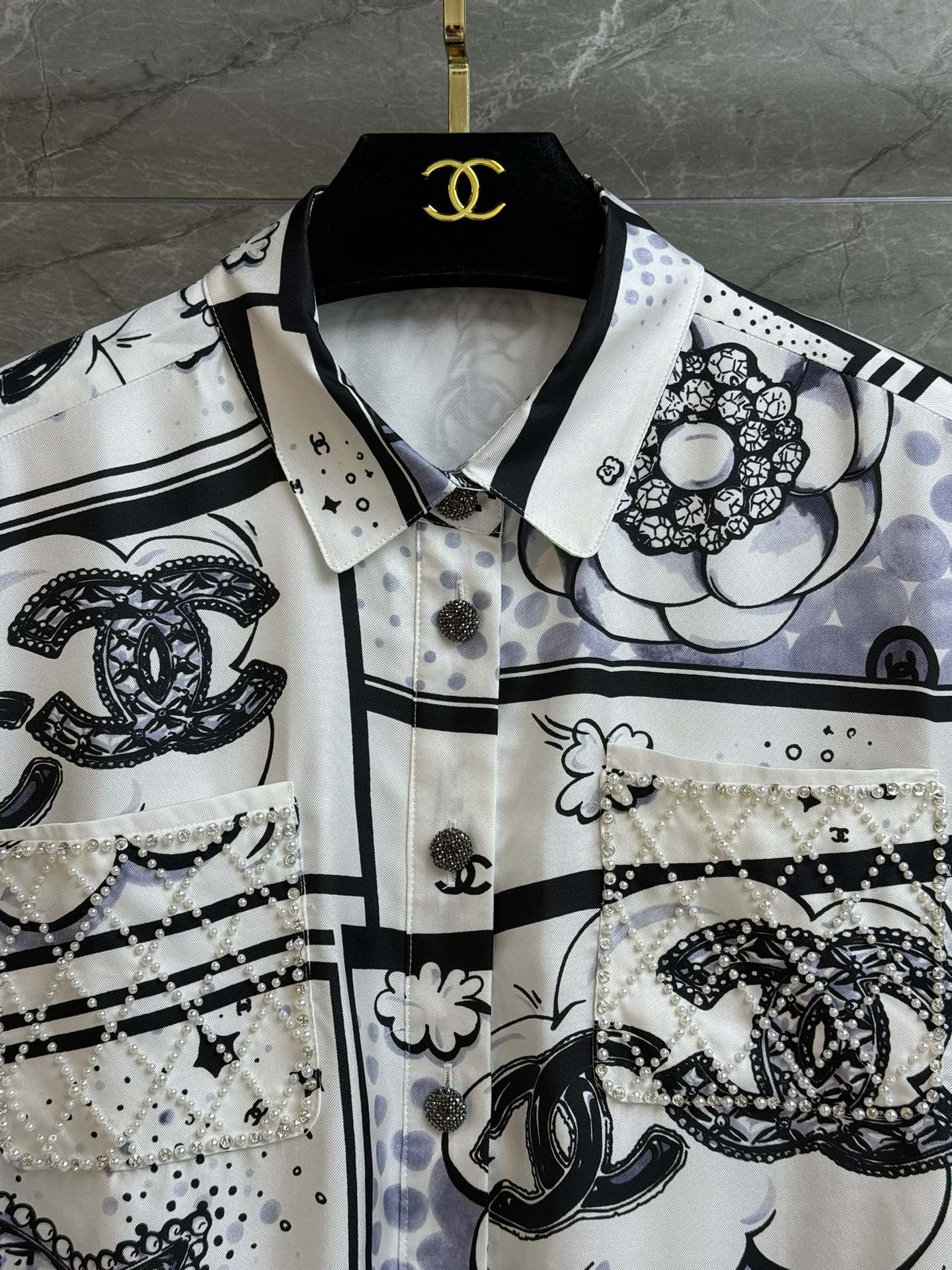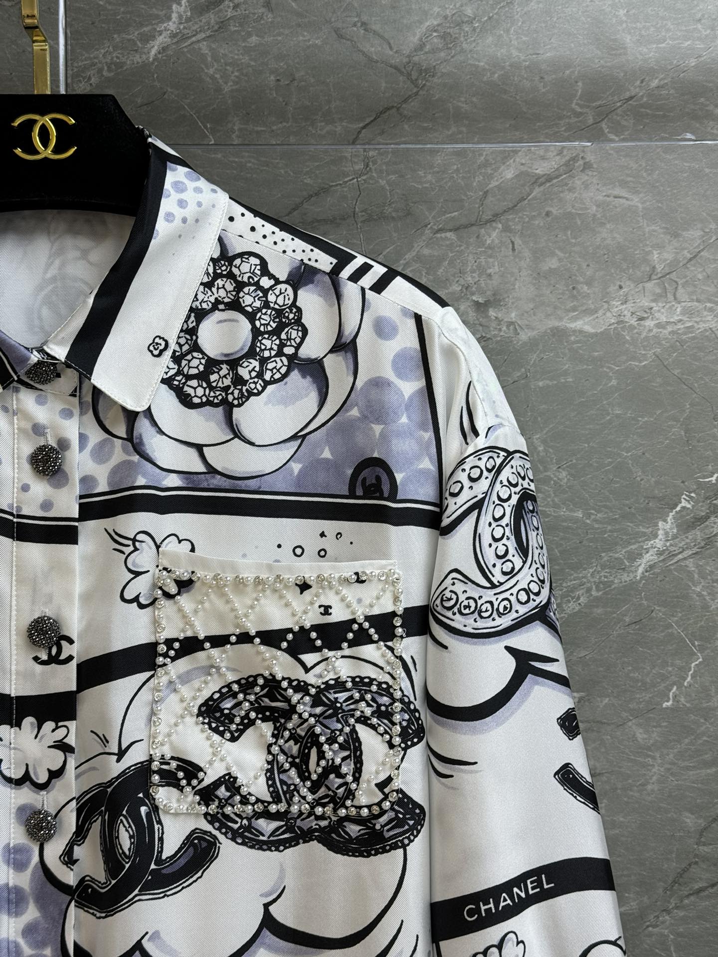这款衣服是AAAAA 1:1 质量 (非常棒). 使用了和原版一模一样的材料. 商标部分也保持了和香奈儿/Chanel一样. 图片拍摄是实物衣服拍摄, 您所收到的实物保证和我们图片一模一样.