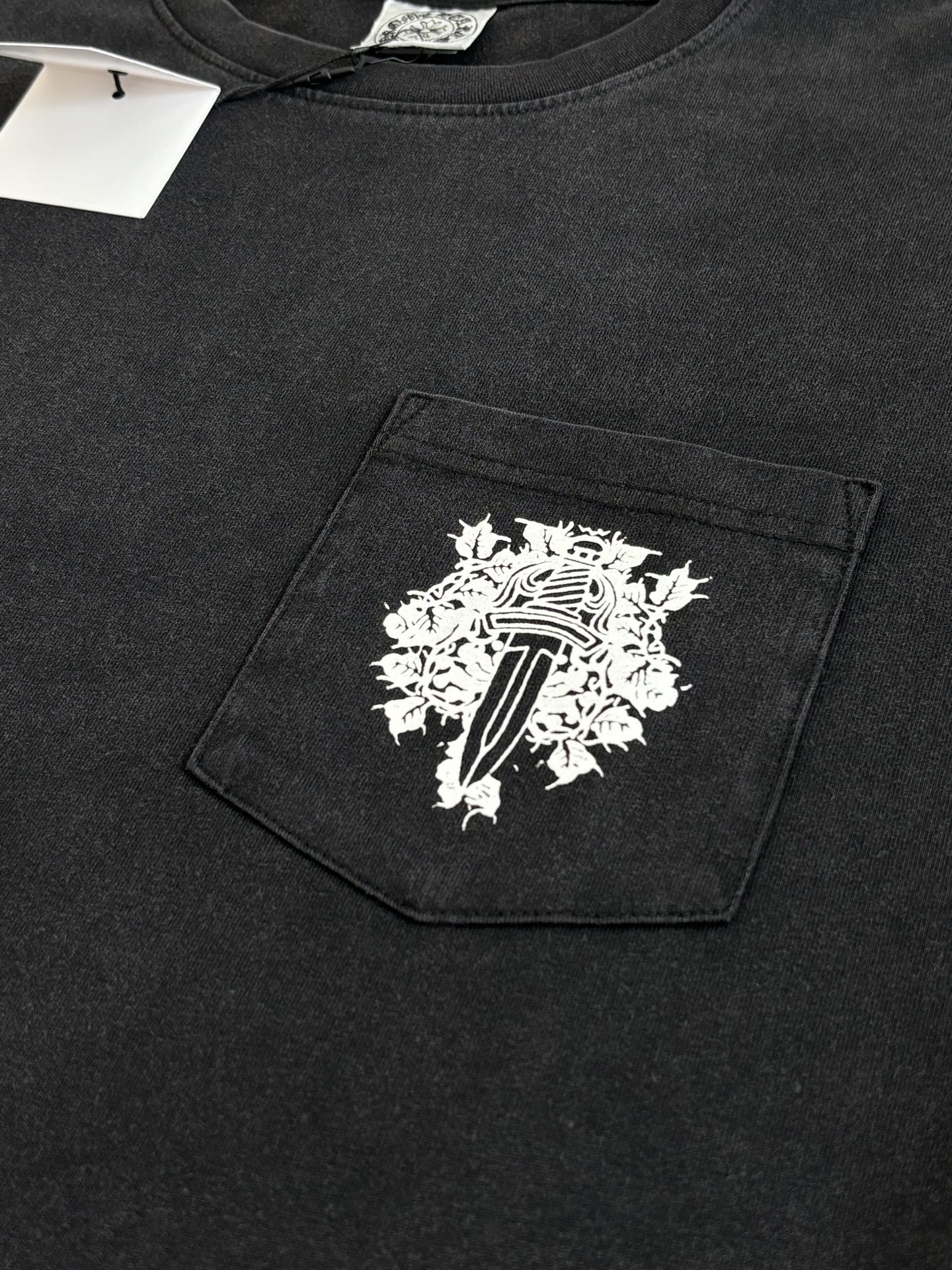 这款衣服是AAAAA 1:1 质量 (非常棒). 使用了和原版一模一样的材料. 商标部分也保持了和克罗心/Chrome Hearts一样. 图片拍摄是实物衣服拍摄, 您所收到的实物保证和我们图片一模一样.