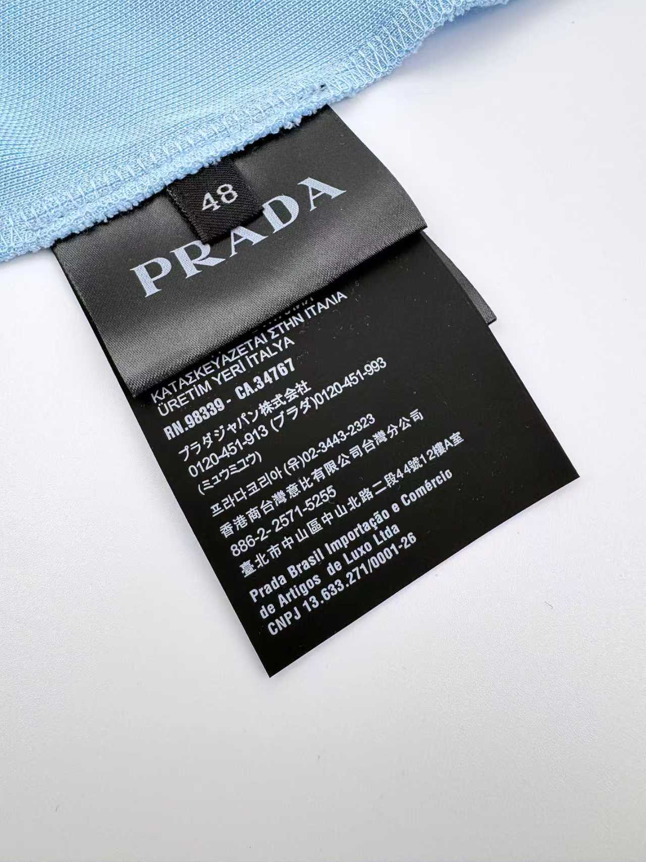 这款衣服是AAAAA 1:1 质量 (非常棒). 使用了和原版一模一样的材料. 商标部分也保持了和普拉达/Prada一样. 图片拍摄是实物衣服拍摄, 您所收到的实物保证和我们图片一模一样.