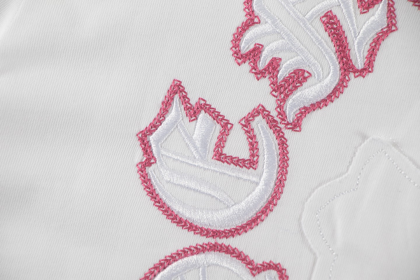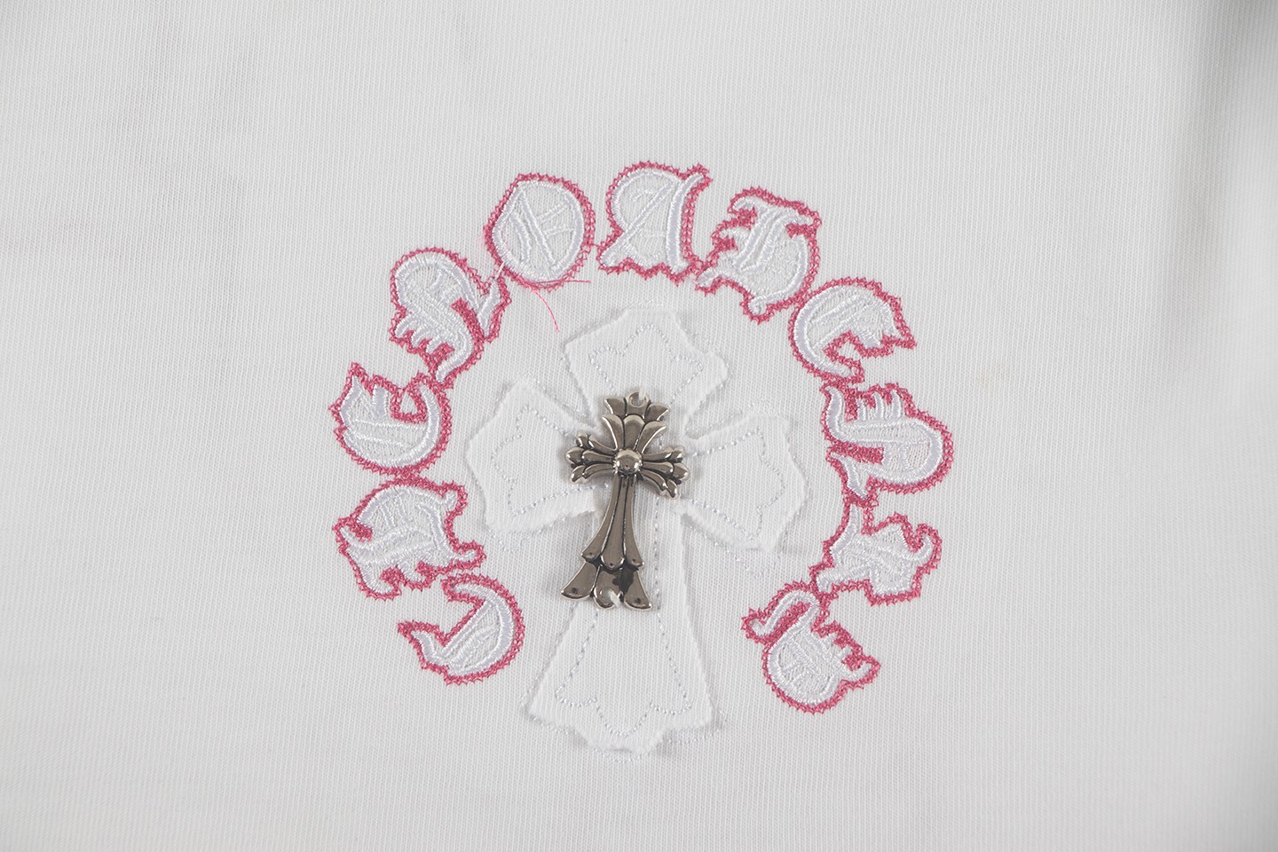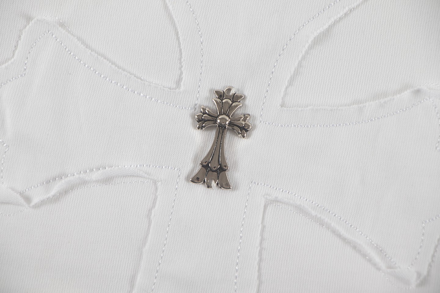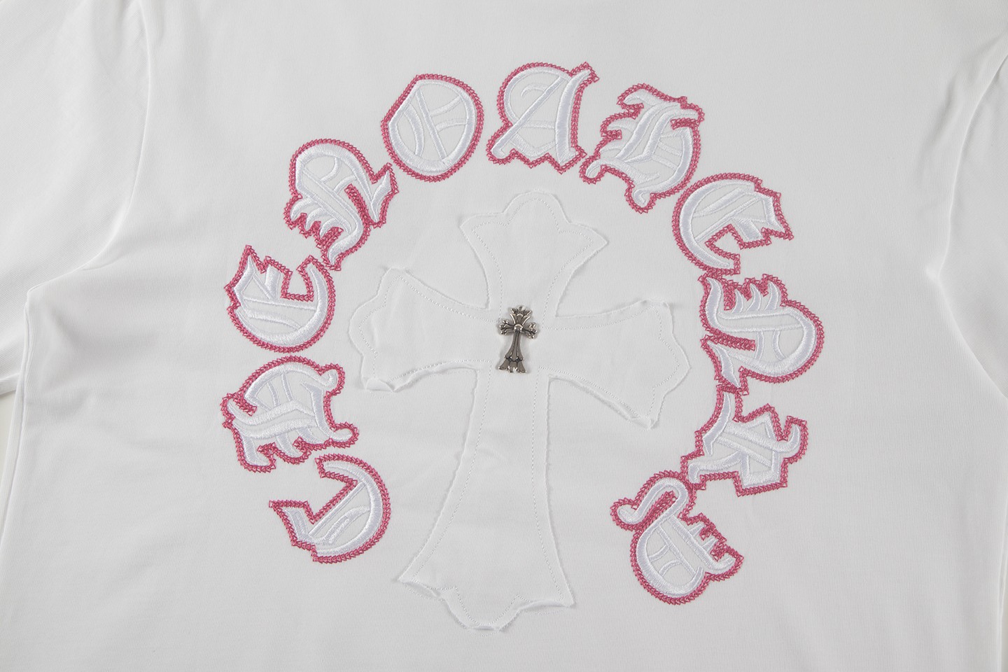 这款衣服是AAAAA 1:1 质量 (非常棒). 使用了和原版一模一样的材料. 商标部分也保持了和克罗心/Chrome Hearts一样. 图片拍摄是实物衣服拍摄, 您所收到的实物保证和我们图片一模一样.