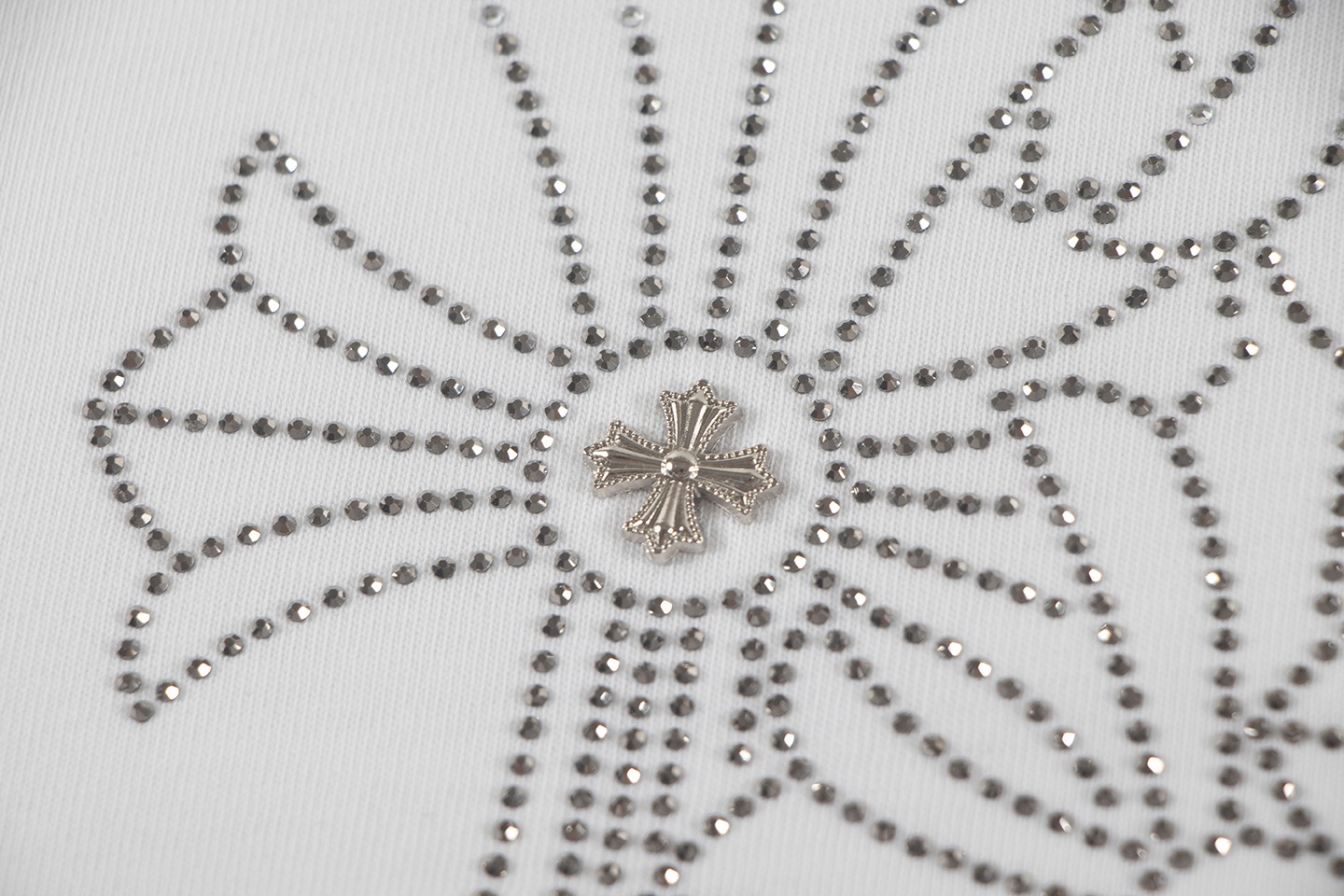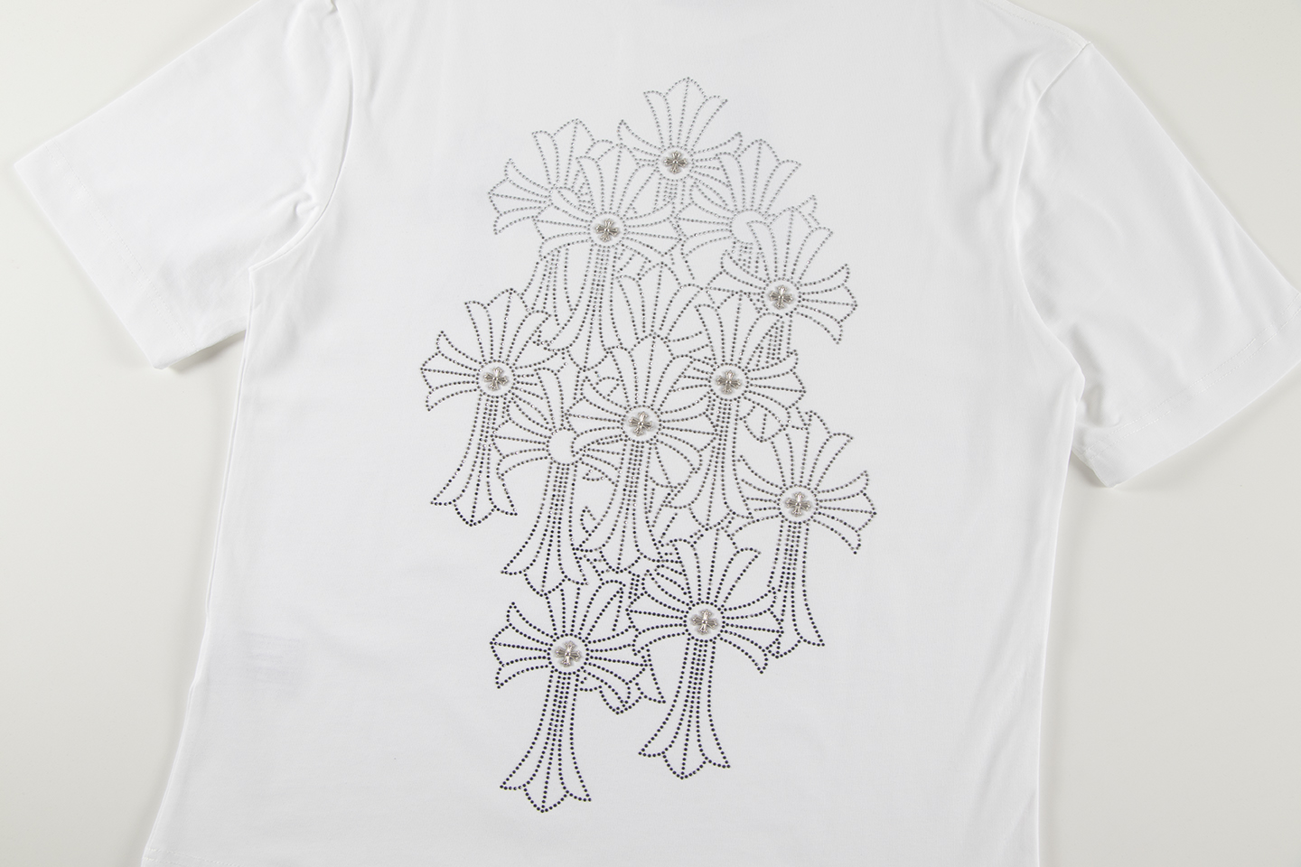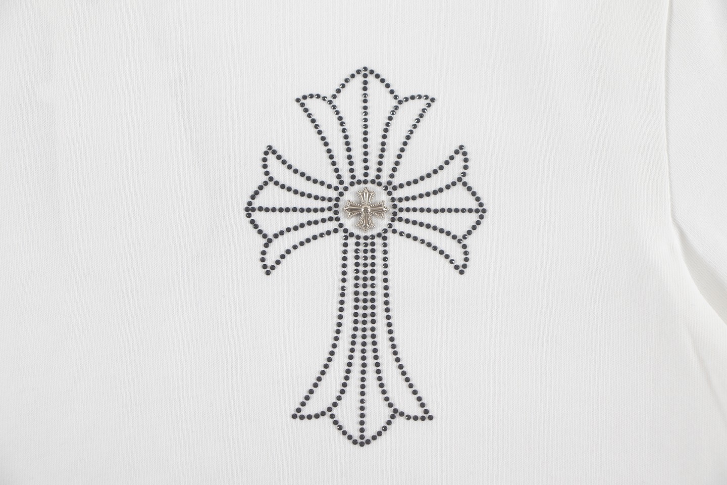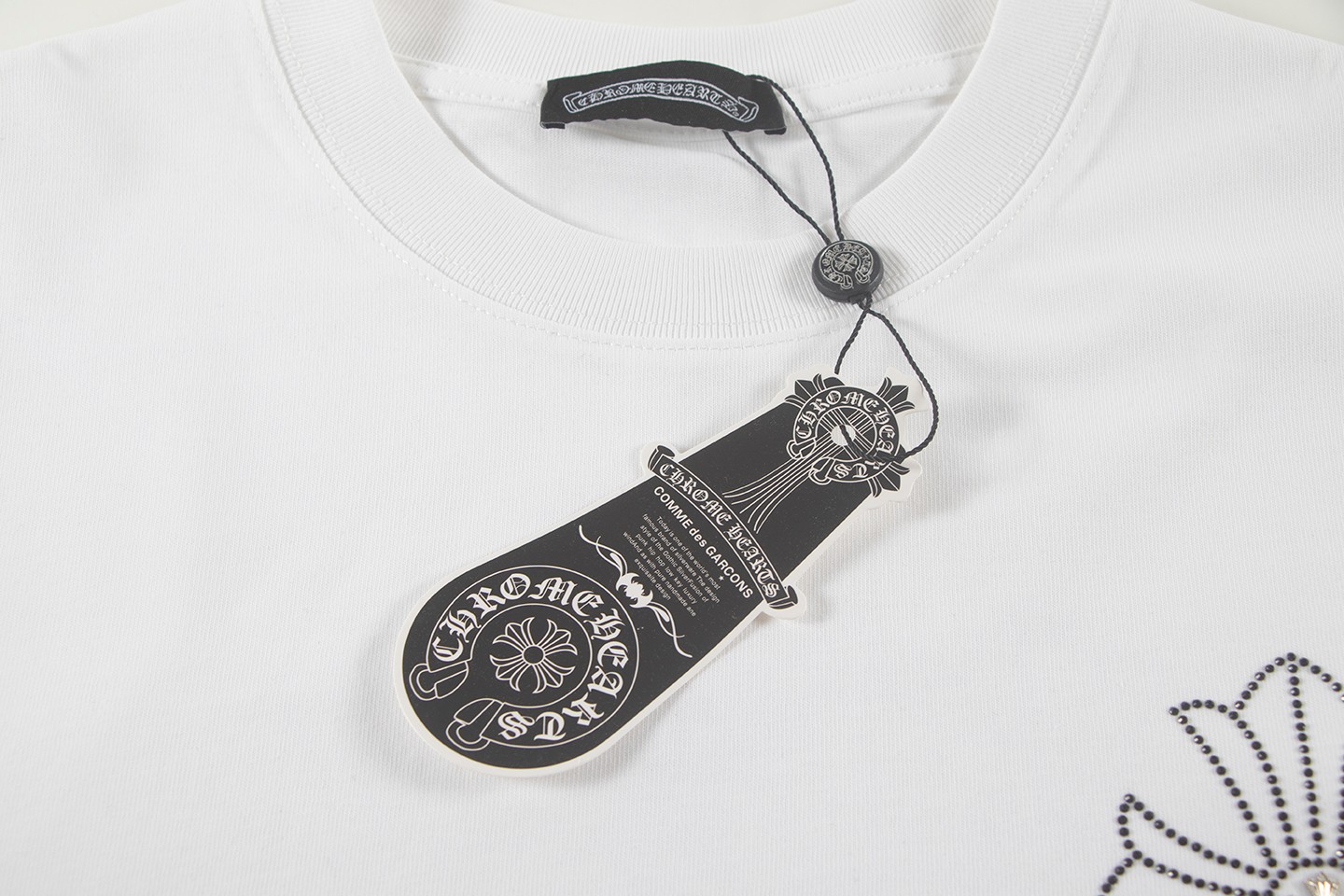 这款衣服是AAAAA 1:1 质量 (非常棒). 使用了和原版一模一样的材料. 商标部分也保持了和克罗心/Chrome Hearts一样. 图片拍摄是实物衣服拍摄, 您所收到的实物保证和我们图片一模一样.