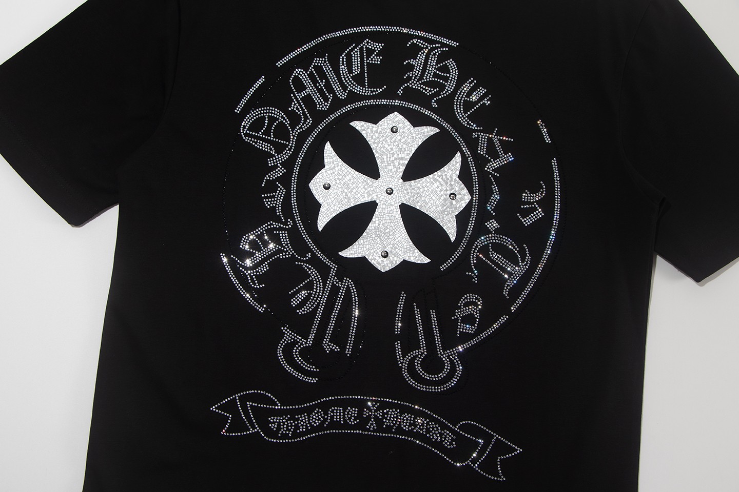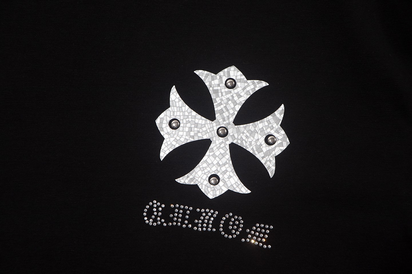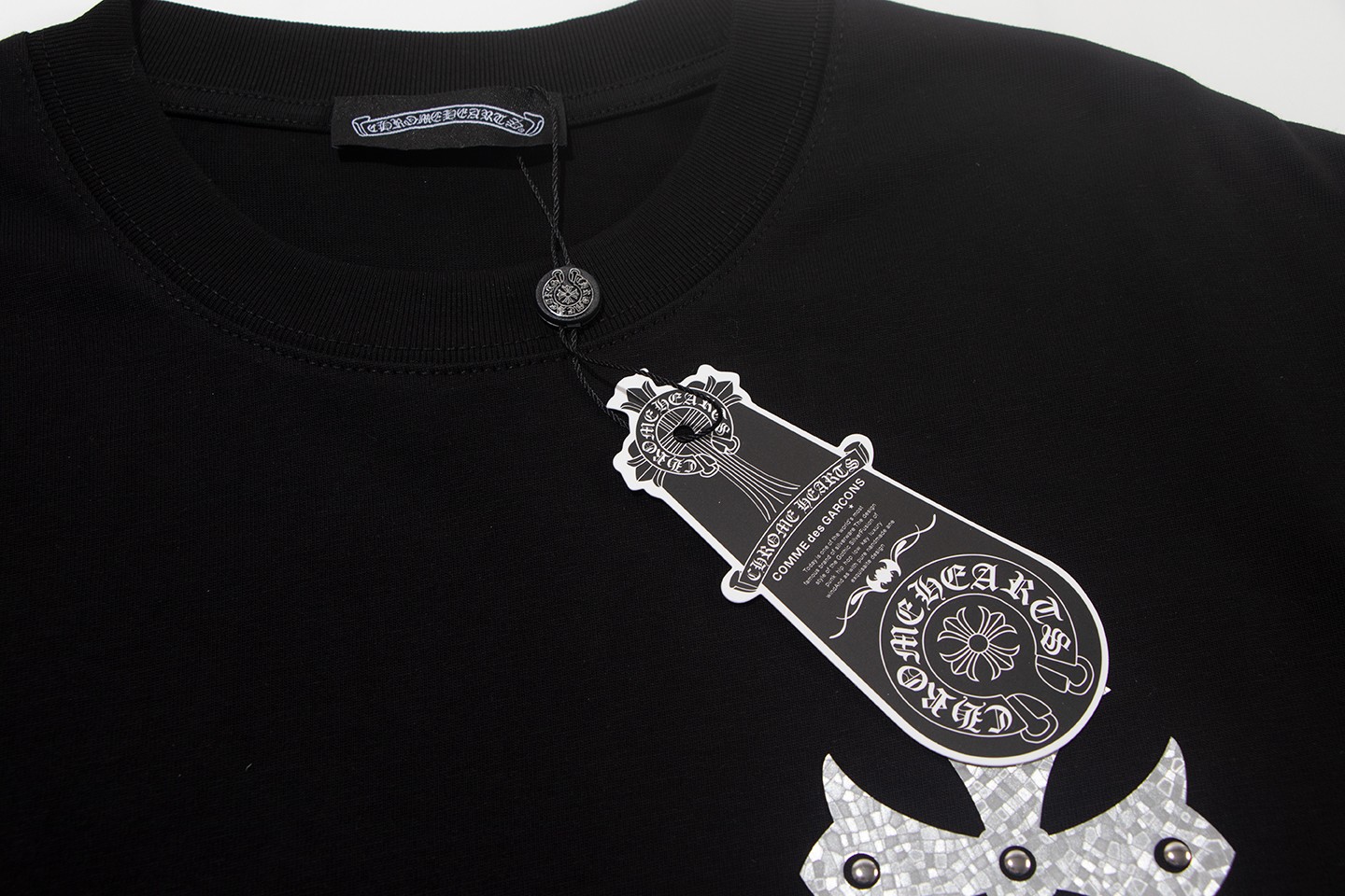 这款衣服是AAAAA 1:1 质量 (非常棒). 使用了和原版一模一样的材料. 商标部分也保持了和克罗心/Chrome Hearts一样. 图片拍摄是实物衣服拍摄, 您所收到的实物保证和我们图片一模一样.