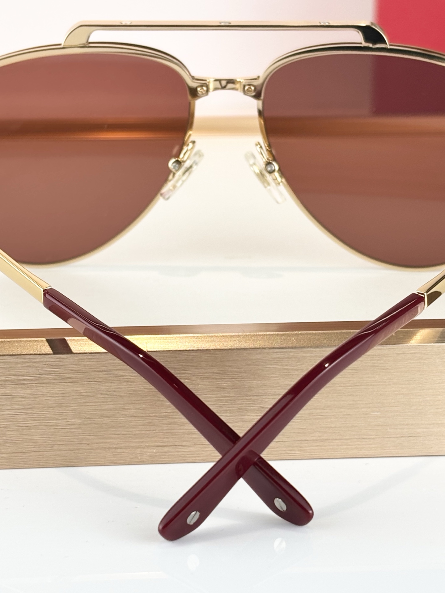 这款太阳眼镜是AAAAA 1:1 质量 (非常棒). 使用了和原版一模一样的材料. 商标部分也保持了和卡地亚/Cartier一样. 图片拍摄是实物太阳眼镜拍摄, 您所收到的实物保证和我们图片一模一样.