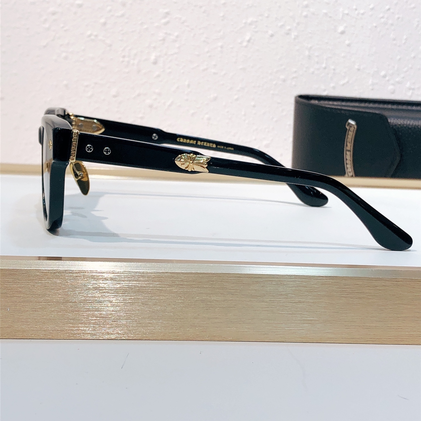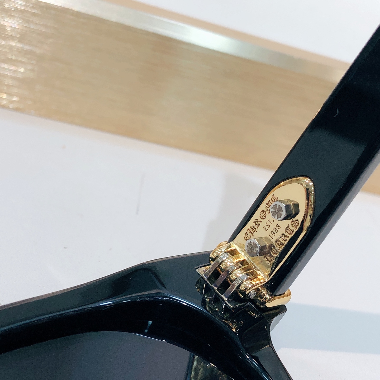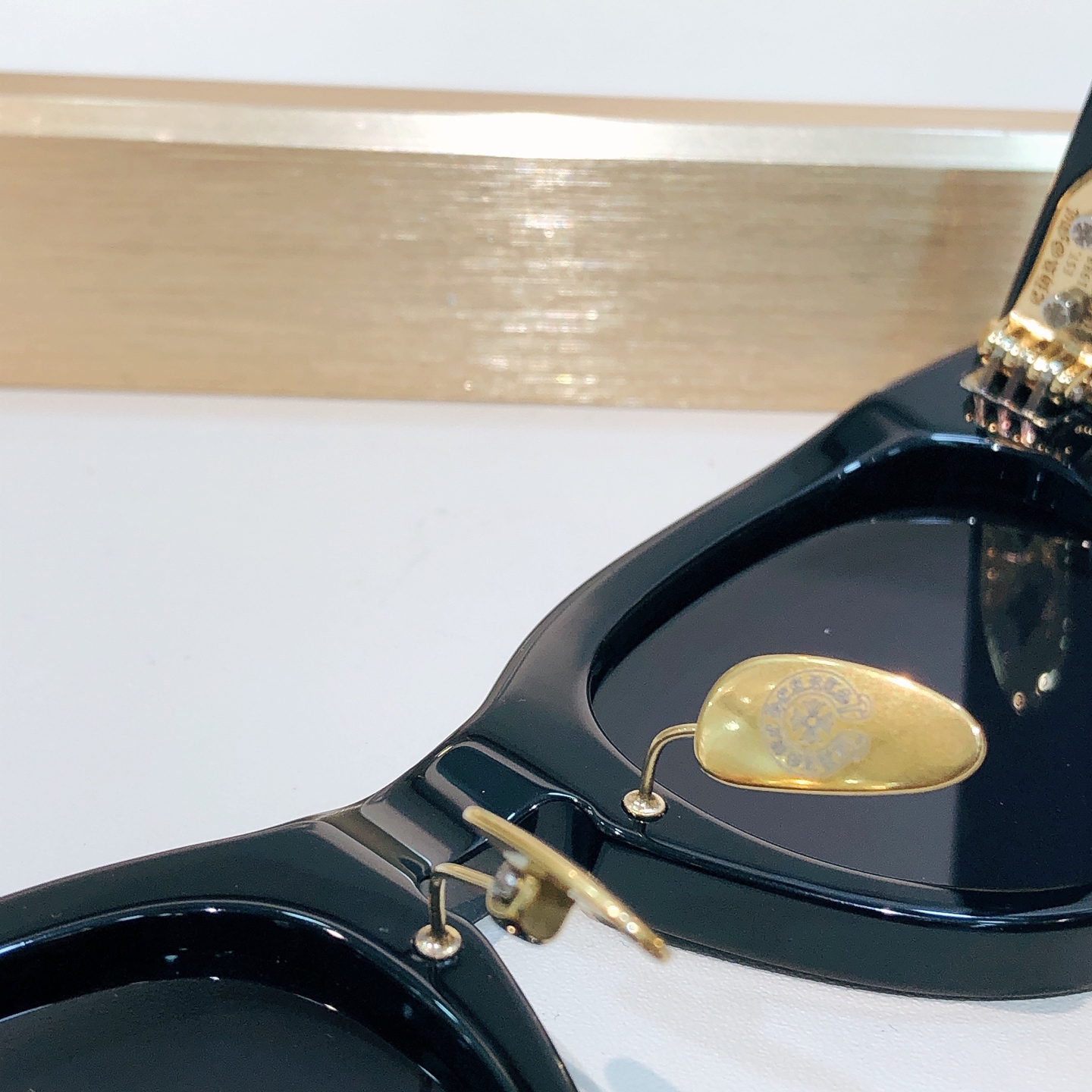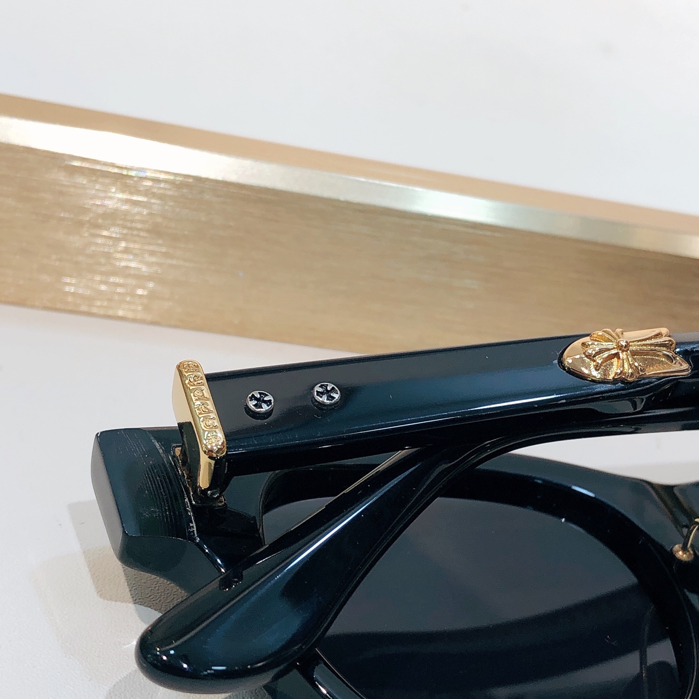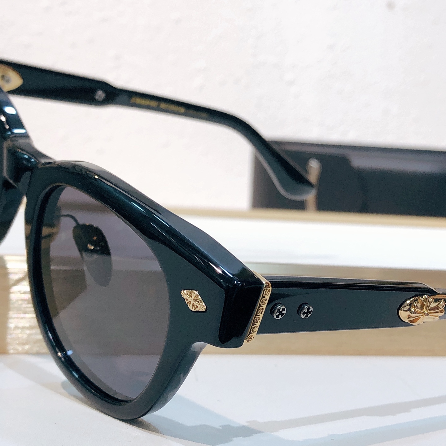 这款太阳眼镜是AAAAA 1:1 质量 (非常棒). 使用了和原版一模一样的材料. 商标部分也保持了和克罗心/Chrome Hearts一样. 图片拍摄是实物太阳眼镜拍摄, 您所收到的实物保证和我们图片一模一样.