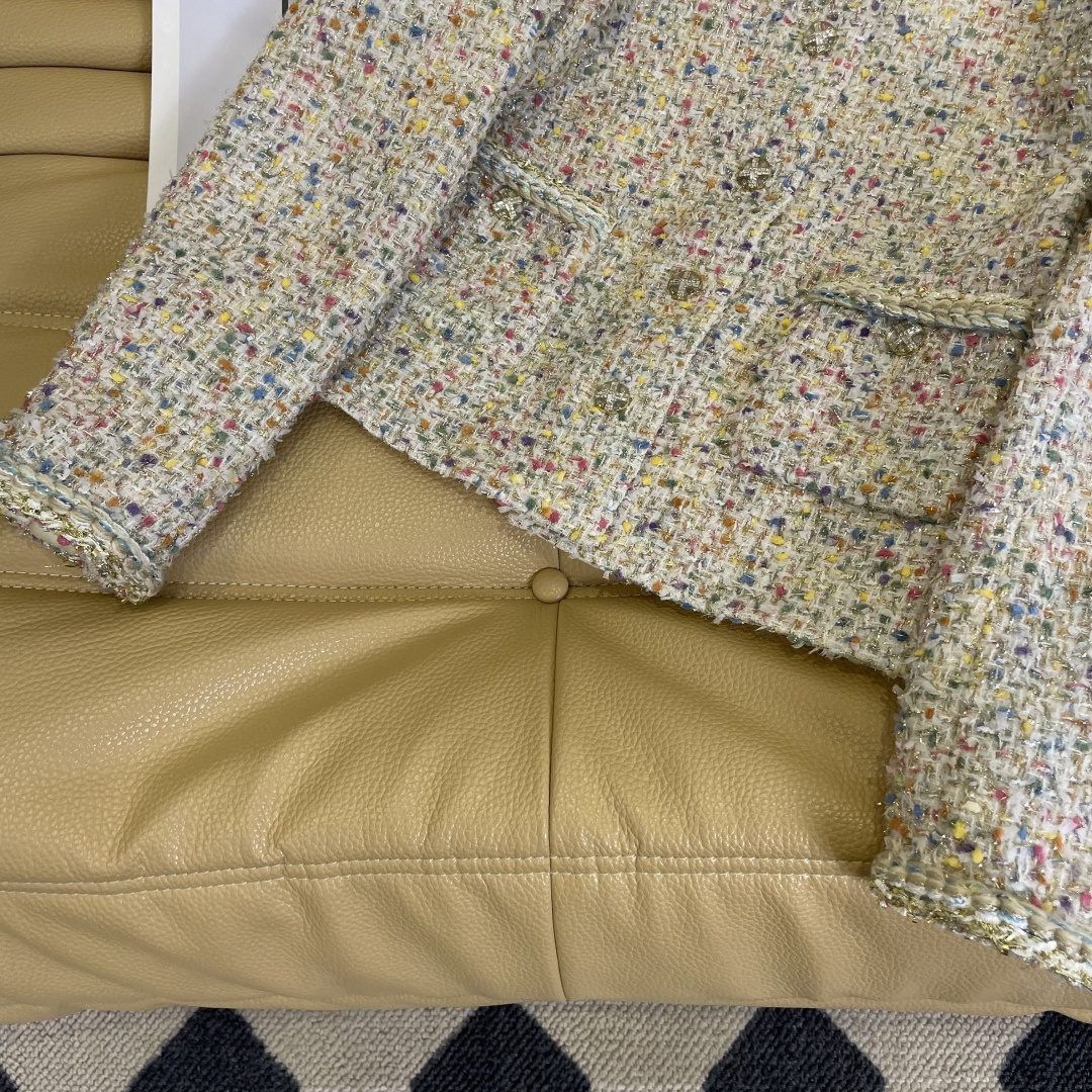 这款衣服是AAAAA 1:1 质量 (非常棒). 使用了和原版一模一样的材料. 商标部分也保持了和香奈儿/Chanel一样. 图片拍摄是实物衣服拍摄, 您所收到的实物保证和我们图片一模一样.