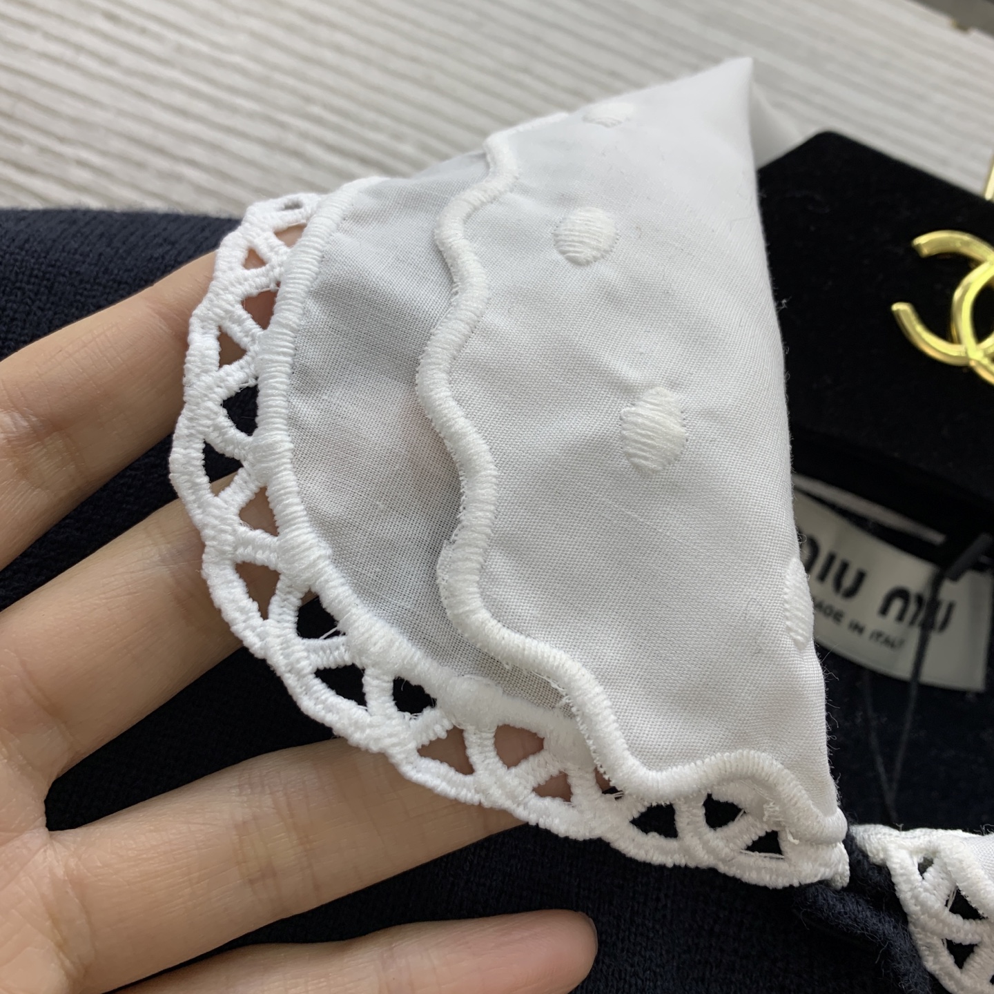 这款衣服是AAAAA 1:1 质量 (非常棒). 使用了和原版一模一样的材料. 商标部分也保持了和缪缪/Miu Miu一样. 图片拍摄是实物衣服拍摄, 您所收到的实物保证和我们图片一模一样.