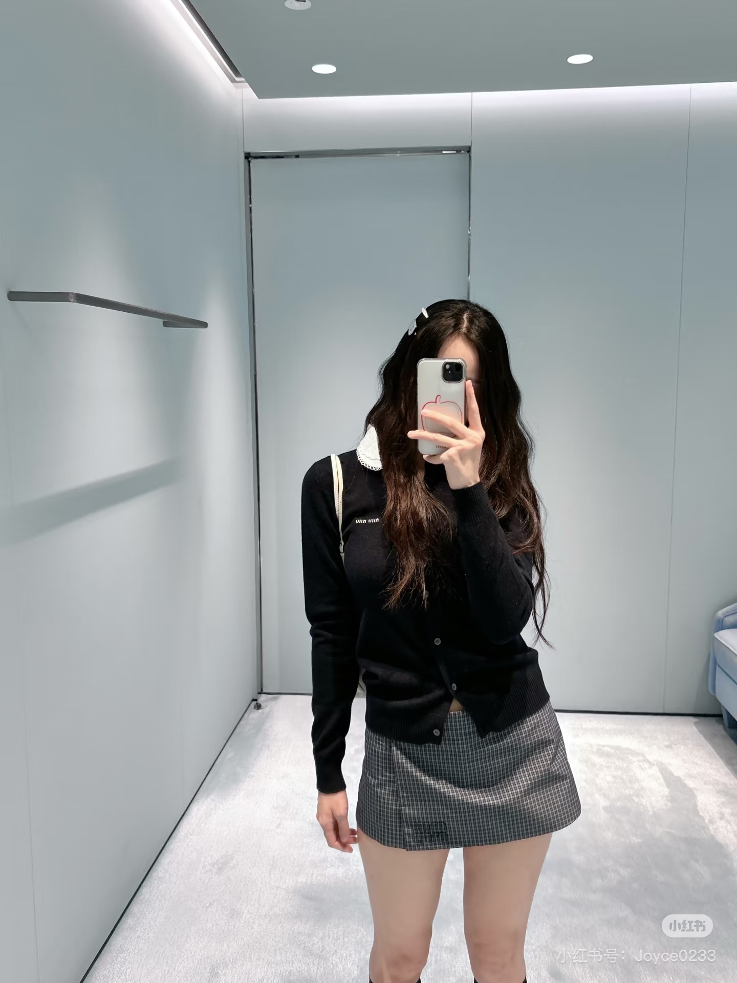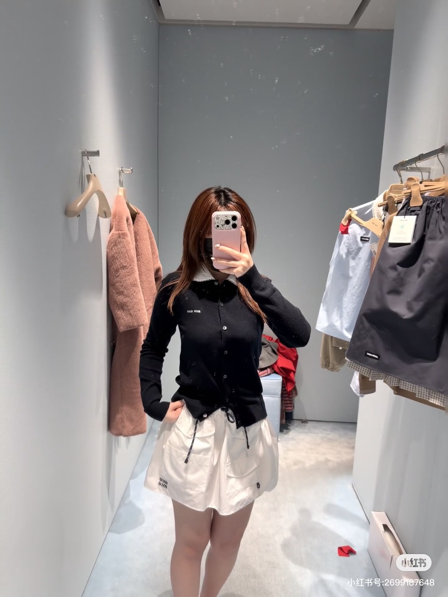这款衣服是AAAAA 1:1 质量 (非常棒). 使用了和原版一模一样的材料. 商标部分也保持了和缪缪/Miu Miu一样. 图片拍摄是实物衣服拍摄, 您所收到的实物保证和我们图片一模一样.