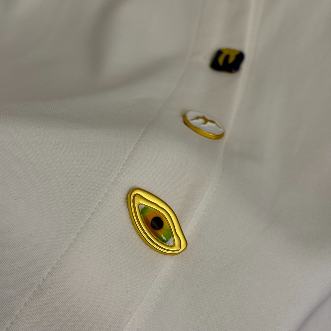 这款衣服是AAAAA 1:1 质量 (非常棒). 使用了和原版一模一样的材料. 商标部分也保持了和Schiaparelli一样. 图片拍摄是实物衣服拍摄, 您所收到的实物保证和我们图片一模一样.