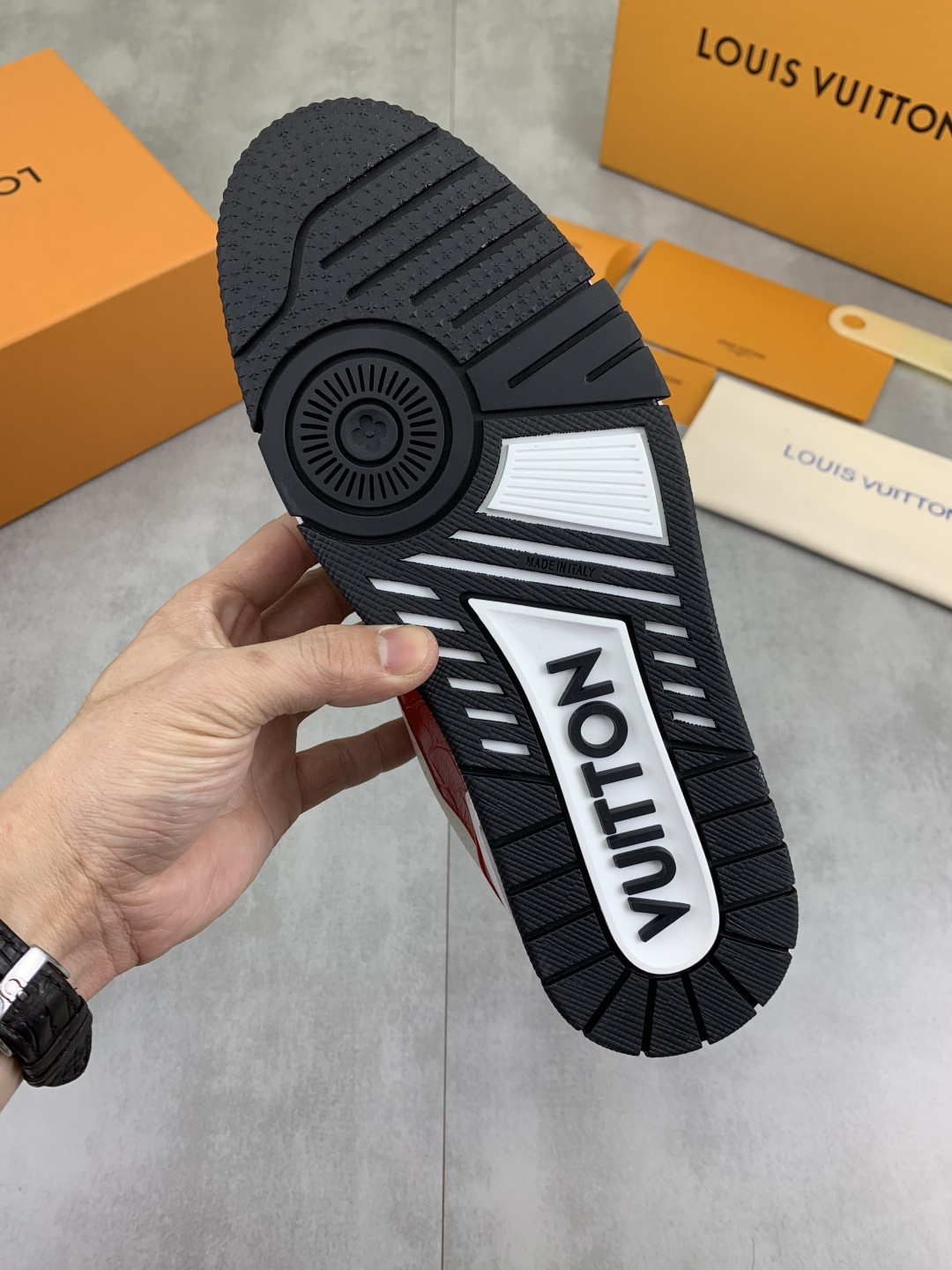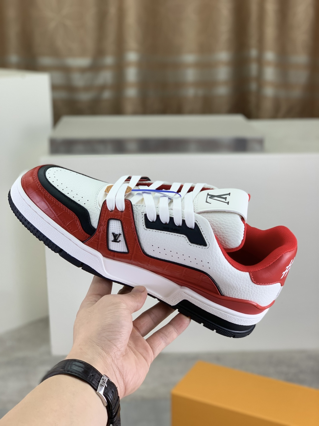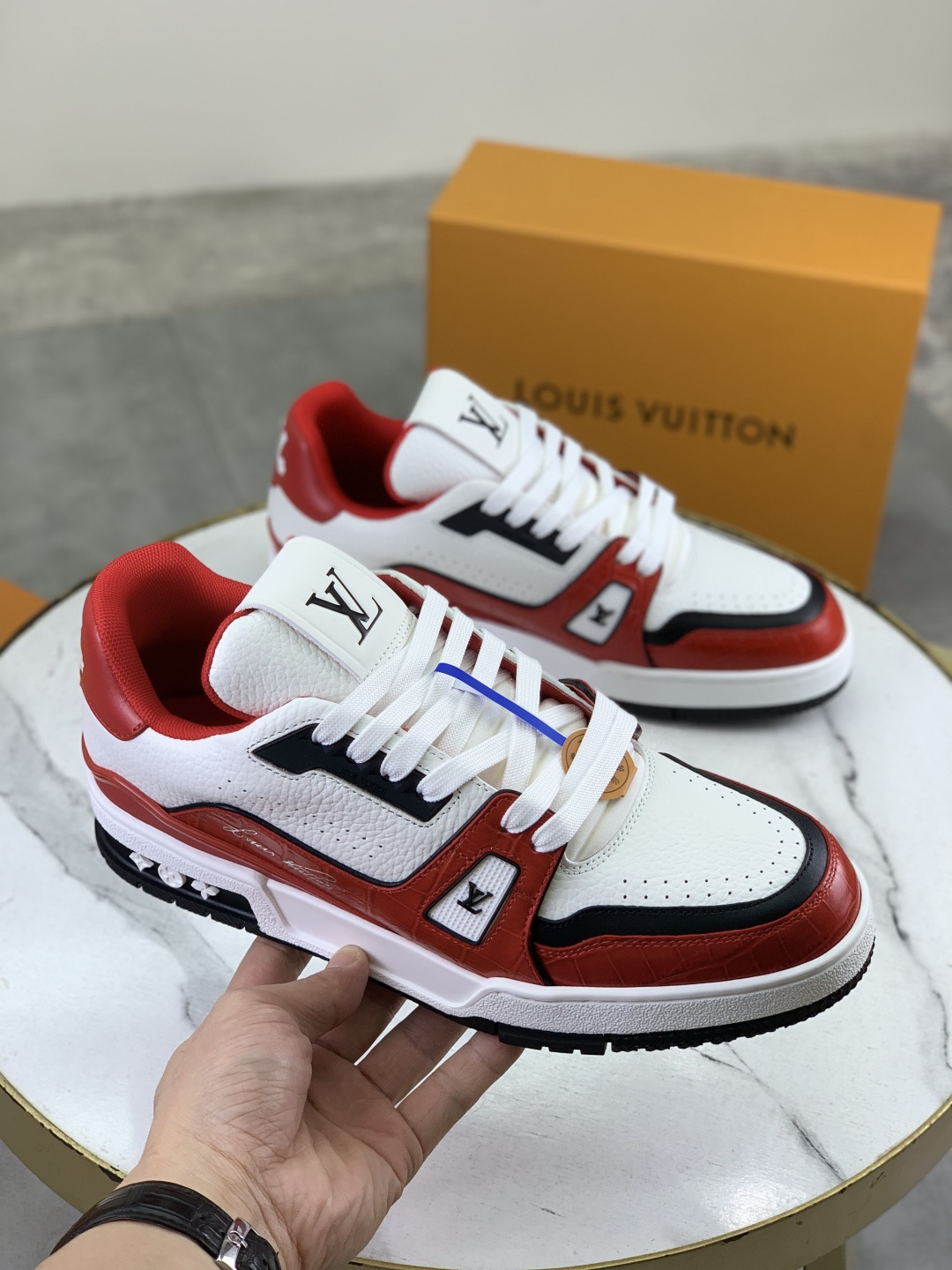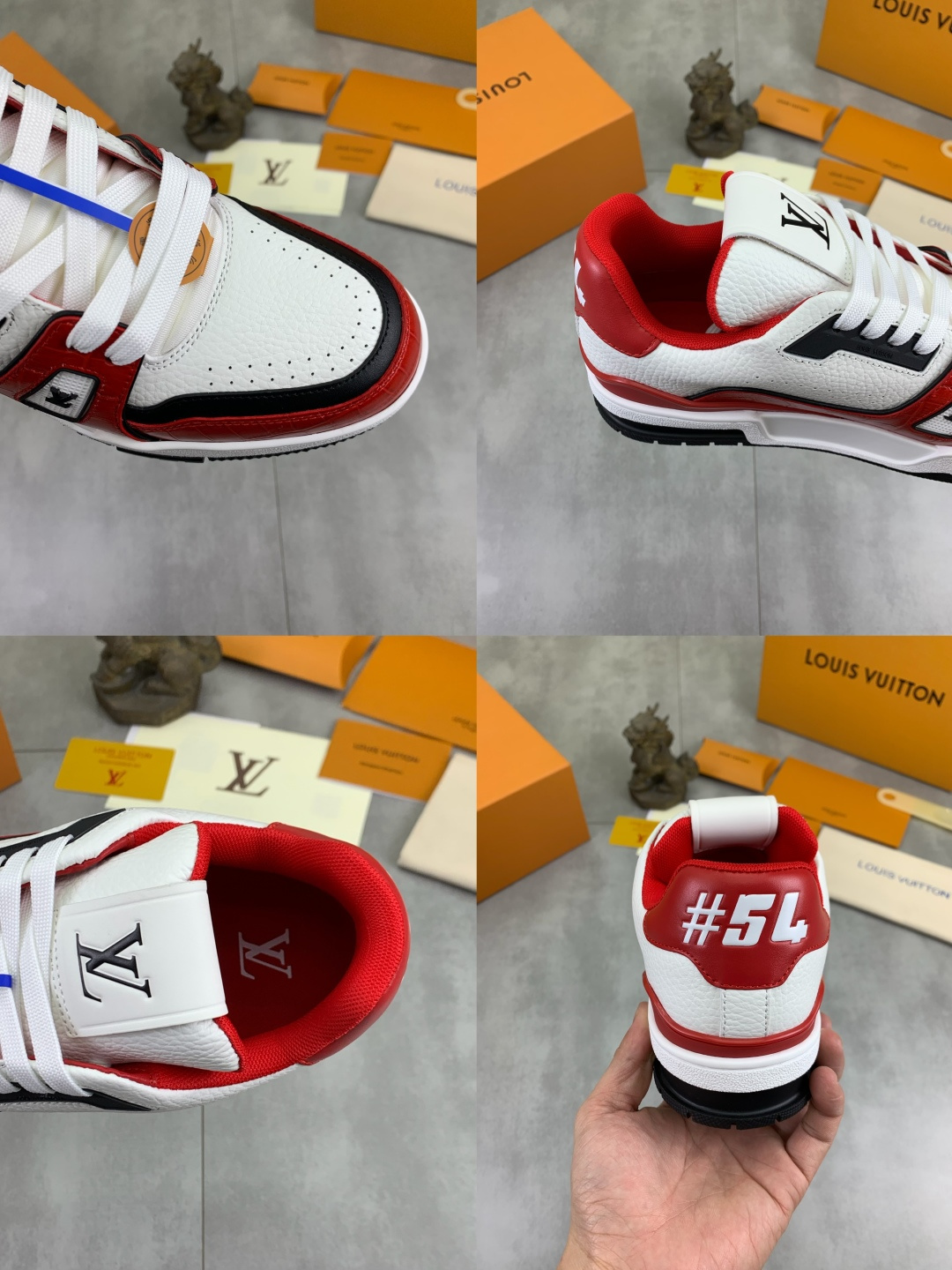 这款鞋子是AAAAA 1:1 质量 (非常棒). 使用了和原版一模一样的材料. 商标部分也保持了和路易威登/Louis Vuitton一样. 图片拍摄是实物鞋子拍摄, 您所收到的实物保证和我们图片一模一样.