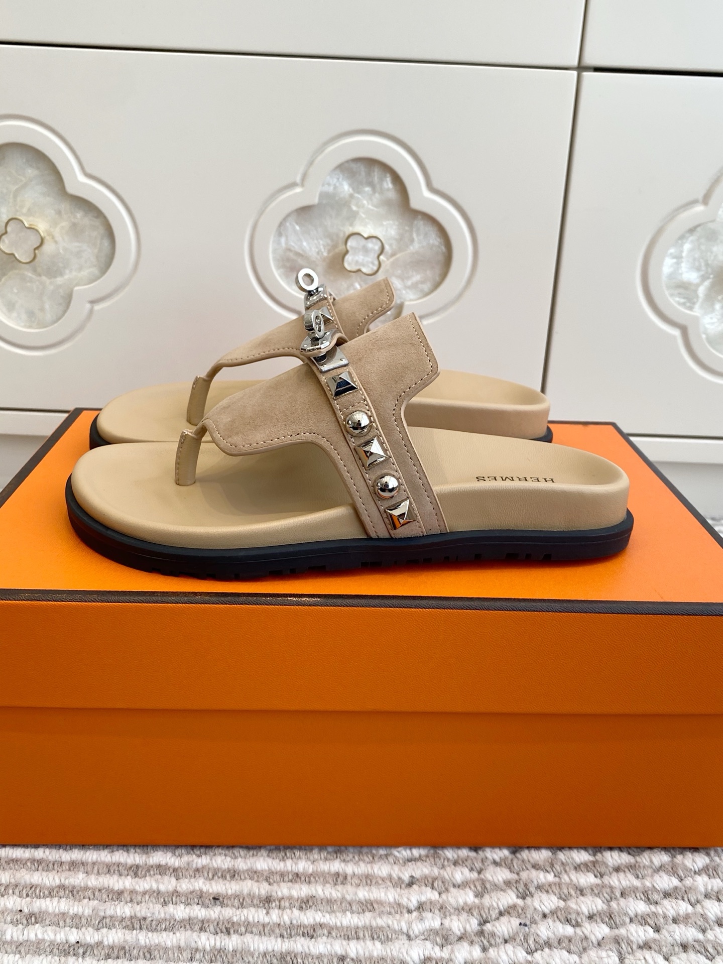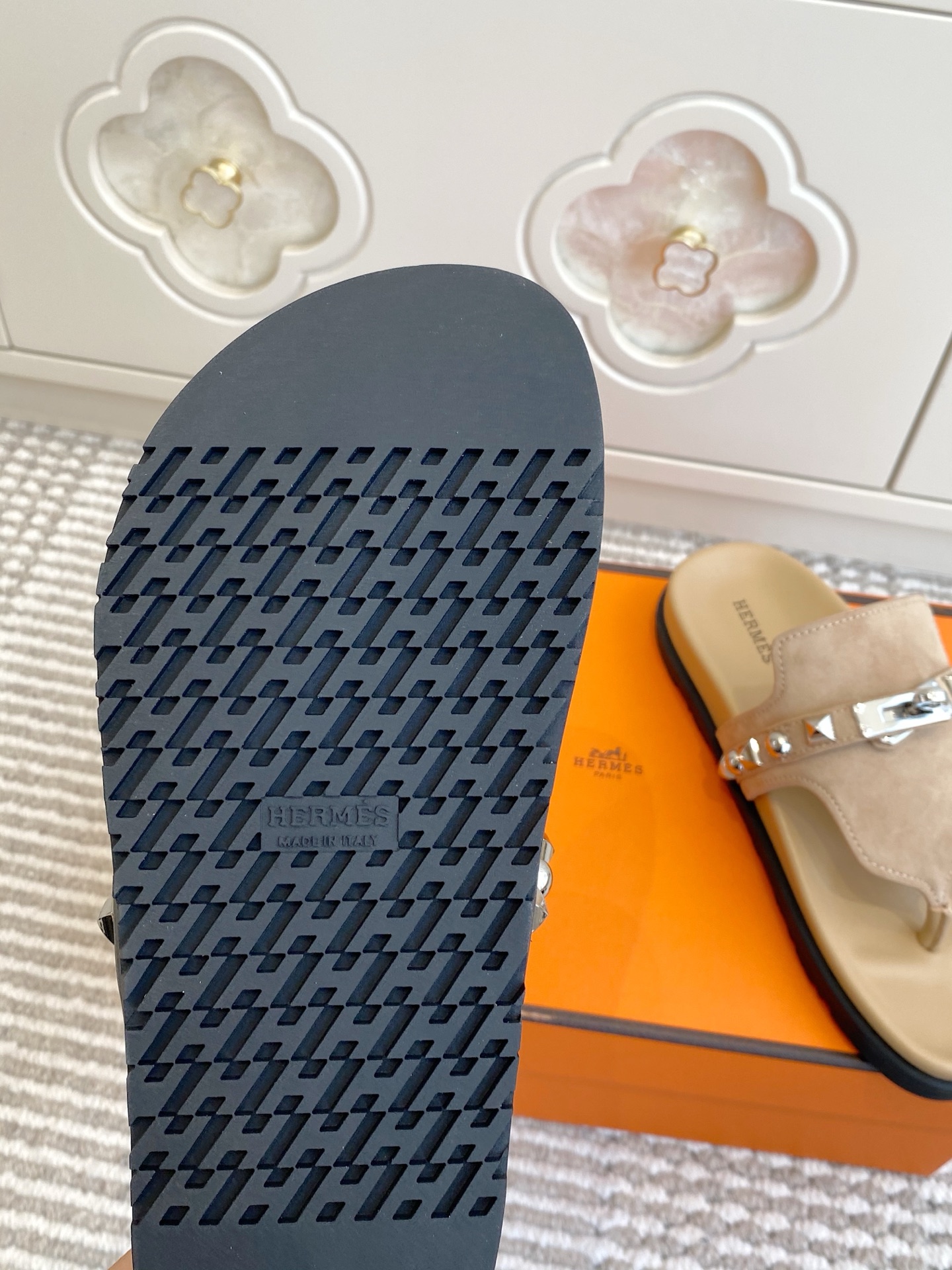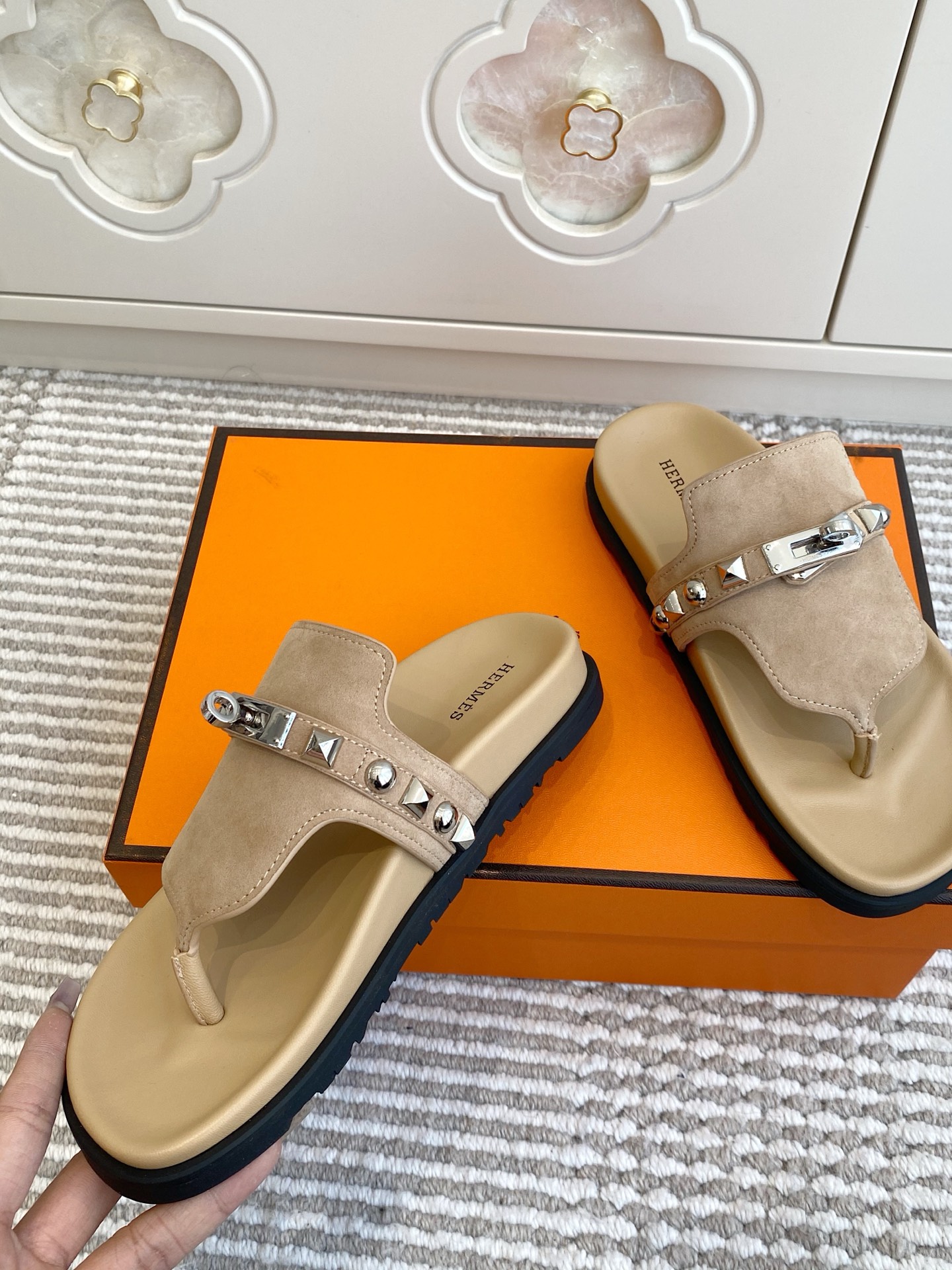 这款鞋子是AAAAA 1:1 质量 (非常棒). 使用了和原版一模一样的材料. 商标部分也保持了和爱马仕/Hermes一样. 图片拍摄是实物鞋子拍摄, 您所收到的实物保证和我们图片一模一样.