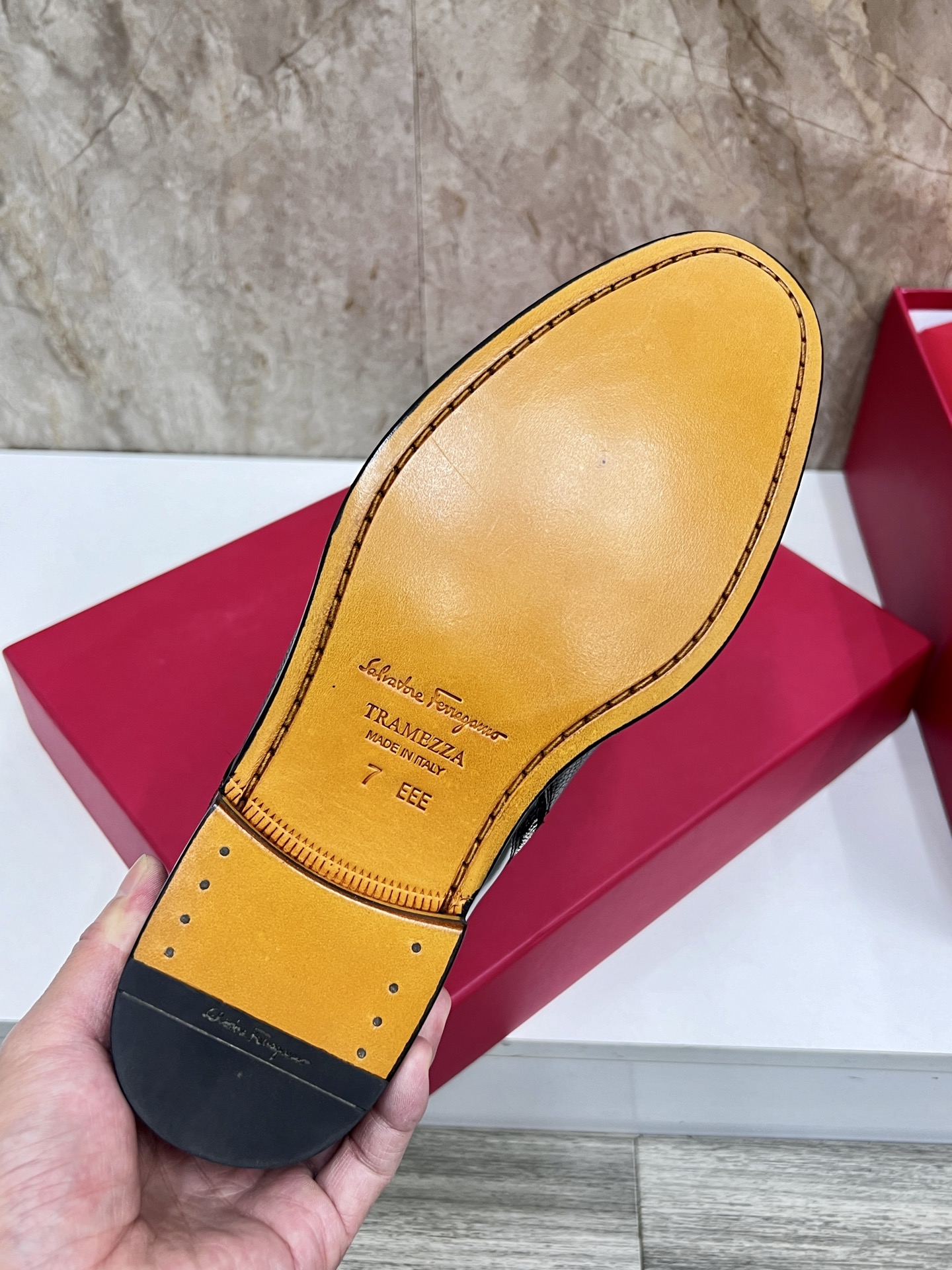这款鞋子是AAAAA 1:1 质量 (非常棒). 使用了和原版一模一样的材料. 商标部分也保持了和菲拉格慕/Salvatore Ferragamo一样. 图片拍摄是实物鞋子拍摄, 您所收到的实物保证和我们图片一模一样.