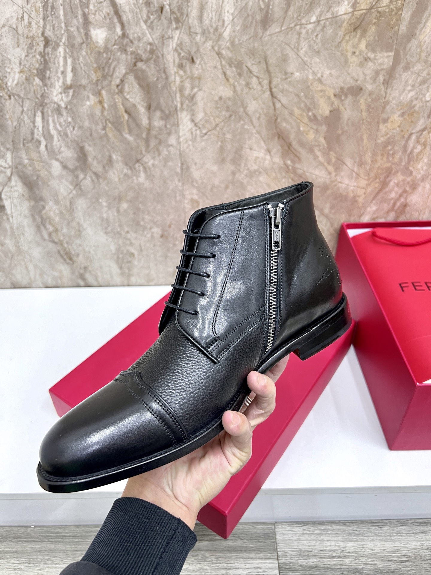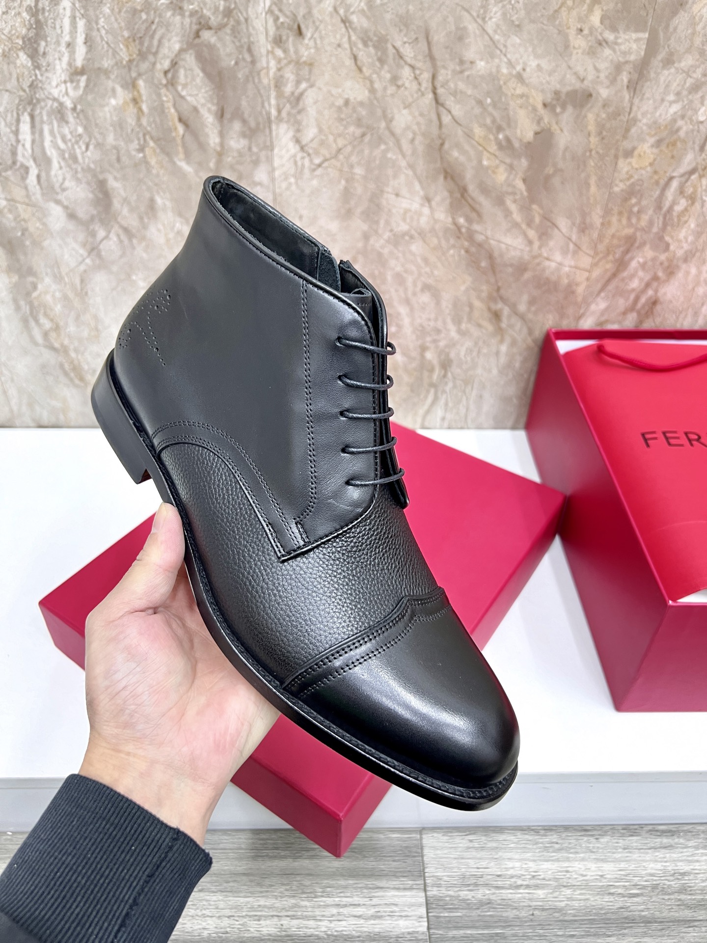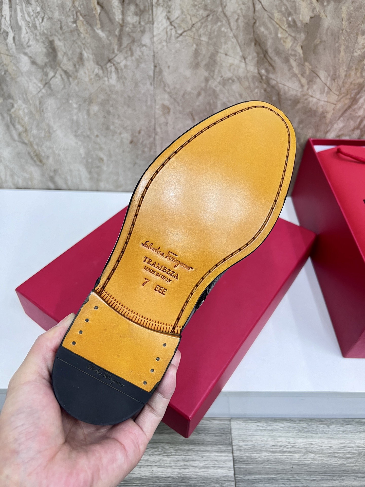 这款鞋子是AAAAA 1:1 质量 (非常棒). 使用了和原版一模一样的材料. 商标部分也保持了和菲拉格慕/Salvatore Ferragamo一样. 图片拍摄是实物鞋子拍摄, 您所收到的实物保证和我们图片一模一样.