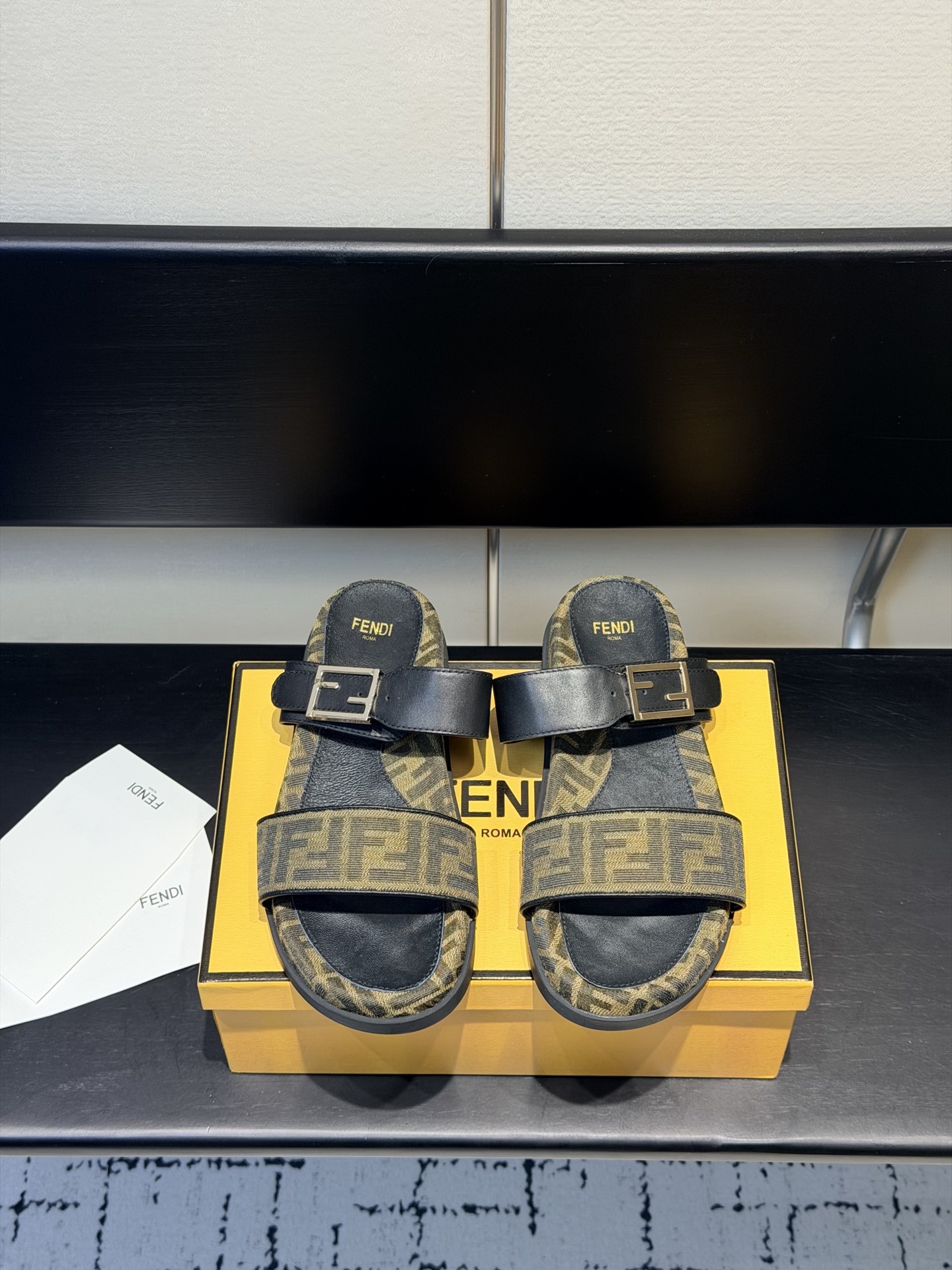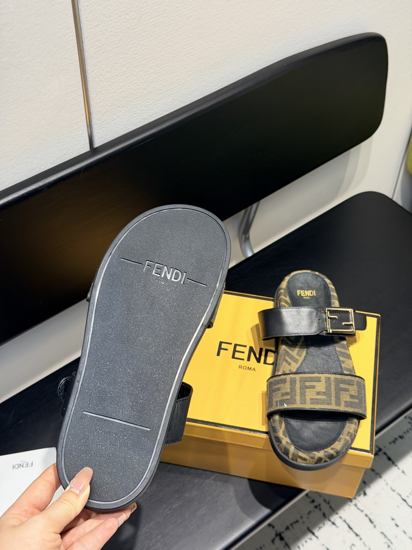 这款鞋子是AAAAA 1:1 质量 (非常棒). 使用了和原版一模一样的材料. 商标部分也保持了和芬迪/Fendi一样. 图片拍摄是实物鞋子拍摄, 您所收到的实物保证和我们图片一模一样.
