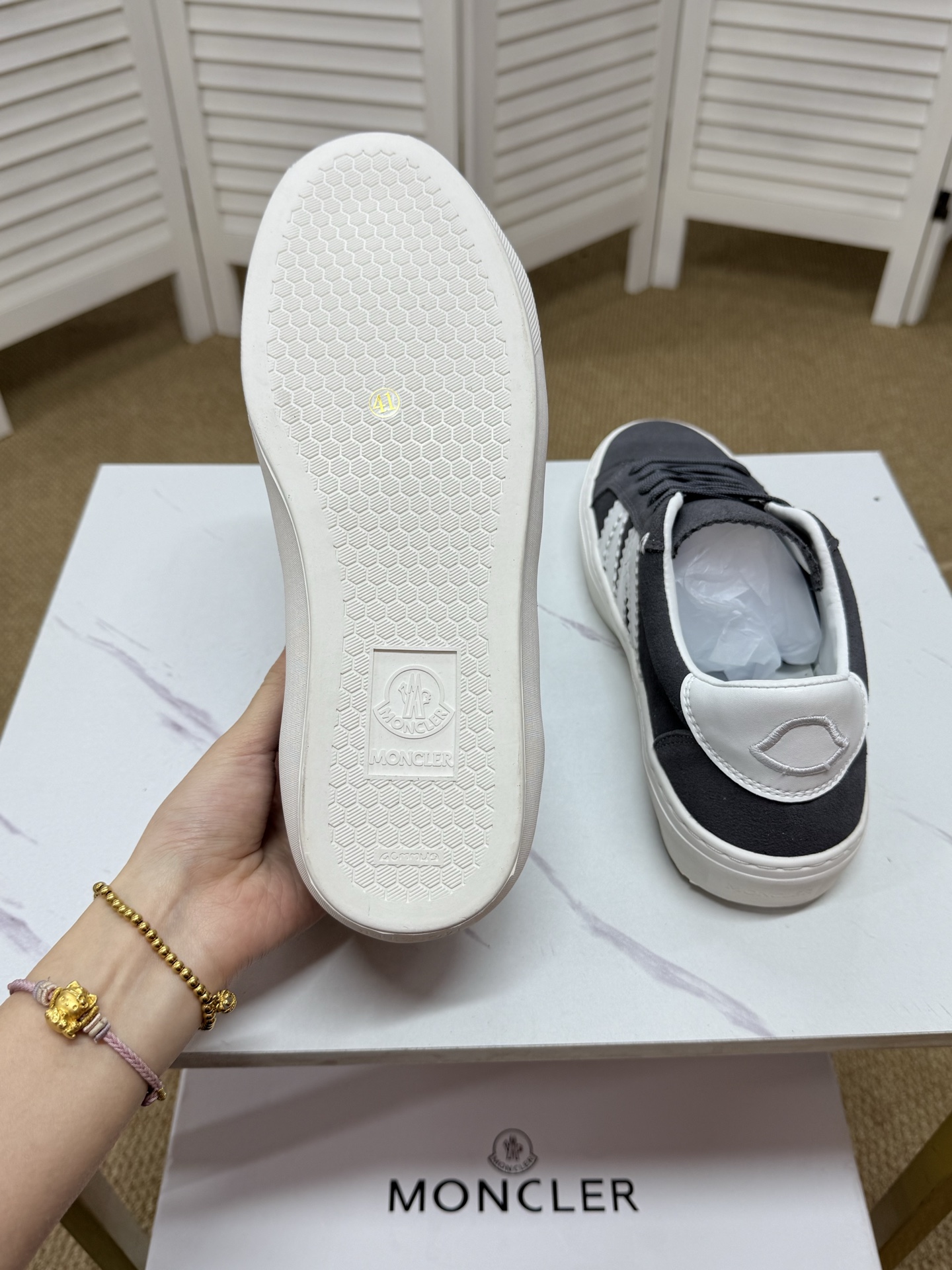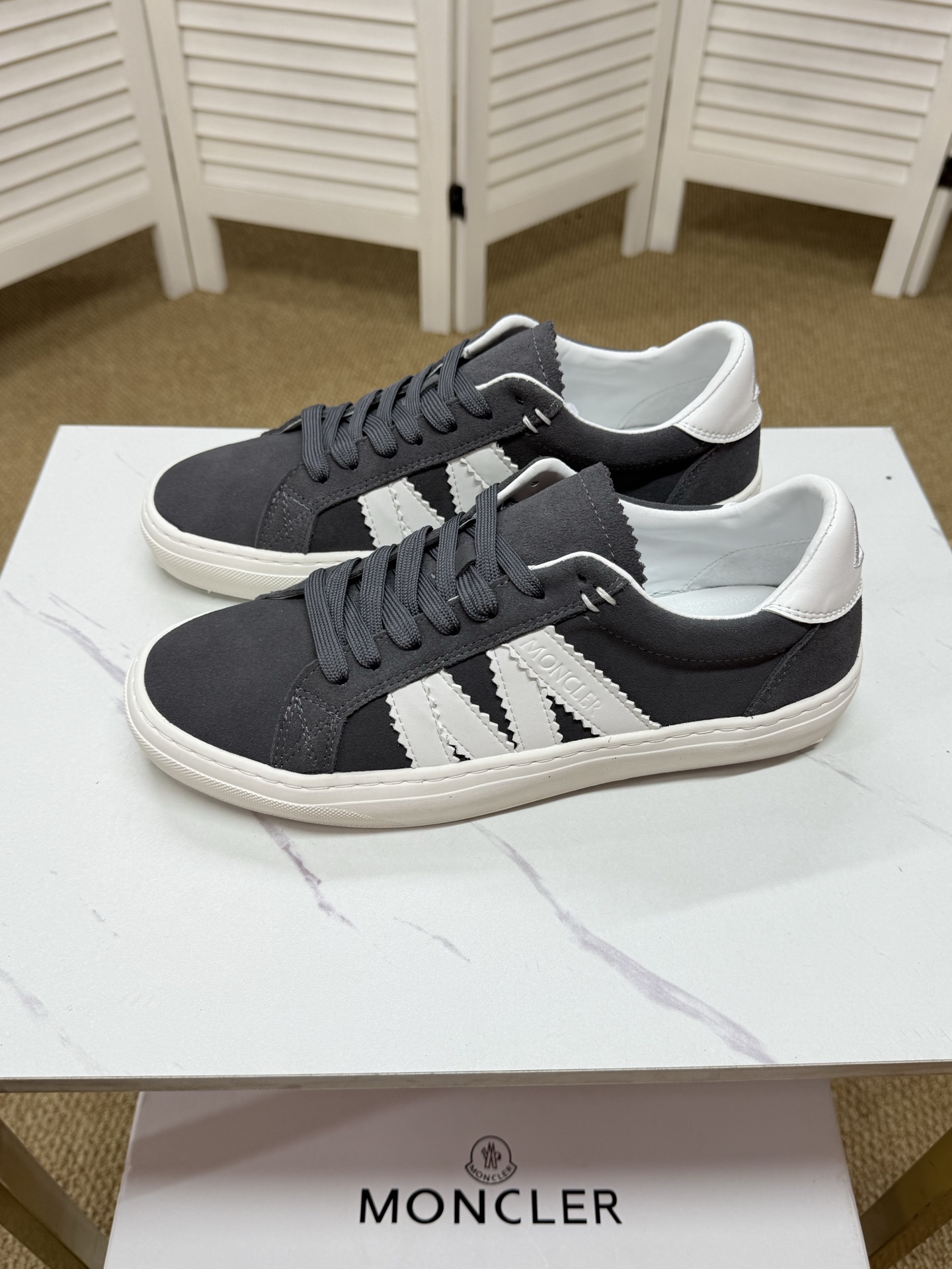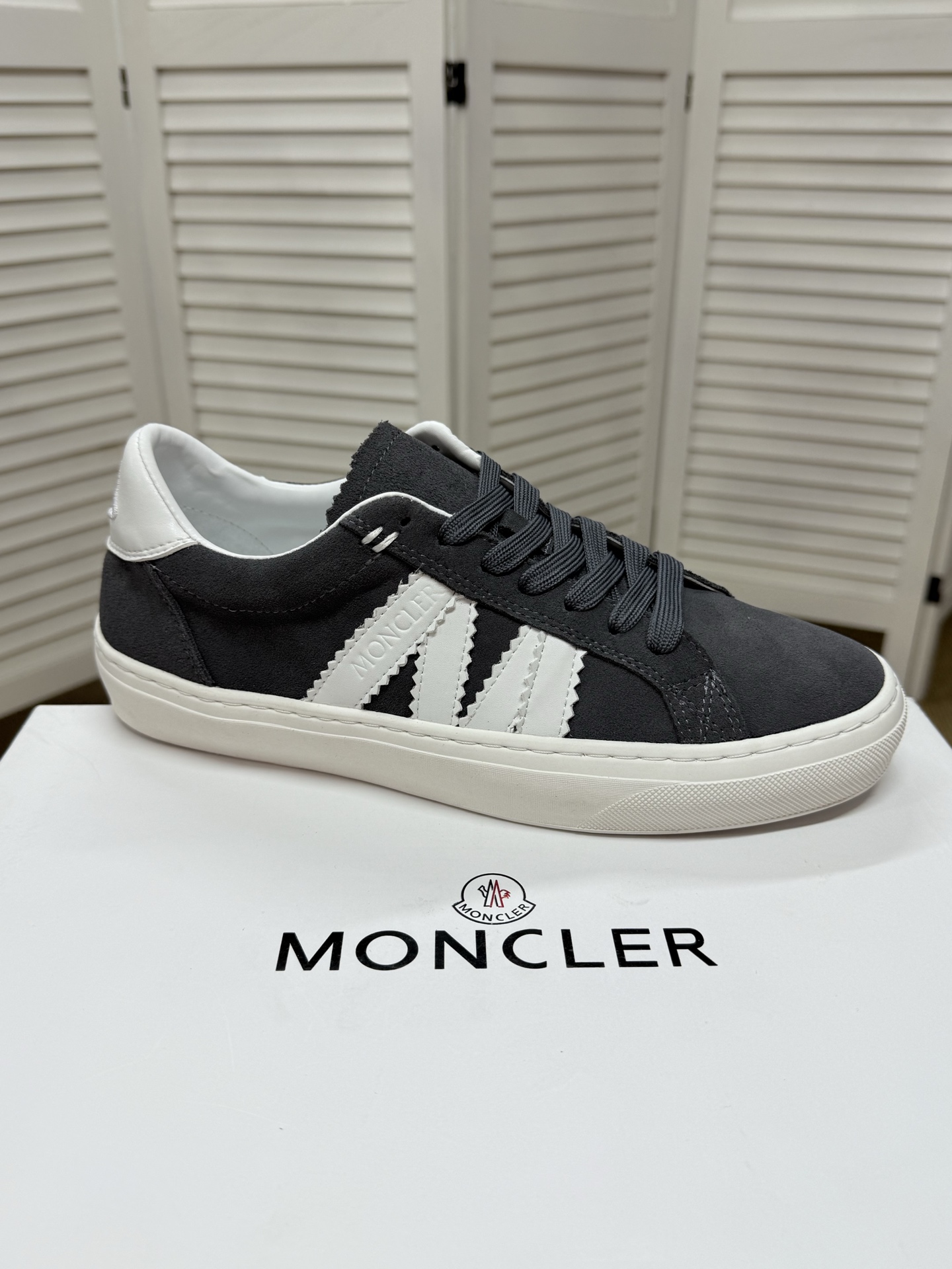 这款鞋子是AAAAA 1:1 质量 (非常棒). 使用了和原版一模一样的材料. 商标部分也保持了和盟可睐/moncler一样. 图片拍摄是实物鞋子拍摄, 您所收到的实物保证和我们图片一模一样.