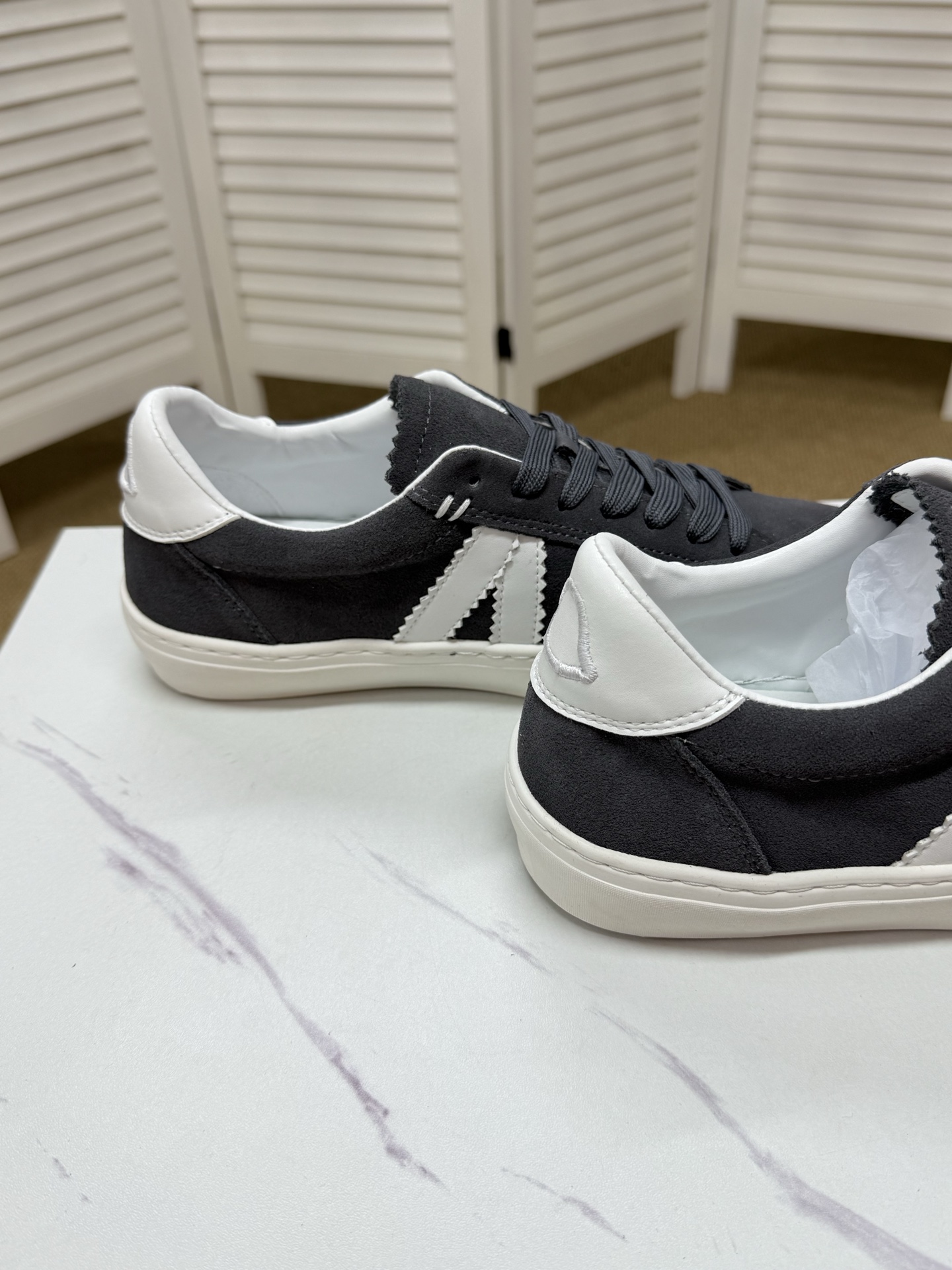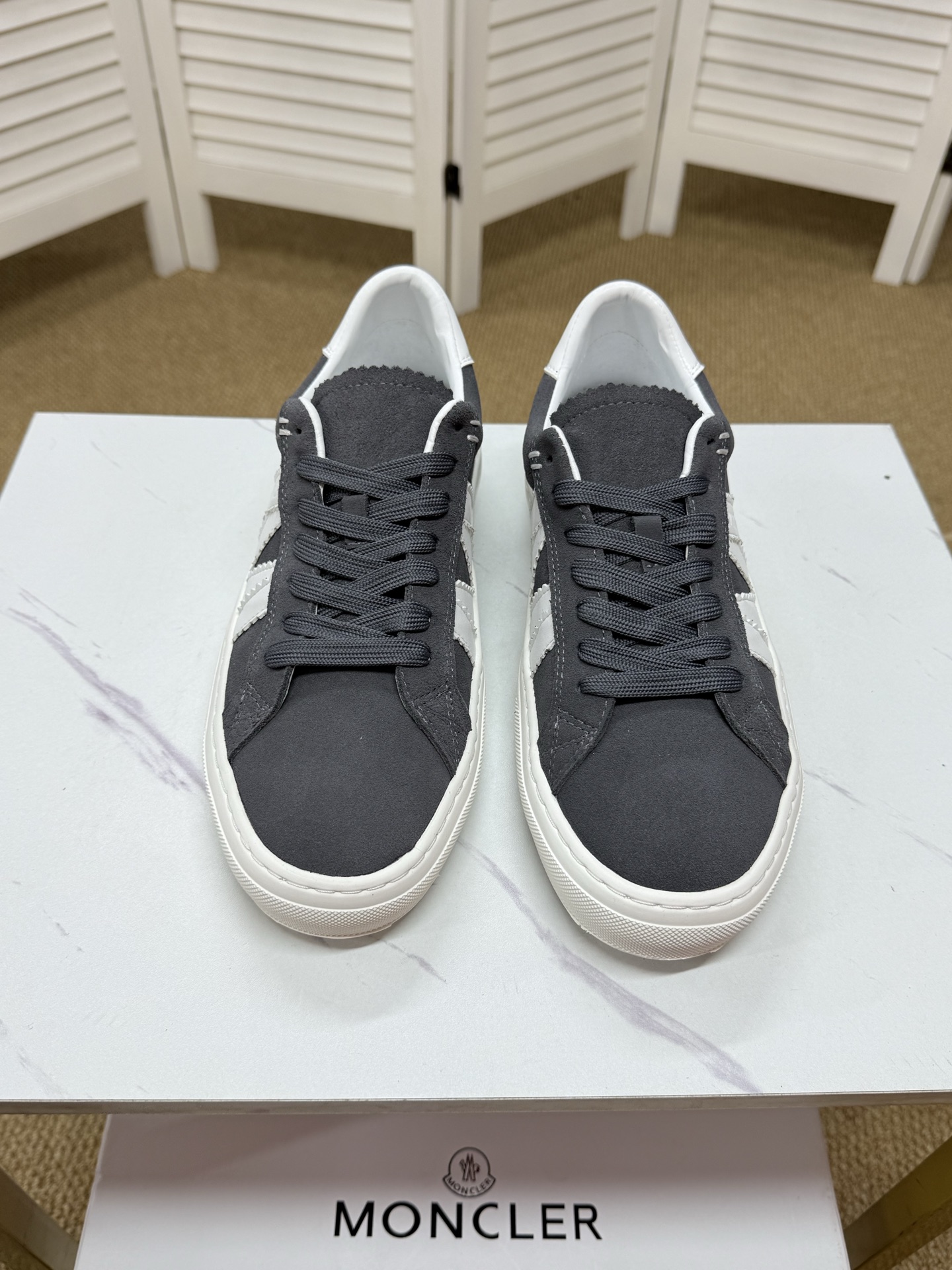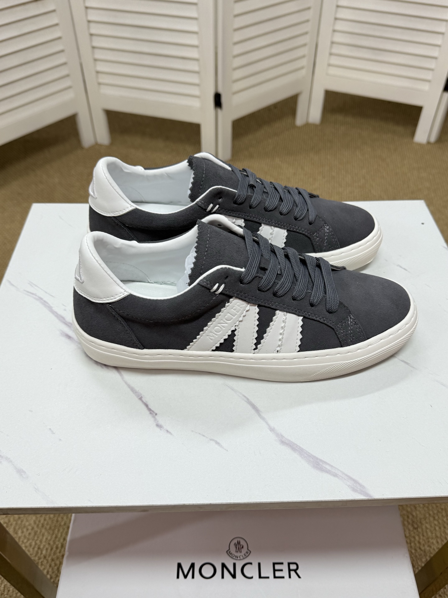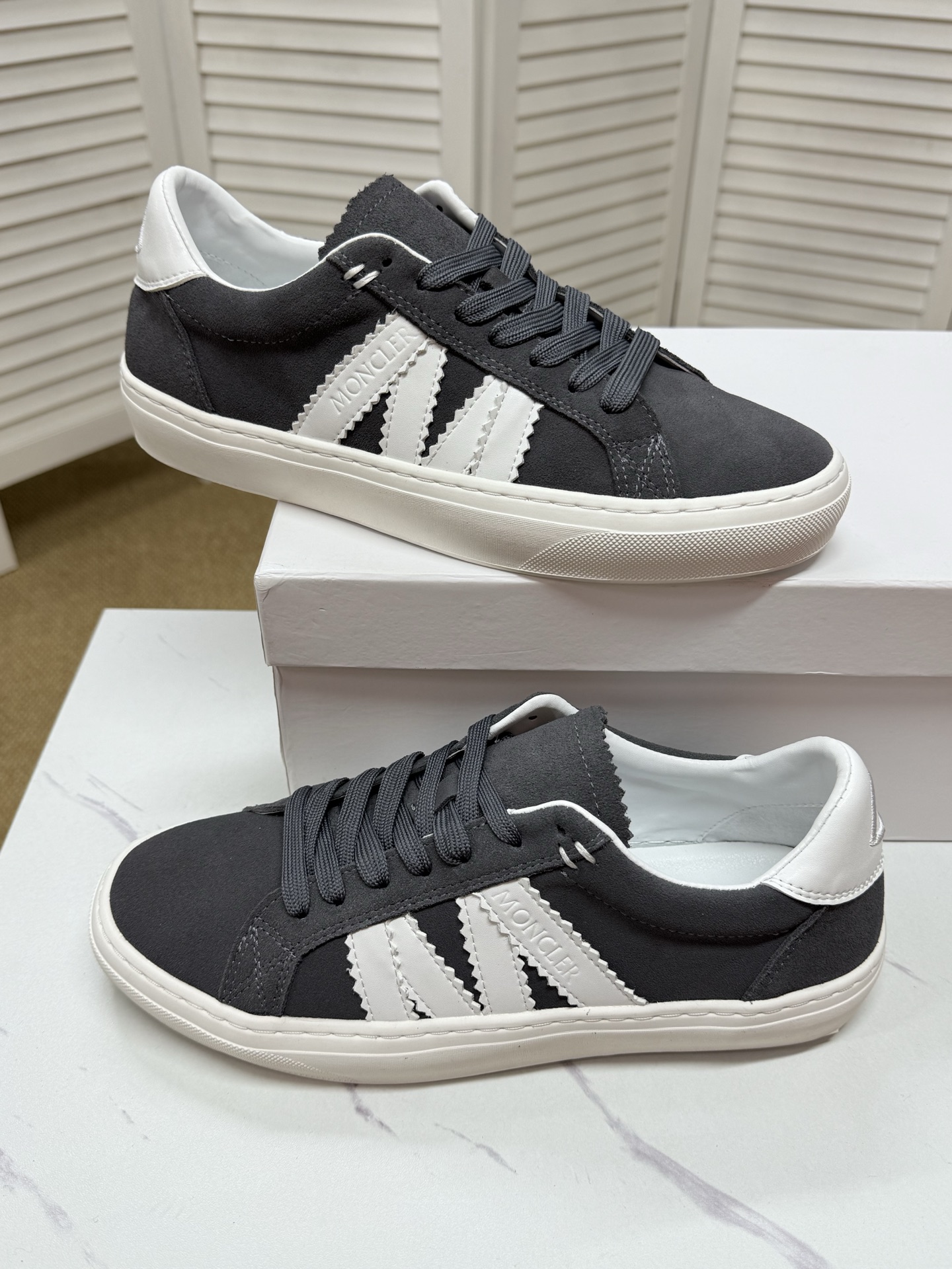 这款鞋子是AAAAA 1:1 质量 (非常棒). 使用了和原版一模一样的材料. 商标部分也保持了和盟可睐/moncler一样. 图片拍摄是实物鞋子拍摄, 您所收到的实物保证和我们图片一模一样.