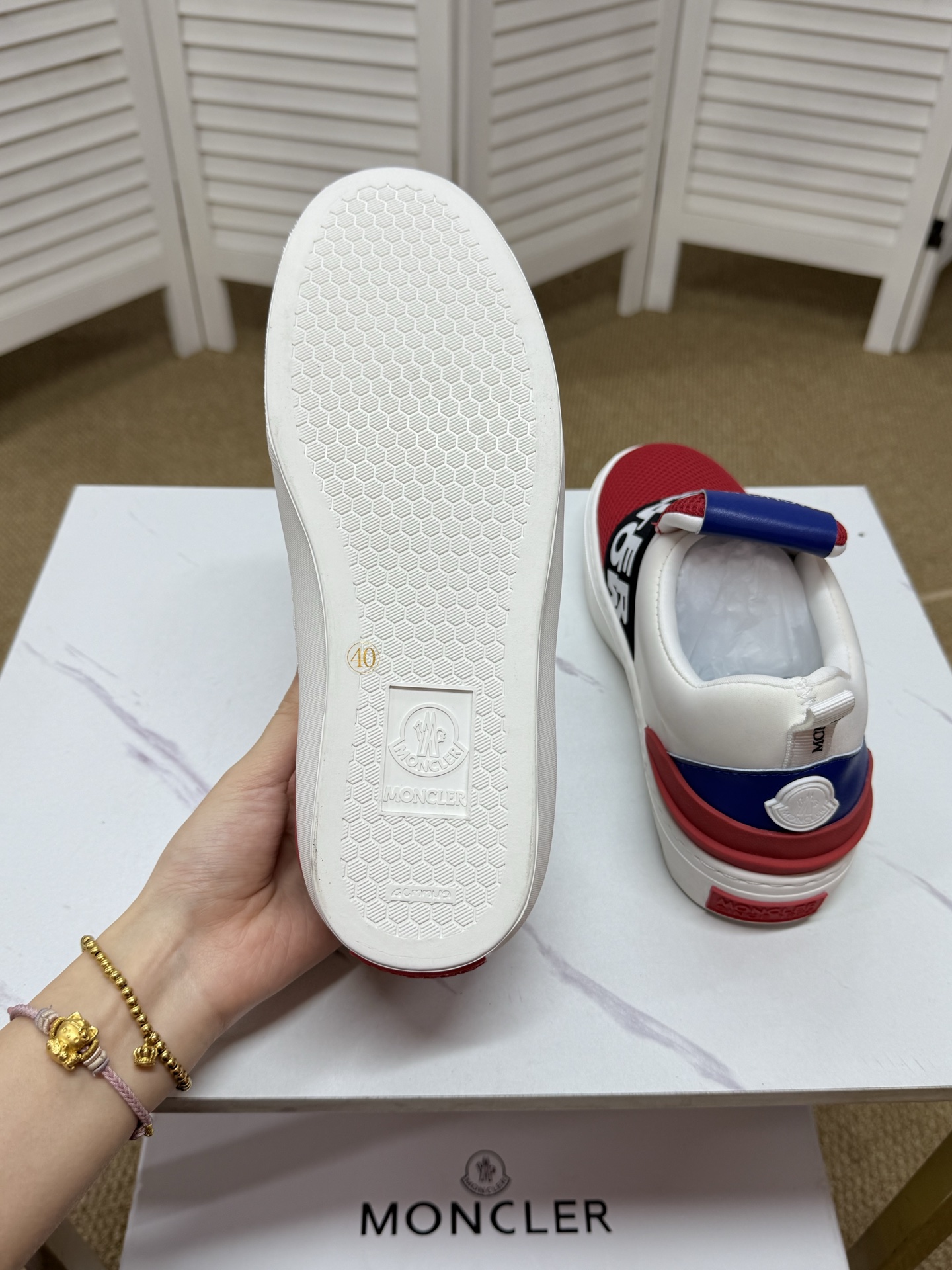 这款鞋子是AAAAA 1:1 质量 (非常棒). 使用了和原版一模一样的材料. 商标部分也保持了和盟可睐/moncler一样. 图片拍摄是实物鞋子拍摄, 您所收到的实物保证和我们图片一模一样.
