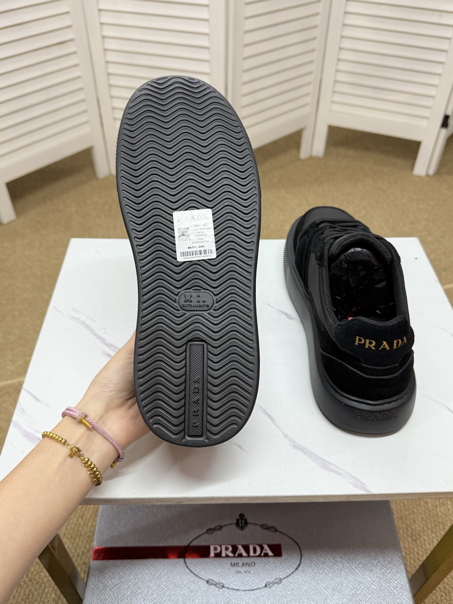 这款鞋子是AAAAA 1:1 质量 (非常棒). 使用了和原版一模一样的材料. 商标部分也保持了和普拉达/Prada一样. 图片拍摄是实物鞋子拍摄, 您所收到的实物保证和我们图片一模一样.