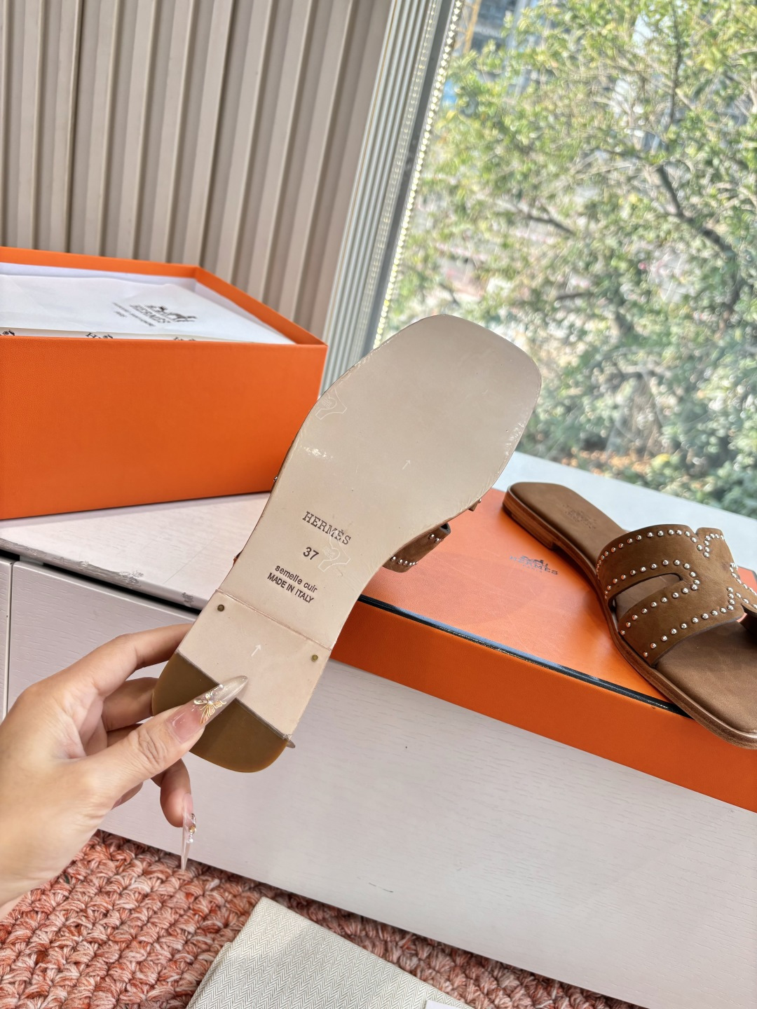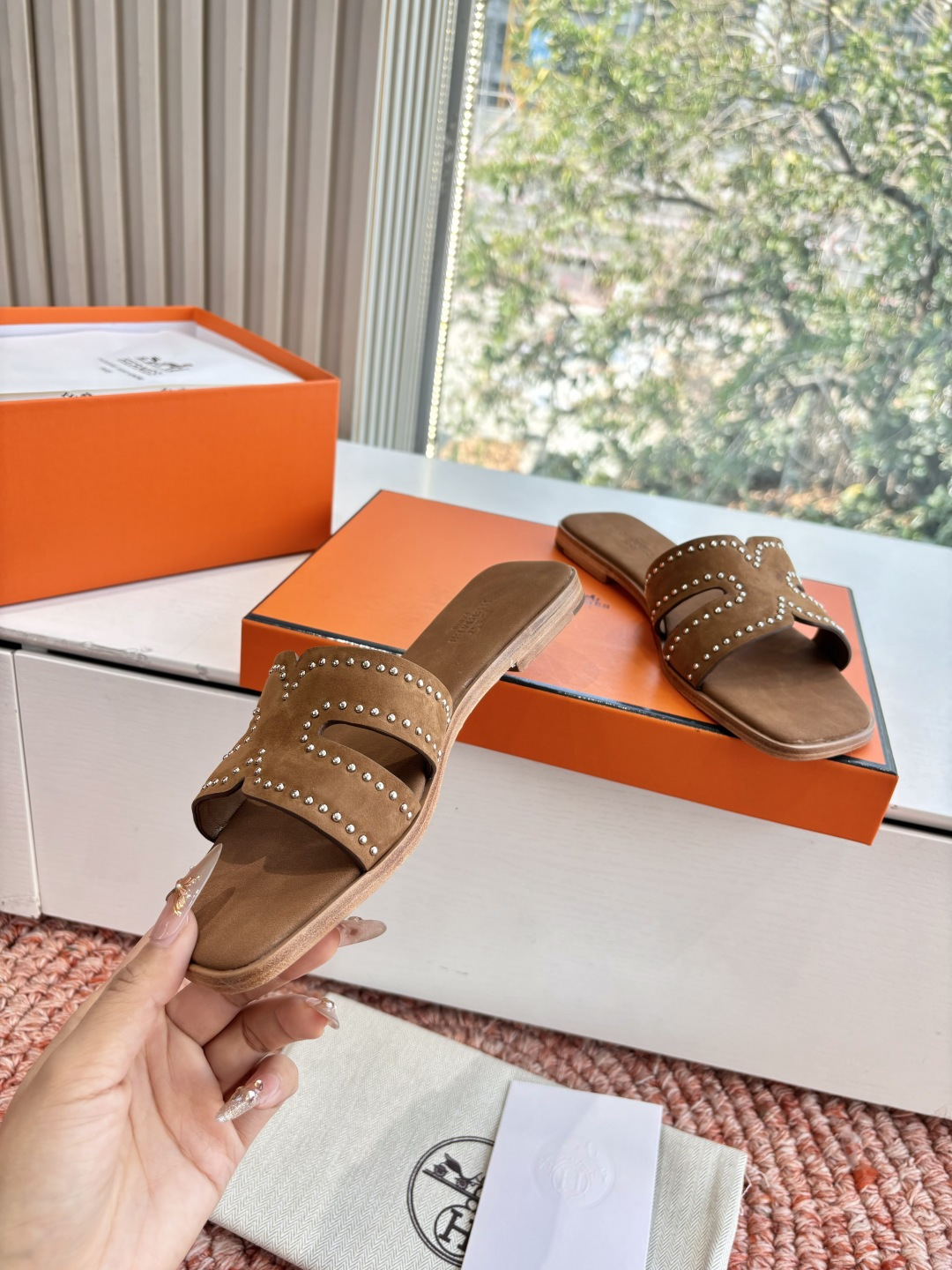 这款鞋子是AAAAA 1:1 质量 (非常棒). 使用了和原版一模一样的材料. 商标部分也保持了和爱马仕/Hermes一样. 图片拍摄是实物鞋子拍摄, 您所收到的实物保证和我们图片一模一样.