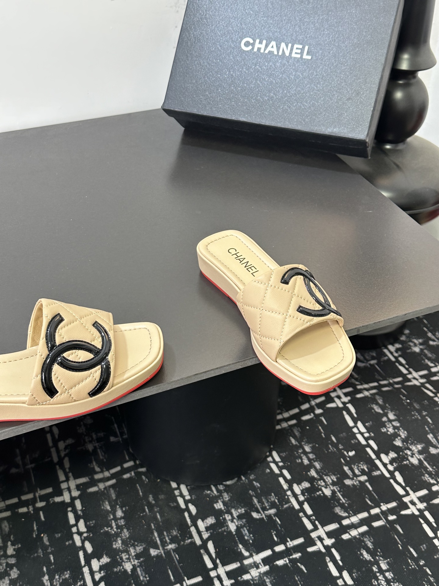这款鞋子是AAAAA 1:1 质量 (非常棒). 使用了和原版一模一样的材料. 商标部分也保持了和香奈儿/Chanel一样. 图片拍摄是实物鞋子拍摄, 您所收到的实物保证和我们图片一模一样.