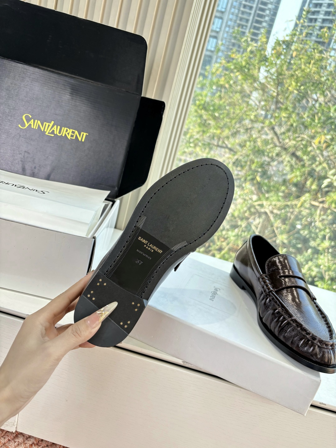 这款鞋子是AAAAA 1:1 质量 (非常棒). 使用了和原版一模一样的材料. 商标部分也保持了和圣罗兰/Saint Laurent一样. 图片拍摄是实物鞋子拍摄, 您所收到的实物保证和我们图片一模一样.