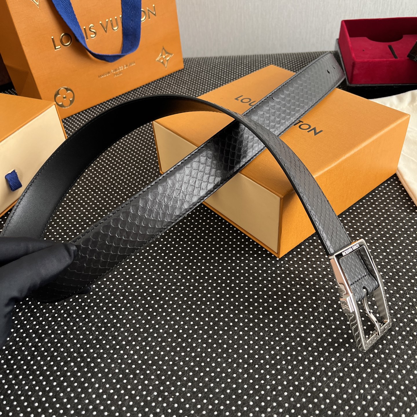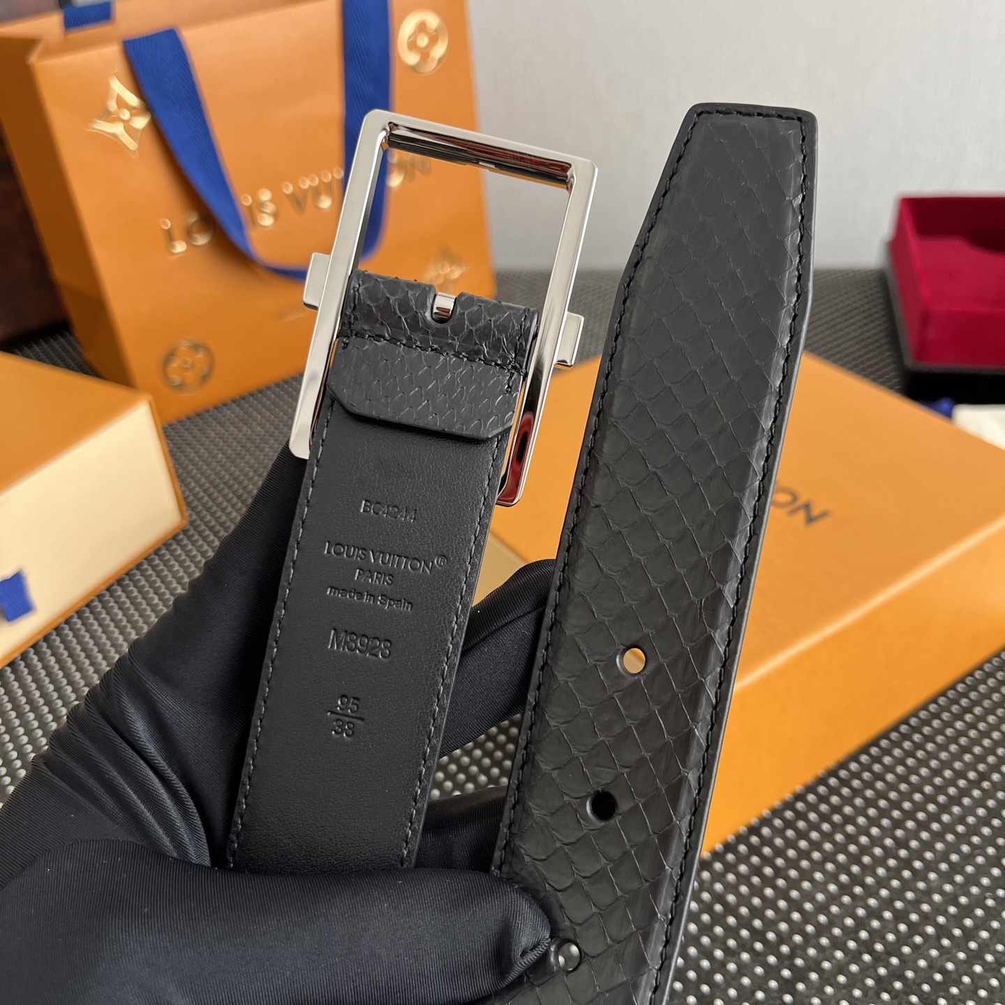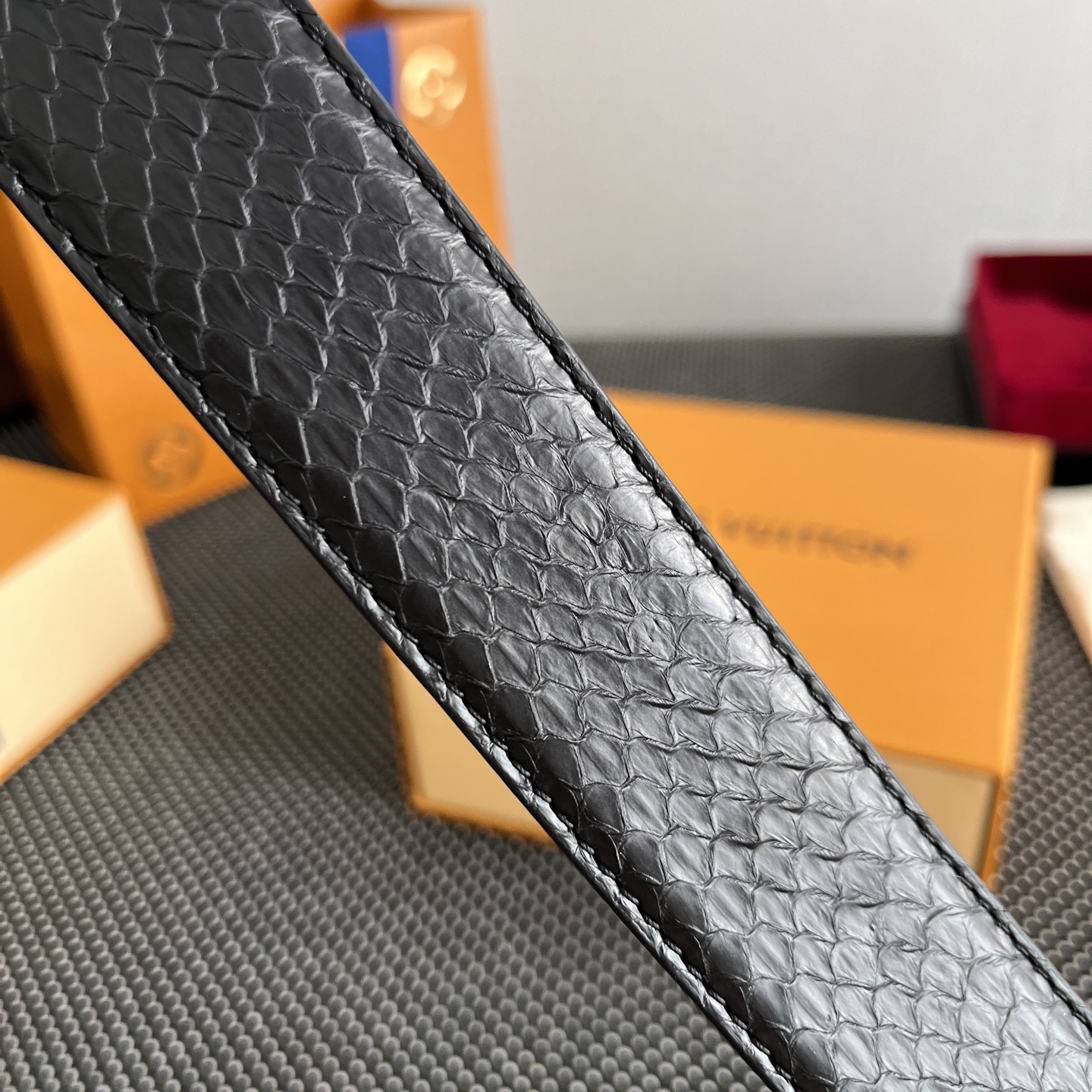 这款皮带是AAAAA 1:1 质量 (非常棒). 使用了和原版一模一样的材料. 商标部分也保持了和路易威登/Louis Vuitton一样. 图片拍摄是实物皮带拍摄, 您所收到的实物保证和我们图片一模一样.