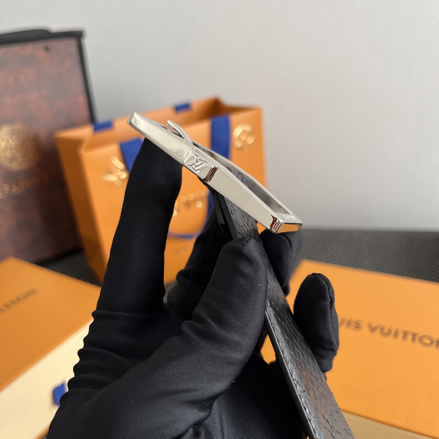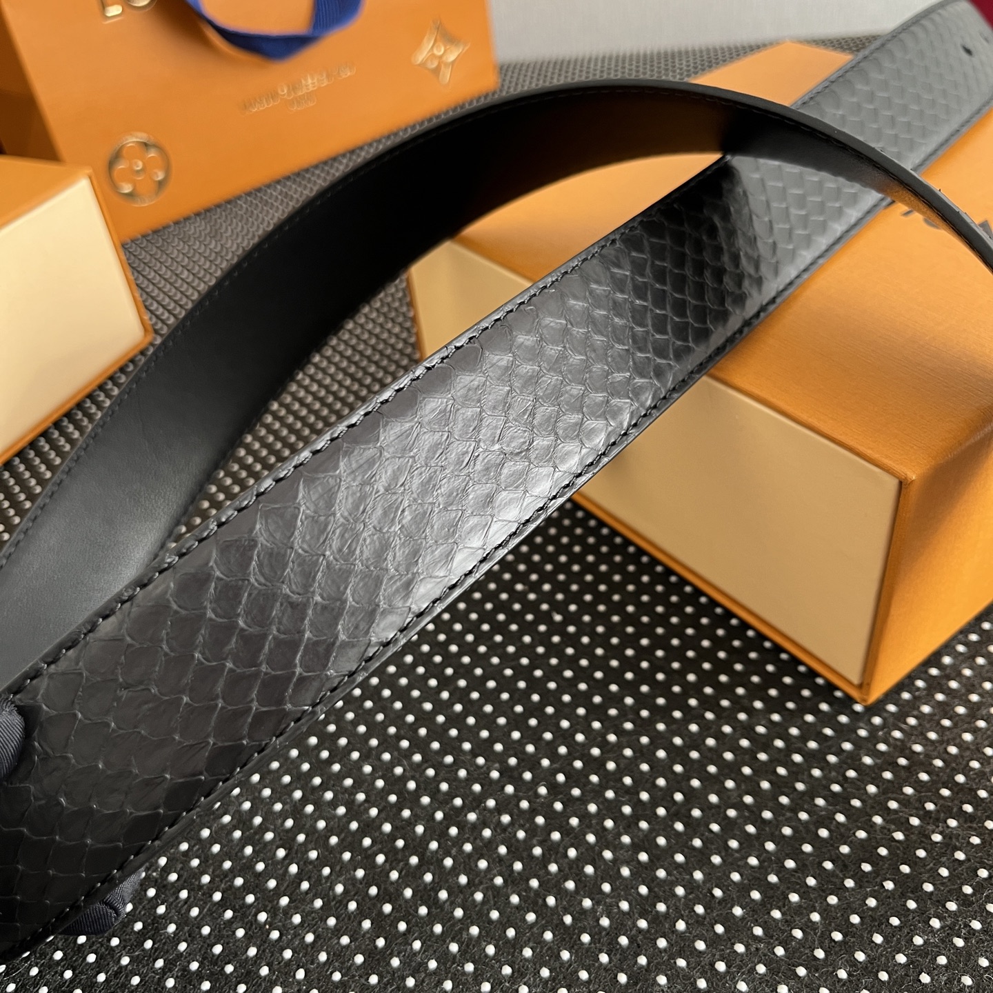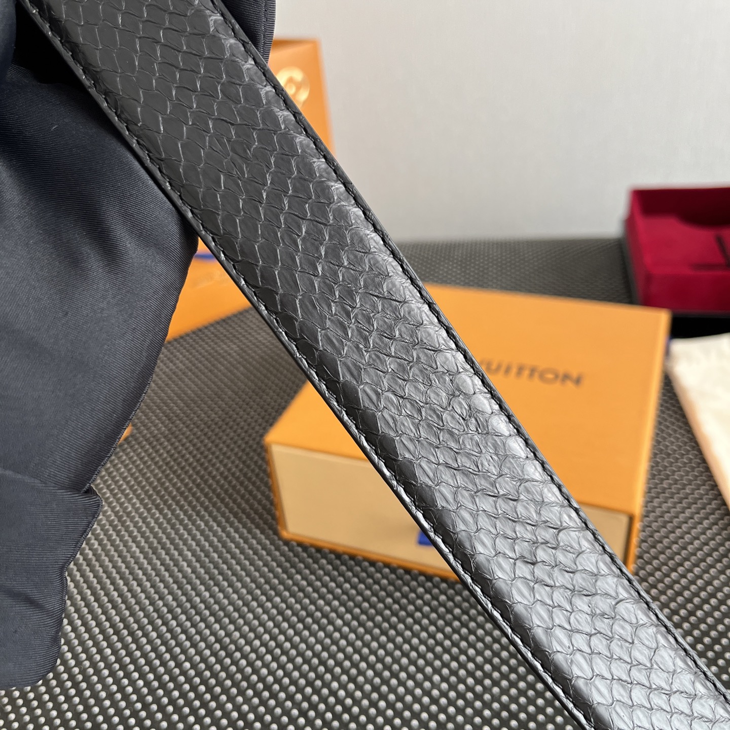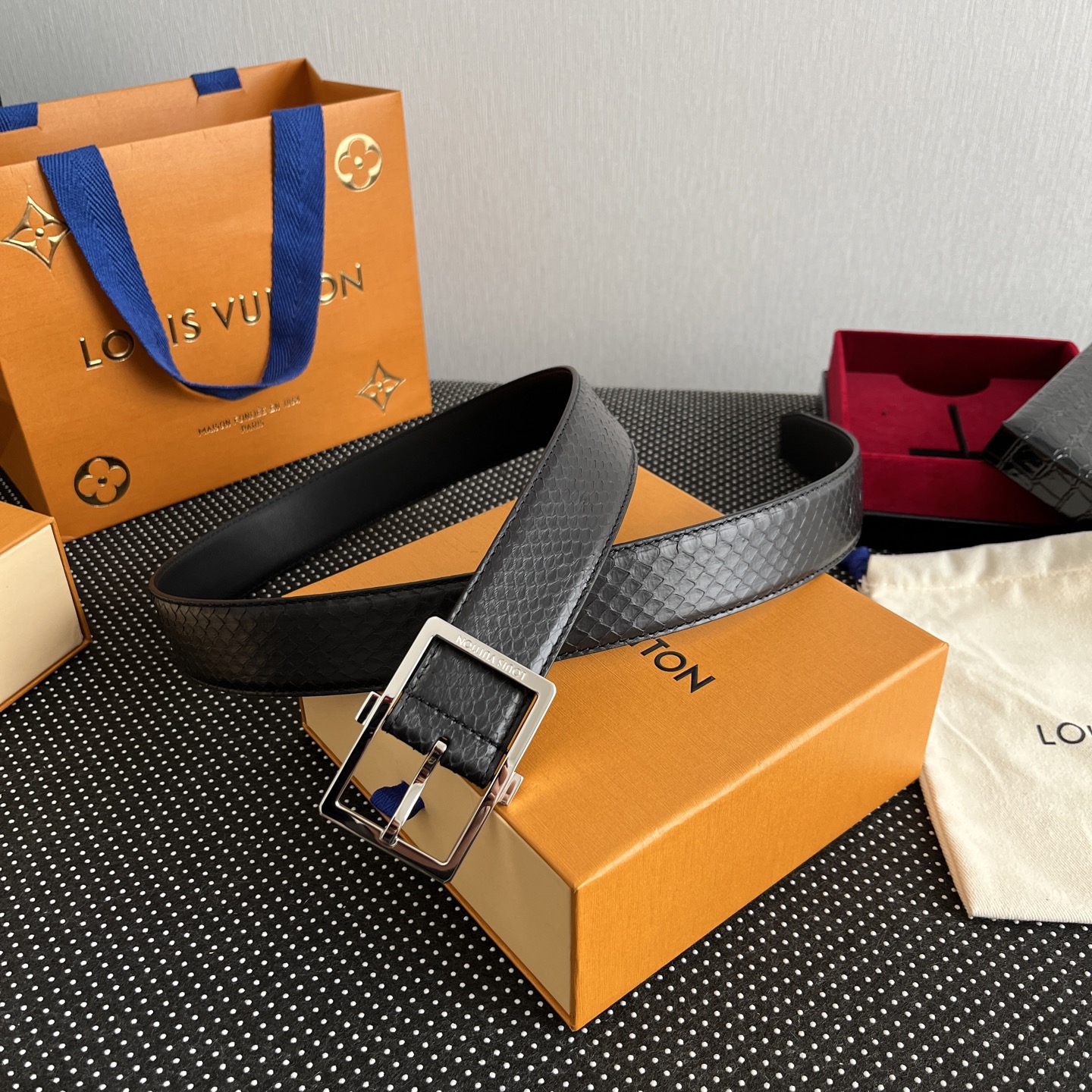 这款皮带是AAAAA 1:1 质量 (非常棒). 使用了和原版一模一样的材料. 商标部分也保持了和路易威登/Louis Vuitton一样. 图片拍摄是实物皮带拍摄, 您所收到的实物保证和我们图片一模一样.