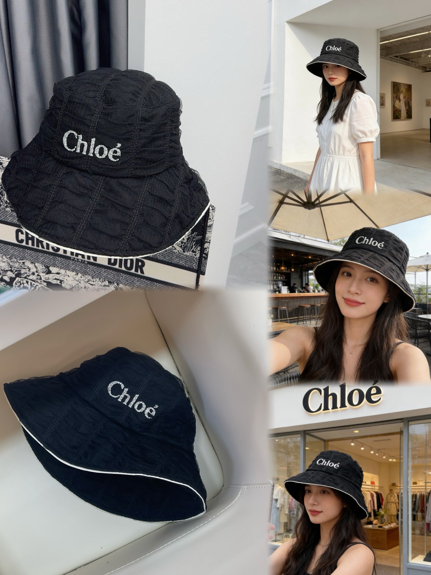 这款帽子是AAAAA 1:1 质量 (非常棒). 使用了和原版一模一样的材料. 商标部分也保持了和克洛伊/Chloe一样. 图片拍摄是实物帽子拍摄, 您所收到的实物保证和我们图片一模一样.