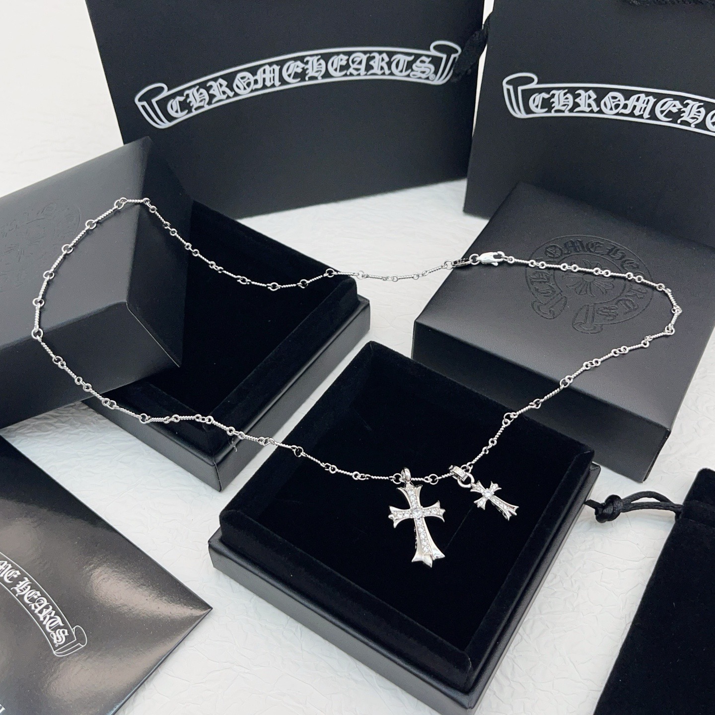 这款首饰是AAAAA 1:1 质量 (非常棒). 使用了和原版一模一样的材料. 商标部分也保持了和克罗心/Chrome Hearts一样. 图片拍摄是实物首饰拍摄, 您所收到的实物保证和我们图片一模一样.