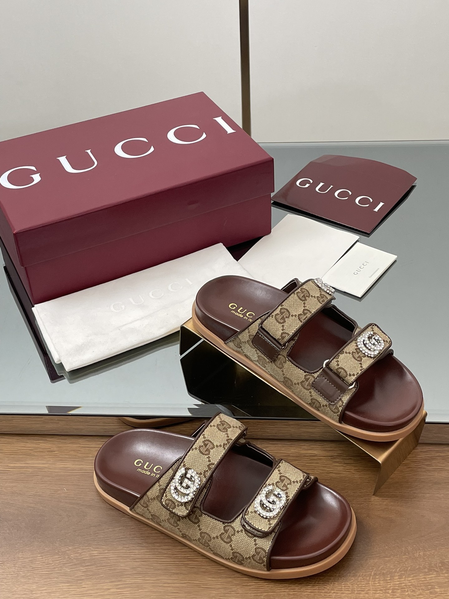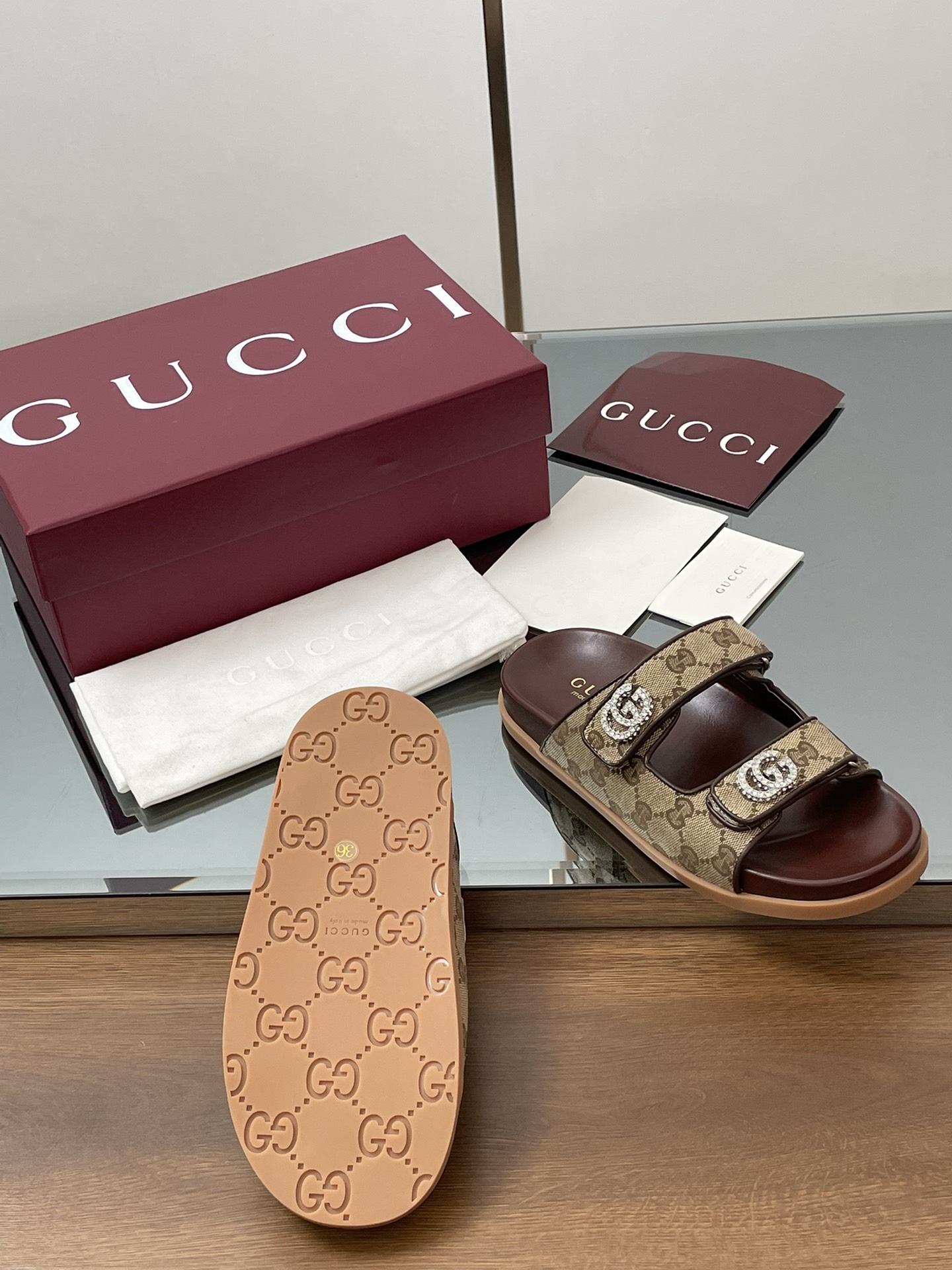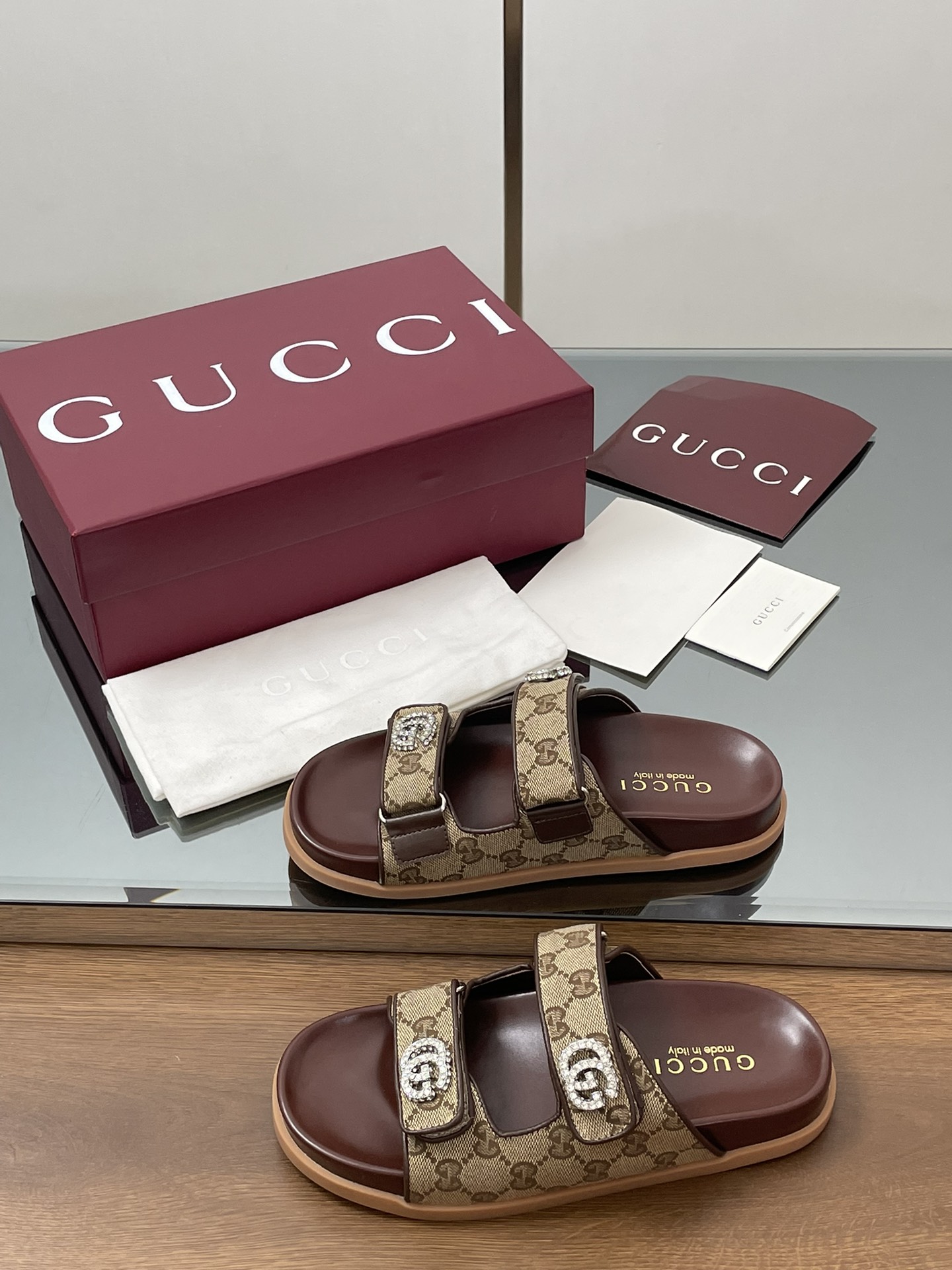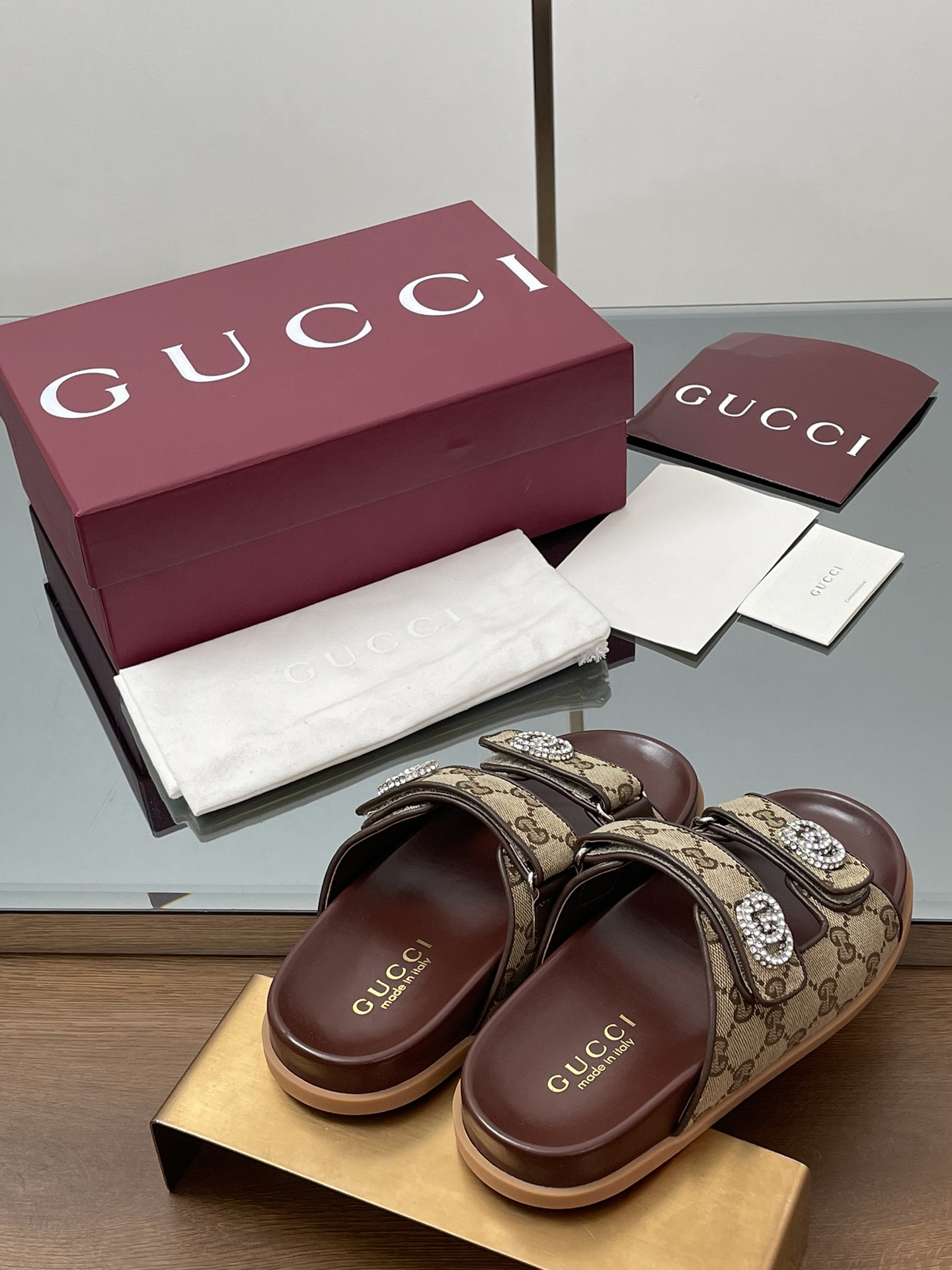 这款鞋子是AAAAA 1:1 质量 (非常棒). 使用了和原版一模一样的材料. 商标部分也保持了和古奇/Gucci一样. 图片拍摄是实物鞋子拍摄, 您所收到的实物保证和我们图片一模一样.