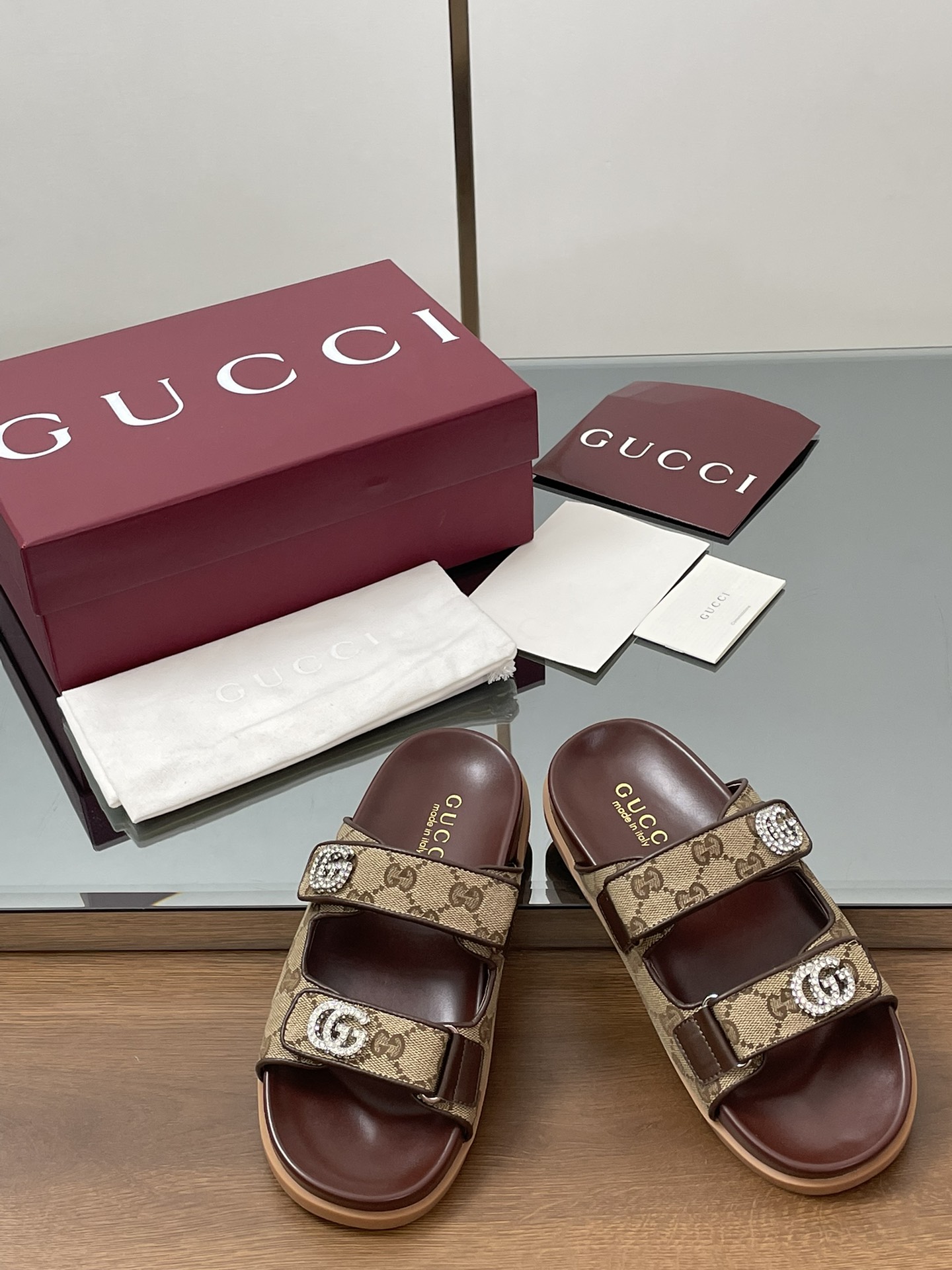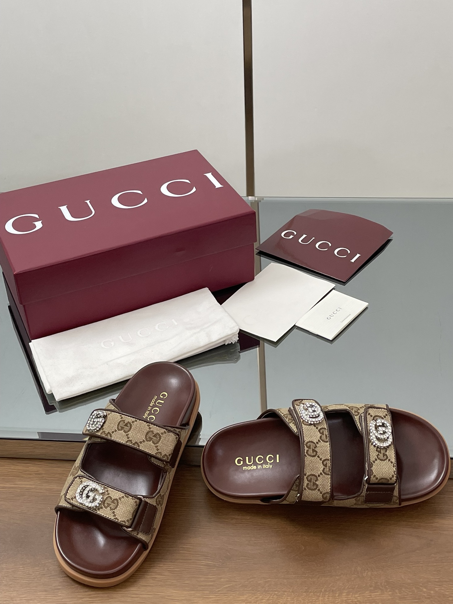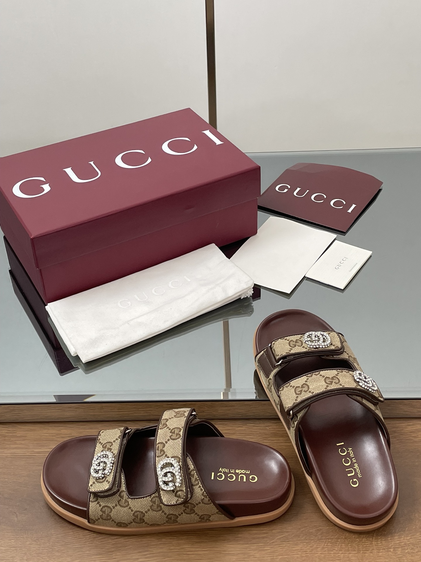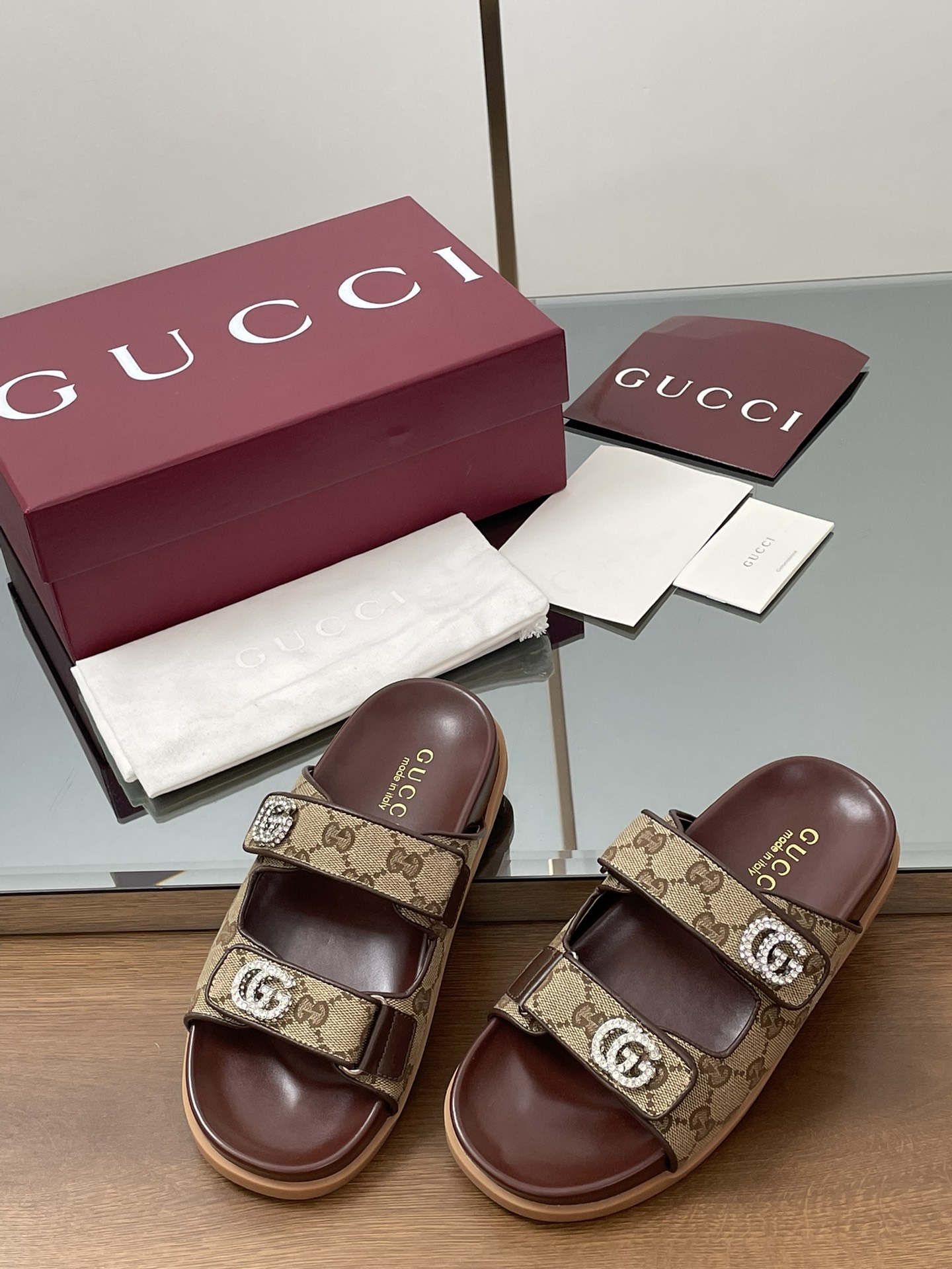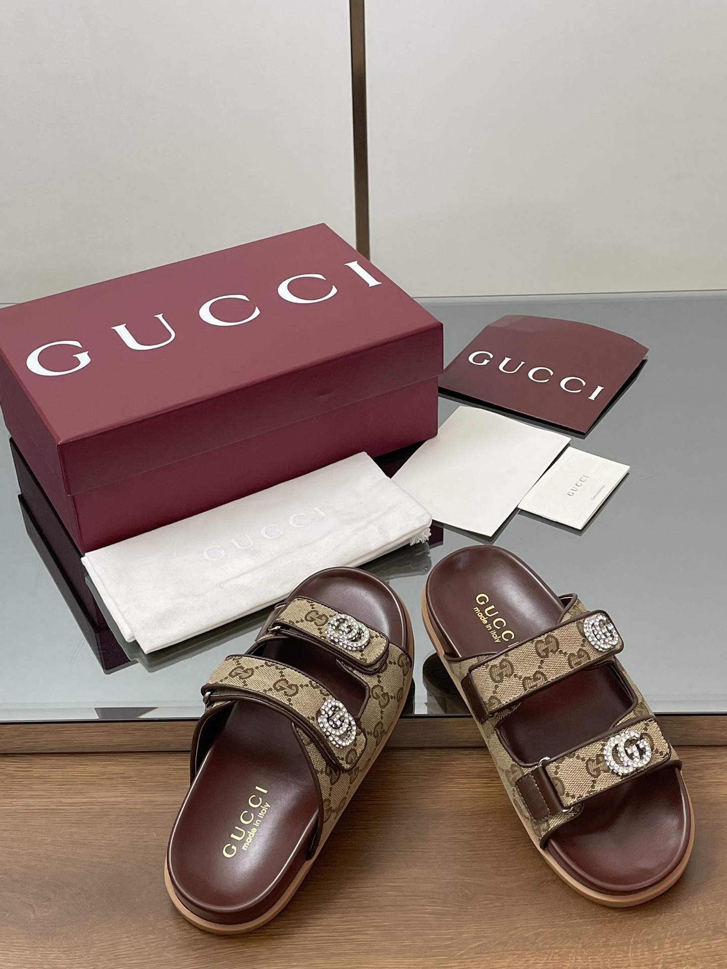 这款鞋子是AAAAA 1:1 质量 (非常棒). 使用了和原版一模一样的材料. 商标部分也保持了和古奇/Gucci一样. 图片拍摄是实物鞋子拍摄, 您所收到的实物保证和我们图片一模一样.