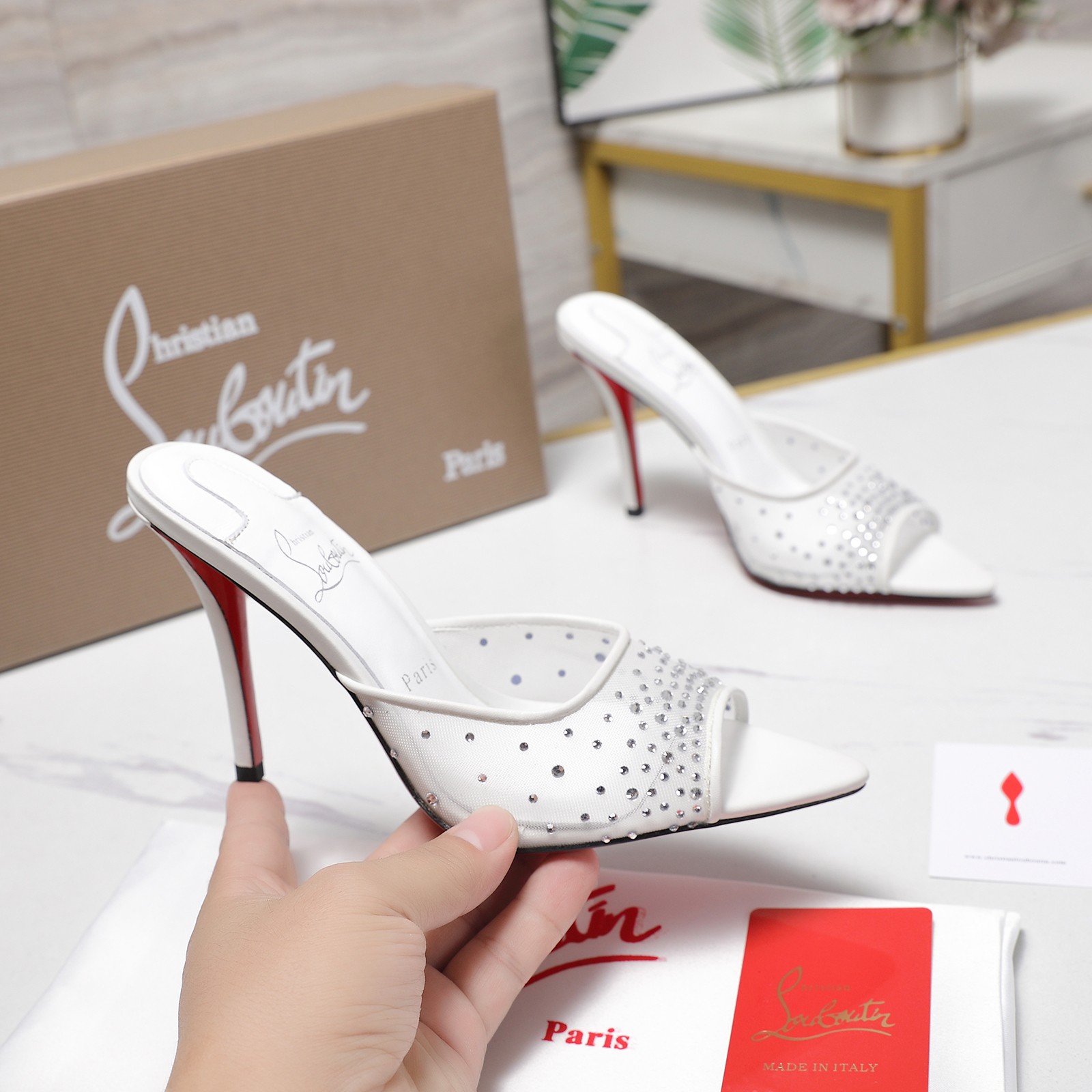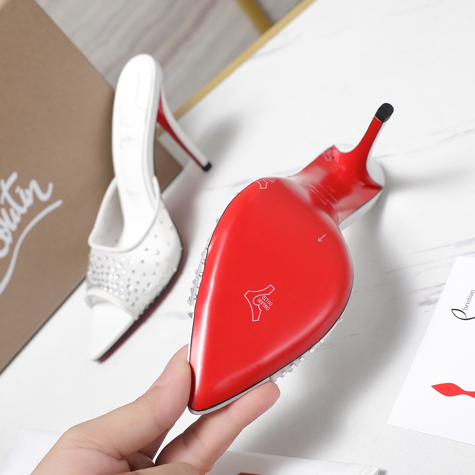 这款鞋子是AAAAA 1:1 质量 (非常棒). 使用了和原版一模一样的材料. 商标部分也保持了和克里斯提·鲁布托/Christian Louboutin一样. 图片拍摄是实物鞋子拍摄, 您所收到的实物保证和我们图片一模一样.