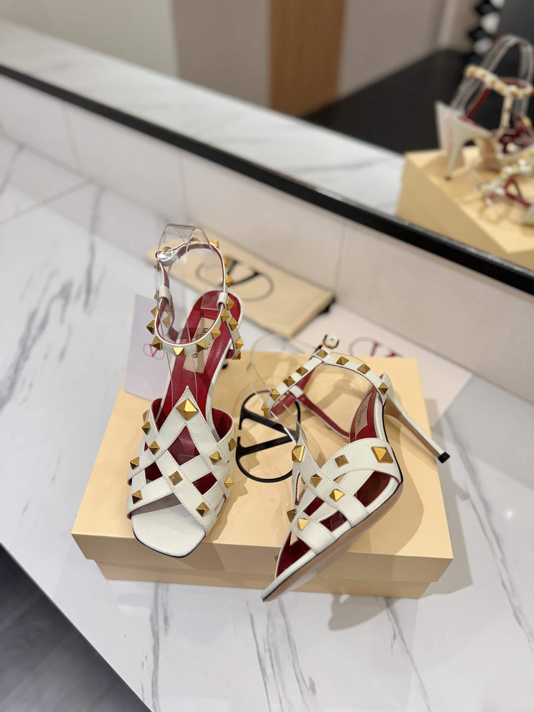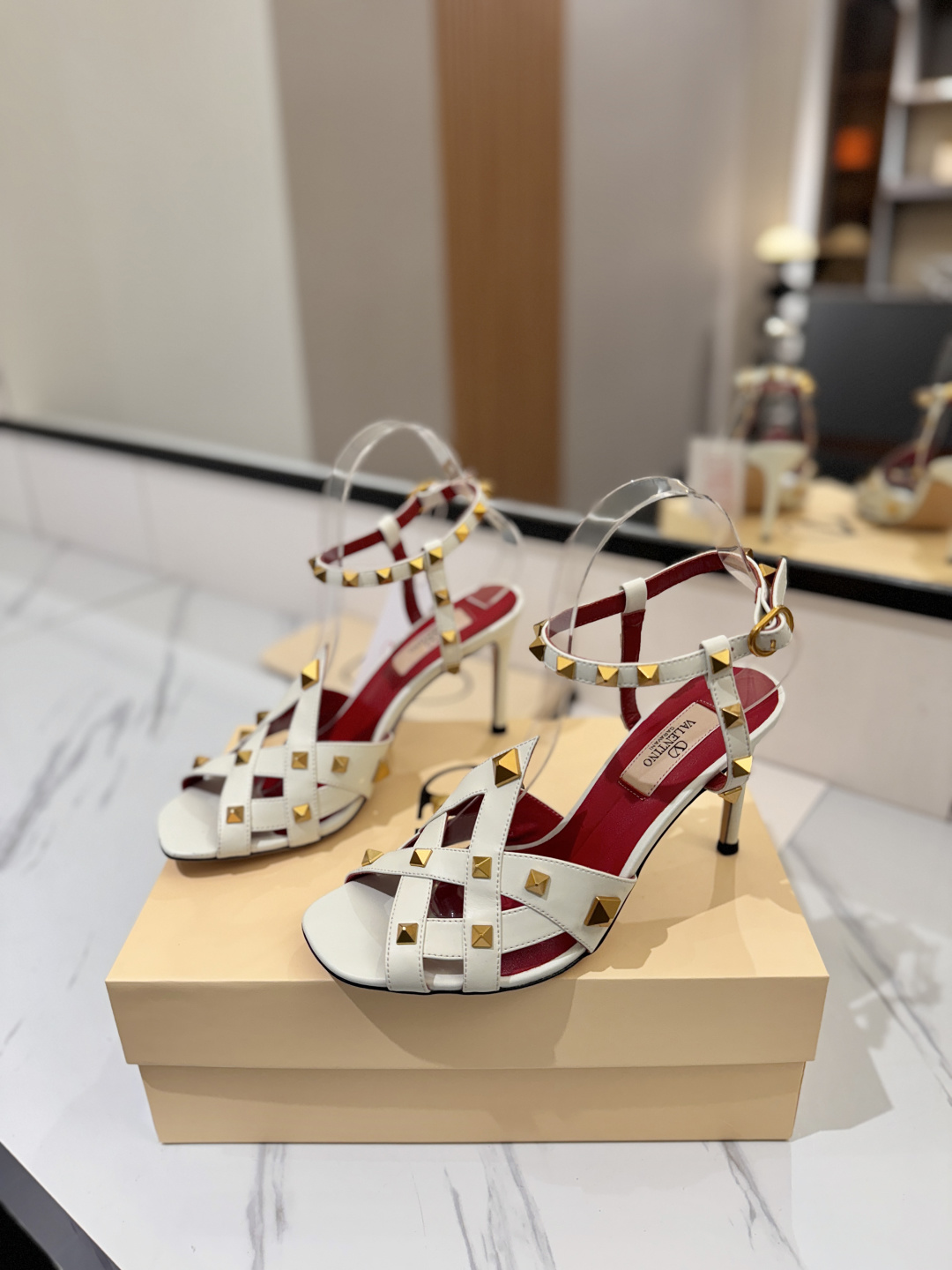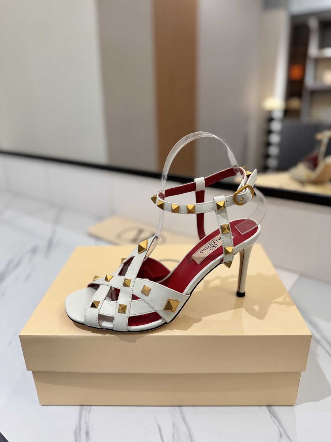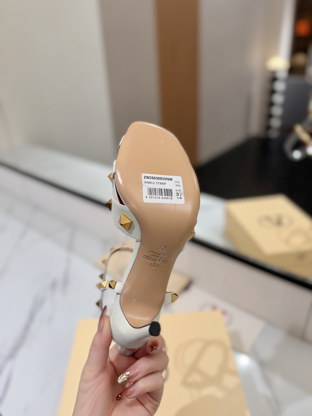这款鞋子是AAAAA 1:1 质量 (非常棒). 使用了和原版一模一样的材料. 商标部分也保持了和华伦天奴/Valentino一样. 图片拍摄是实物鞋子拍摄, 您所收到的实物保证和我们图片一模一样.