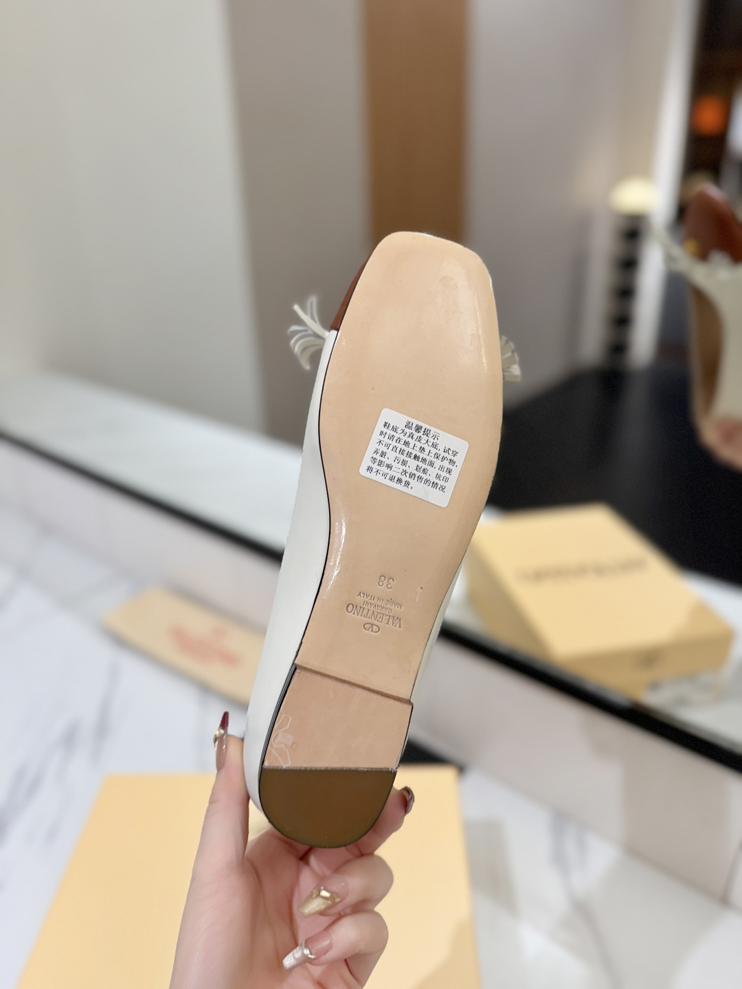 这款鞋子是AAAAA 1:1 质量 (非常棒). 使用了和原版一模一样的材料. 商标部分也保持了和华伦天奴/Valentino一样. 图片拍摄是实物鞋子拍摄, 您所收到的实物保证和我们图片一模一样.