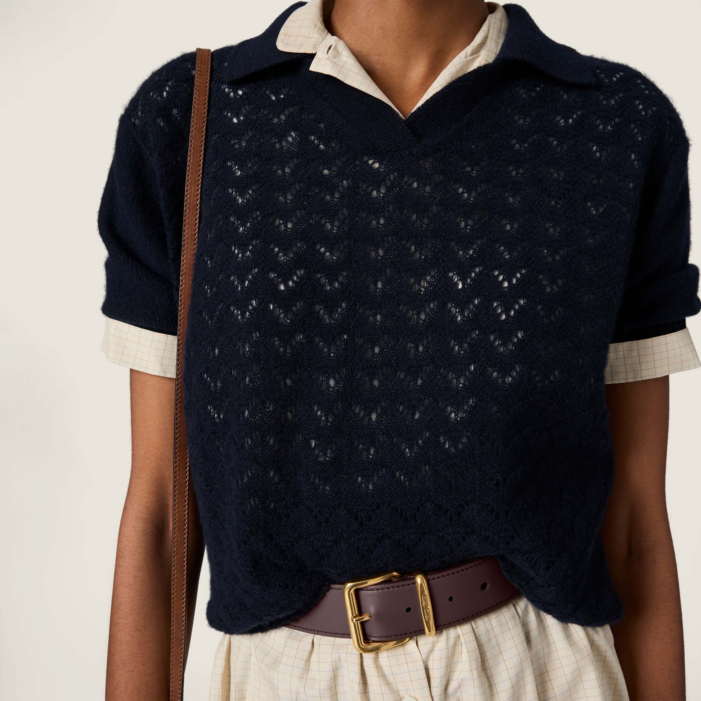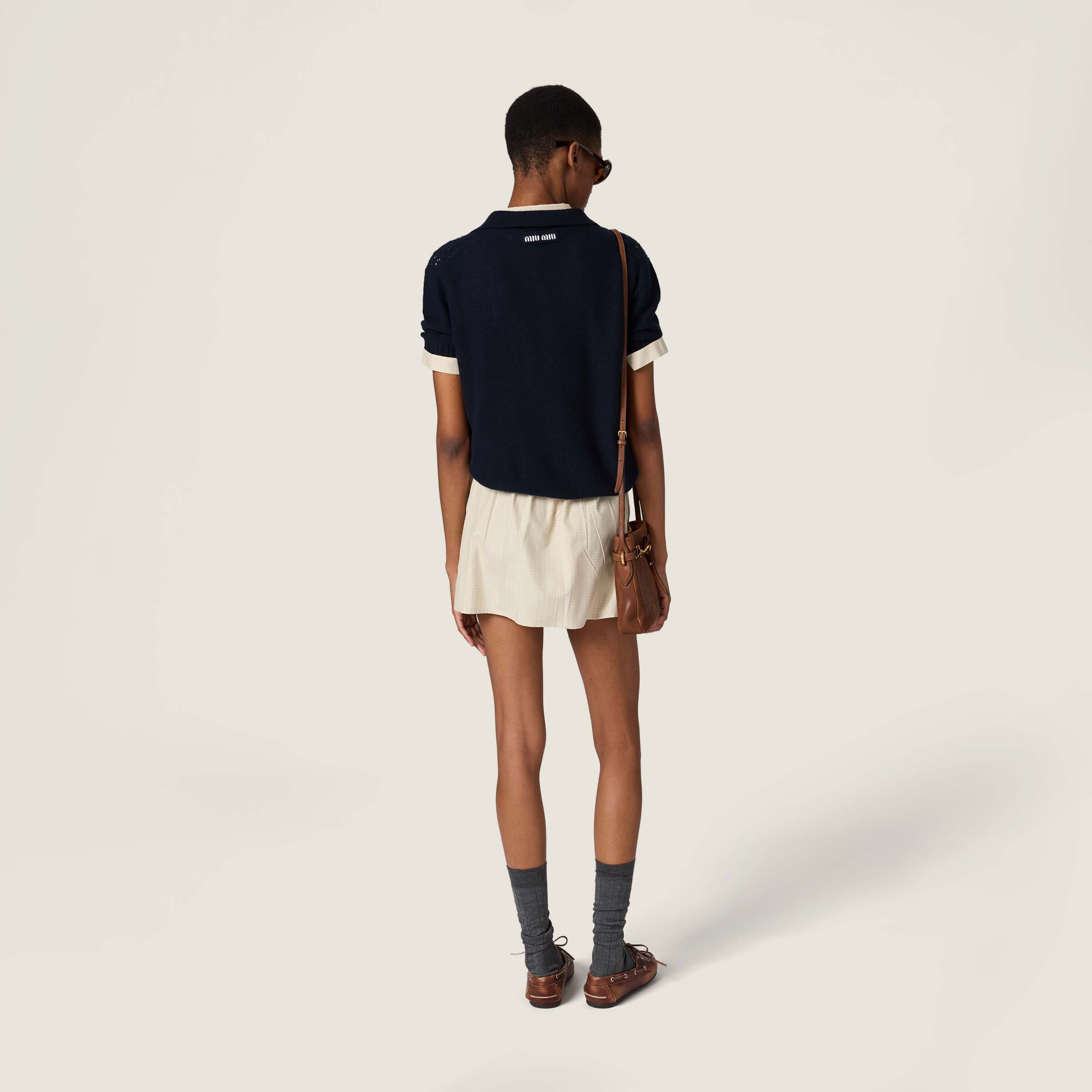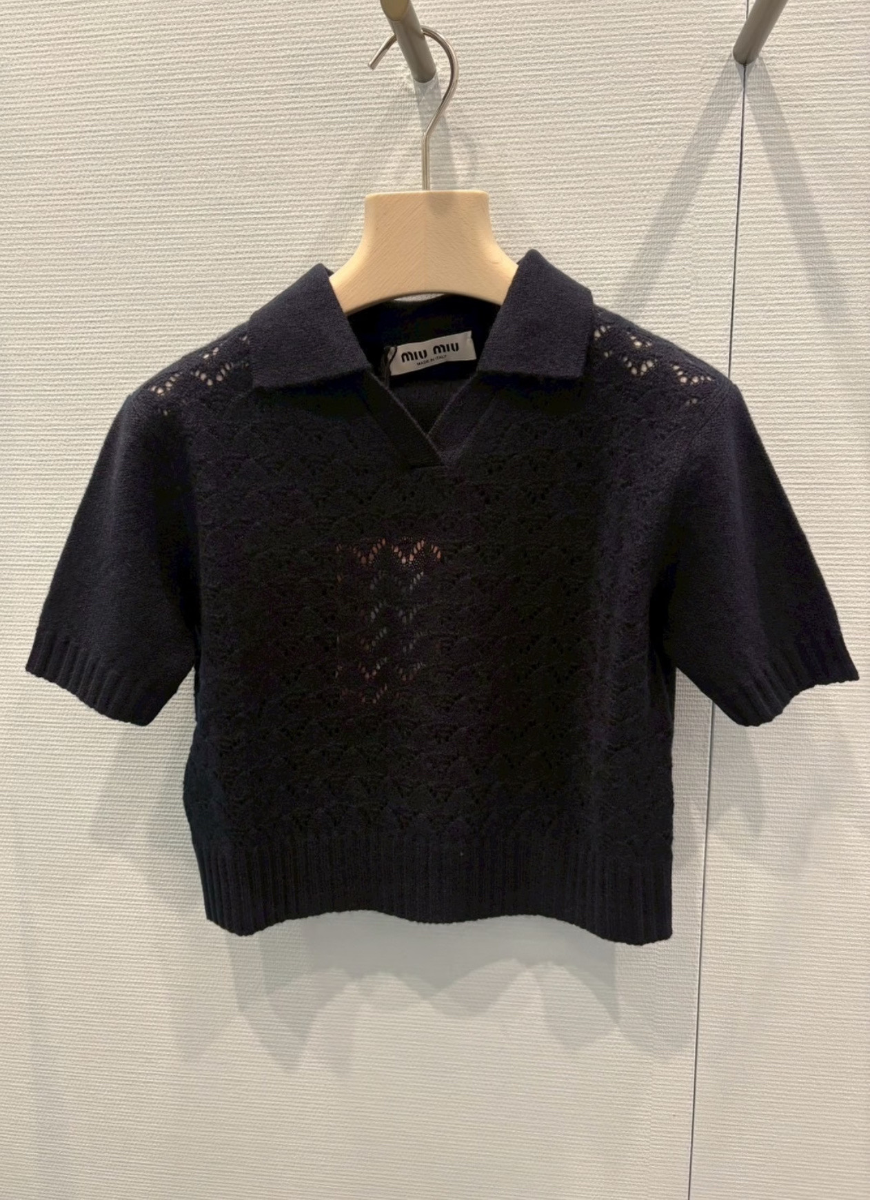 这款衣服是AAAAA 1:1 质量 (非常棒). 使用了和原版一模一样的材料. 商标部分也保持了和缪缪/Miu Miu一样. 图片拍摄是实物衣服拍摄, 您所收到的实物保证和我们图片一模一样.