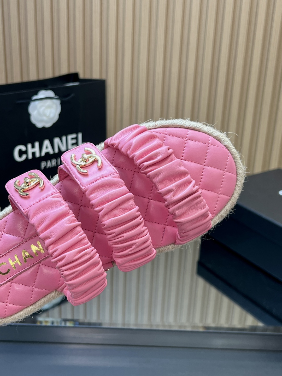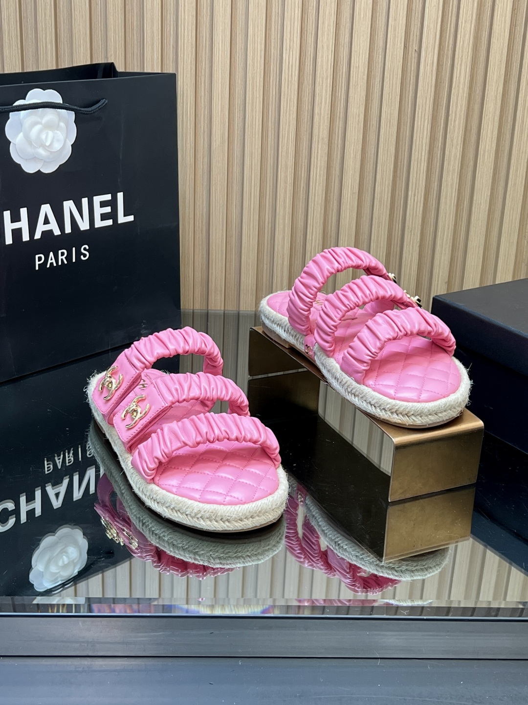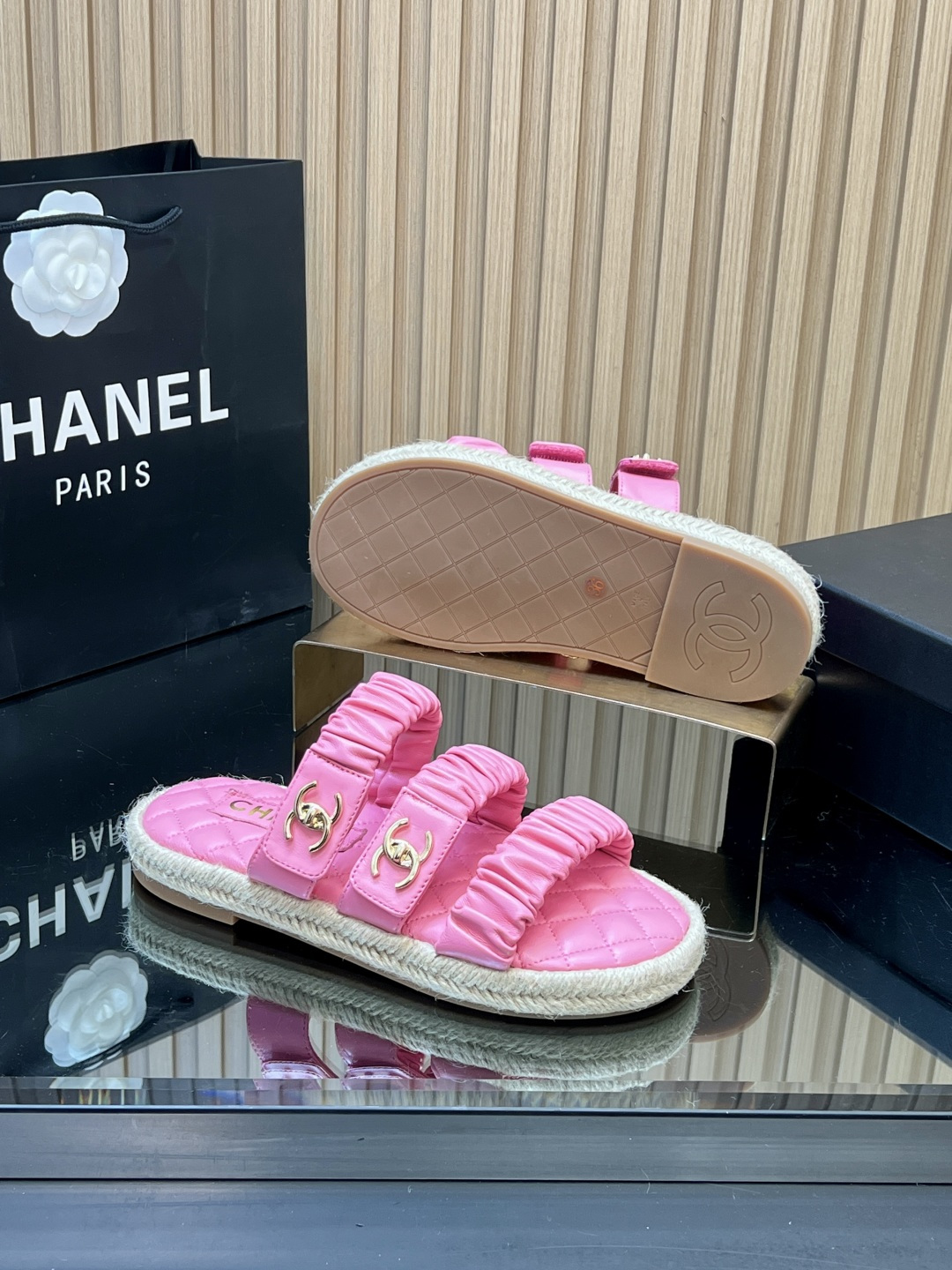这款鞋子是AAAAA 1:1 质量 (非常棒). 使用了和原版一模一样的材料. 商标部分也保持了和香奈儿/Chanel一样. 图片拍摄是实物鞋子拍摄, 您所收到的实物保证和我们图片一模一样.