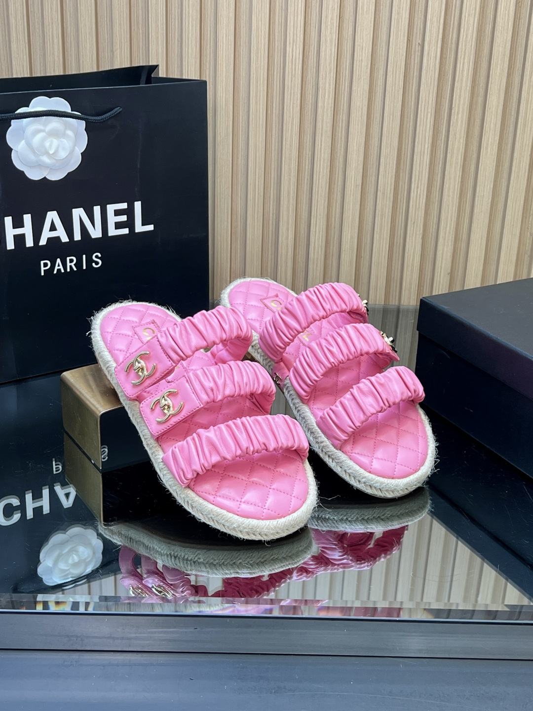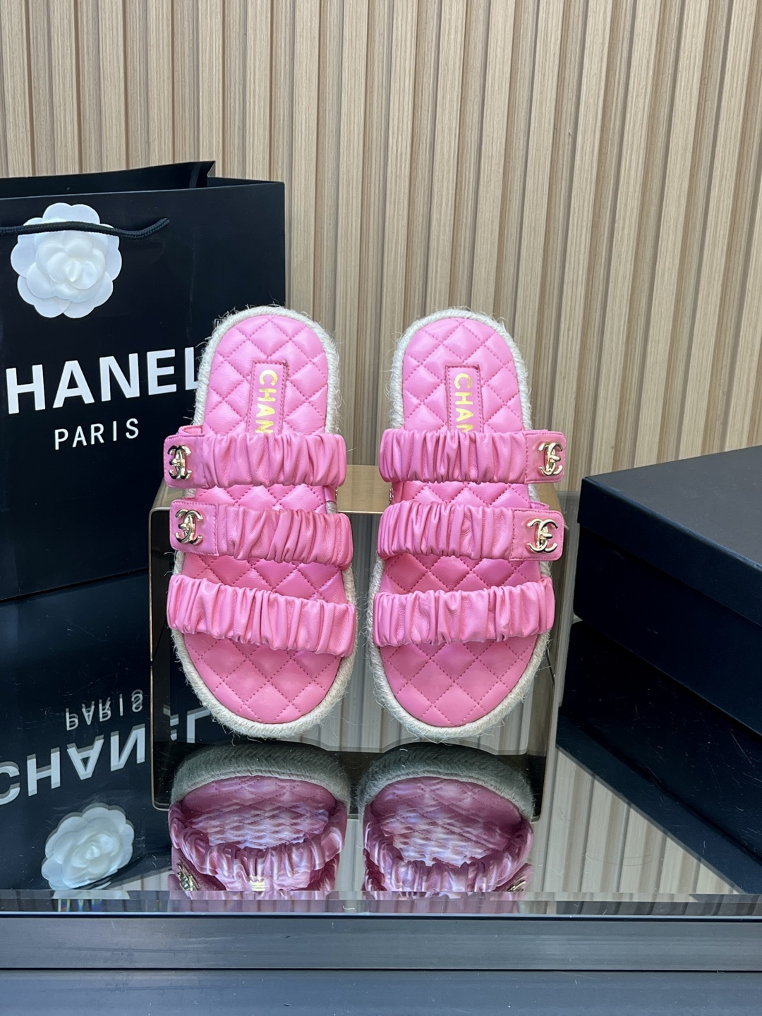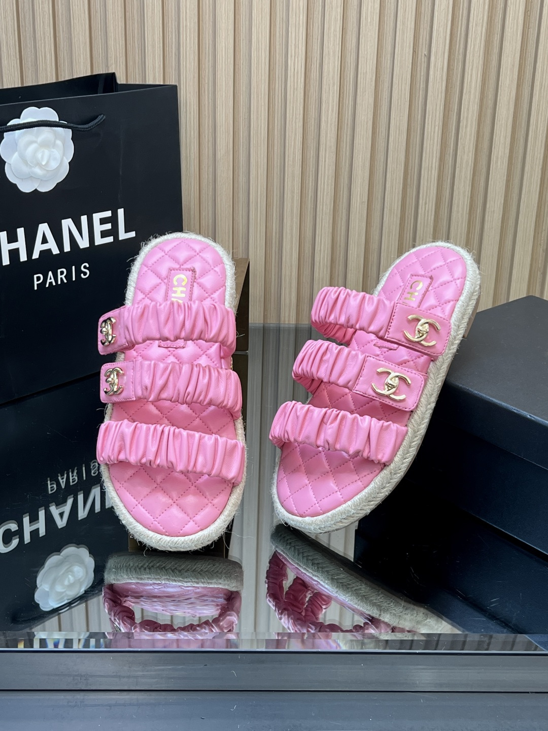 这款鞋子是AAAAA 1:1 质量 (非常棒). 使用了和原版一模一样的材料. 商标部分也保持了和香奈儿/Chanel一样. 图片拍摄是实物鞋子拍摄, 您所收到的实物保证和我们图片一模一样.