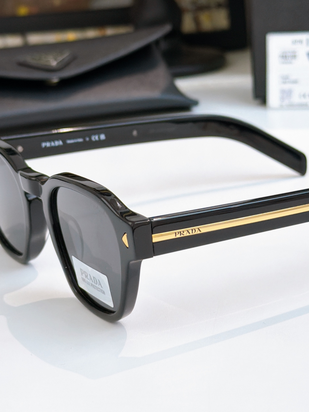 这款太阳眼镜是AAAAA 1:1 质量 (非常棒). 使用了和原版一模一样的材料. 商标部分也保持了和普拉达/Prada一样. 图片拍摄是实物太阳眼镜拍摄, 您所收到的实物保证和我们图片一模一样.