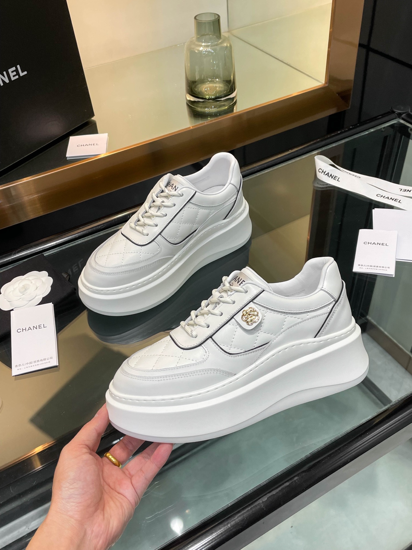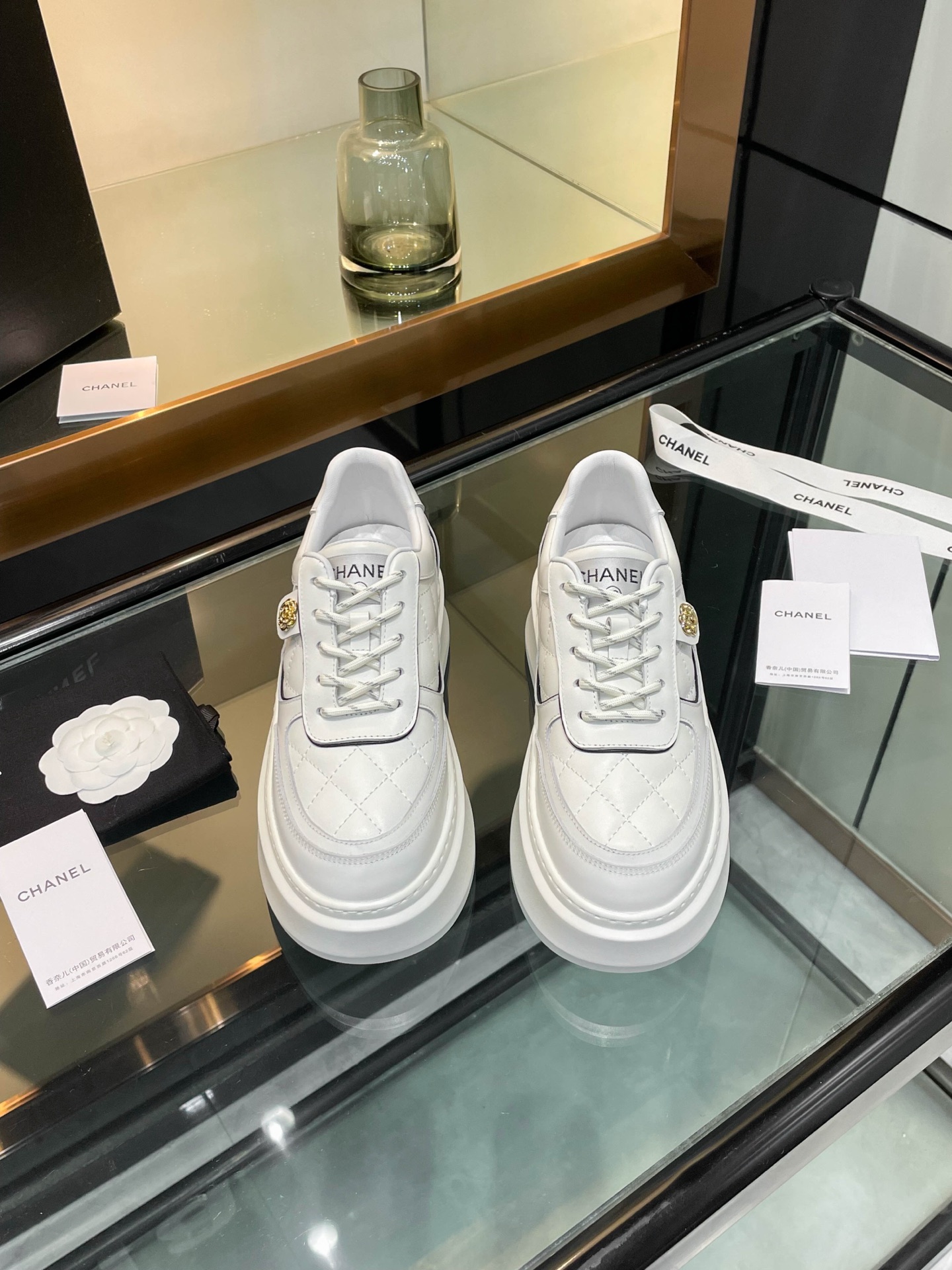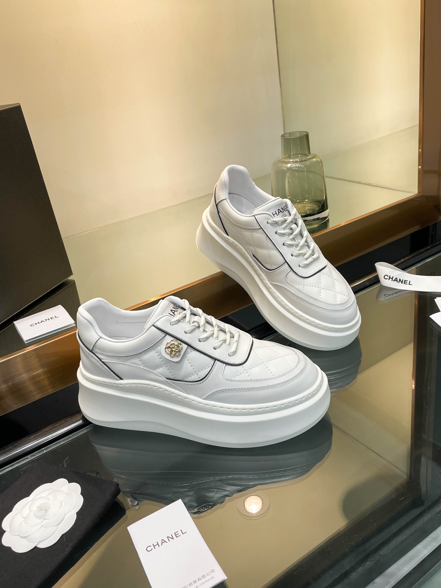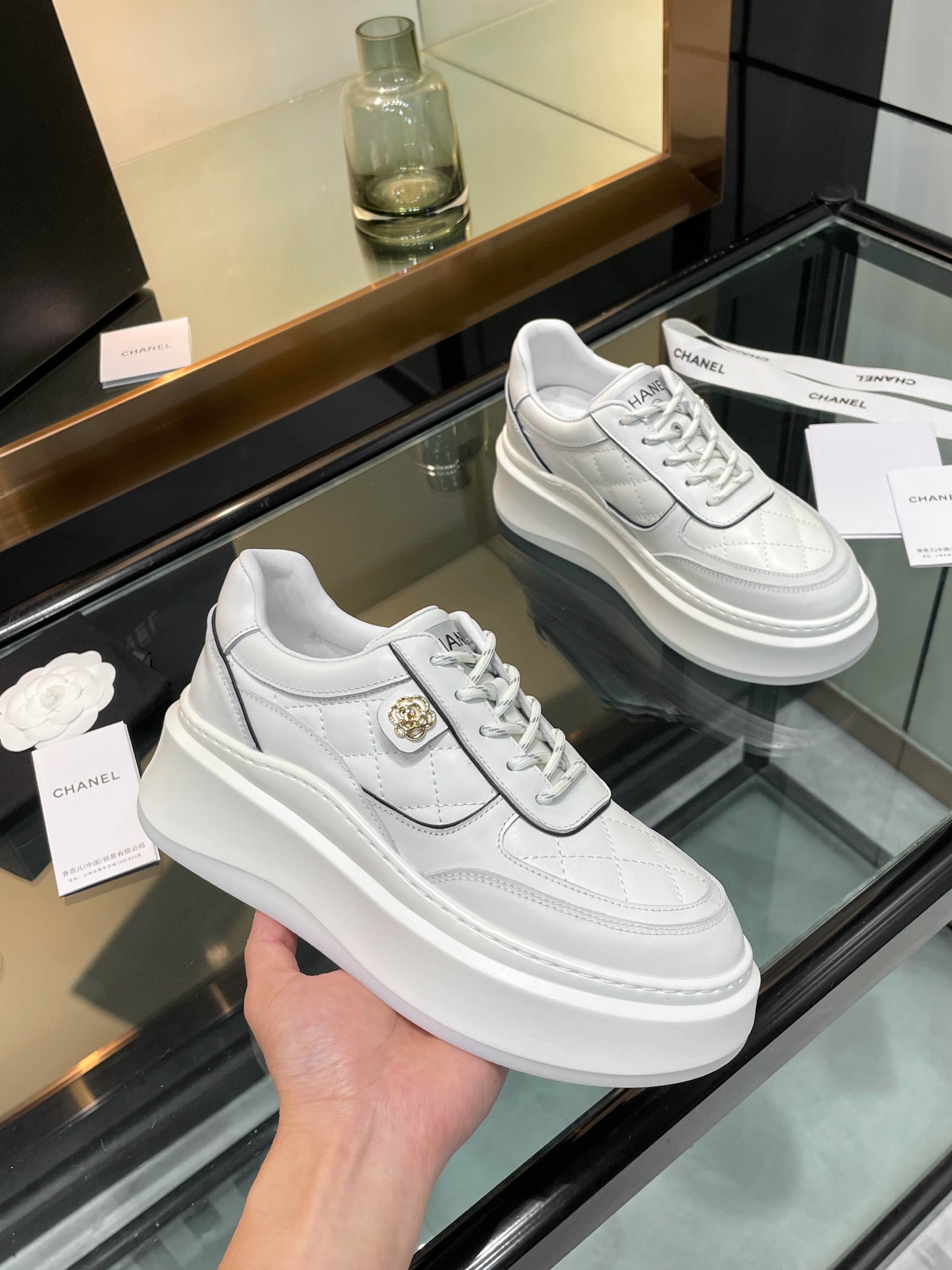 这款鞋子是AAAAA 1:1 质量 (非常棒). 使用了和原版一模一样的材料. 商标部分也保持了和香奈儿/Chanel一样. 图片拍摄是实物鞋子拍摄, 您所收到的实物保证和我们图片一模一样.