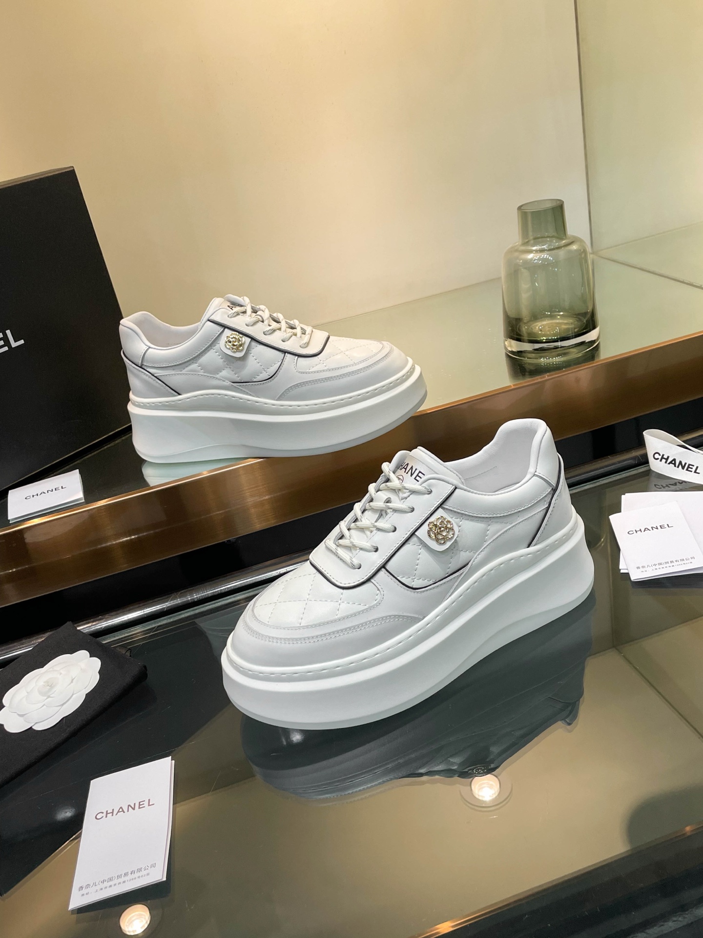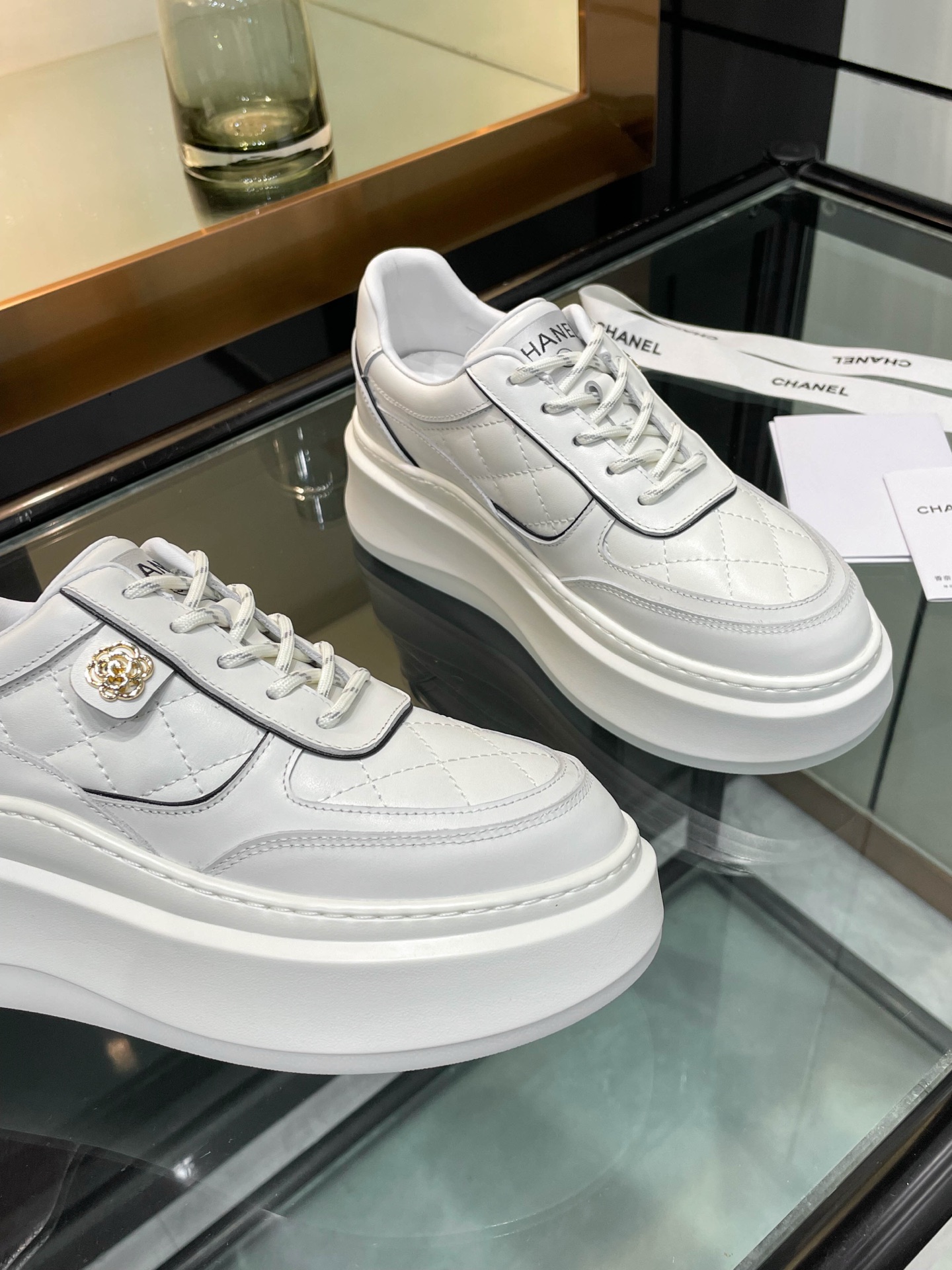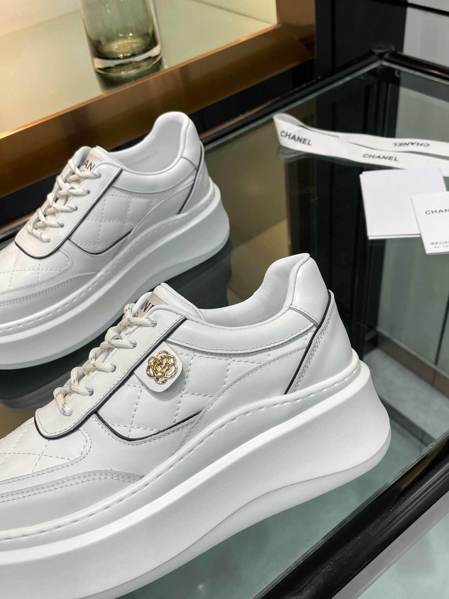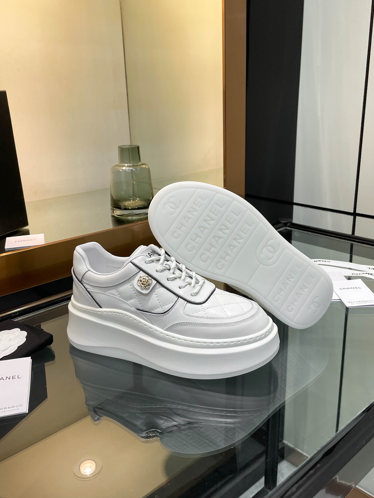 这款鞋子是AAAAA 1:1 质量 (非常棒). 使用了和原版一模一样的材料. 商标部分也保持了和香奈儿/Chanel一样. 图片拍摄是实物鞋子拍摄, 您所收到的实物保证和我们图片一模一样.