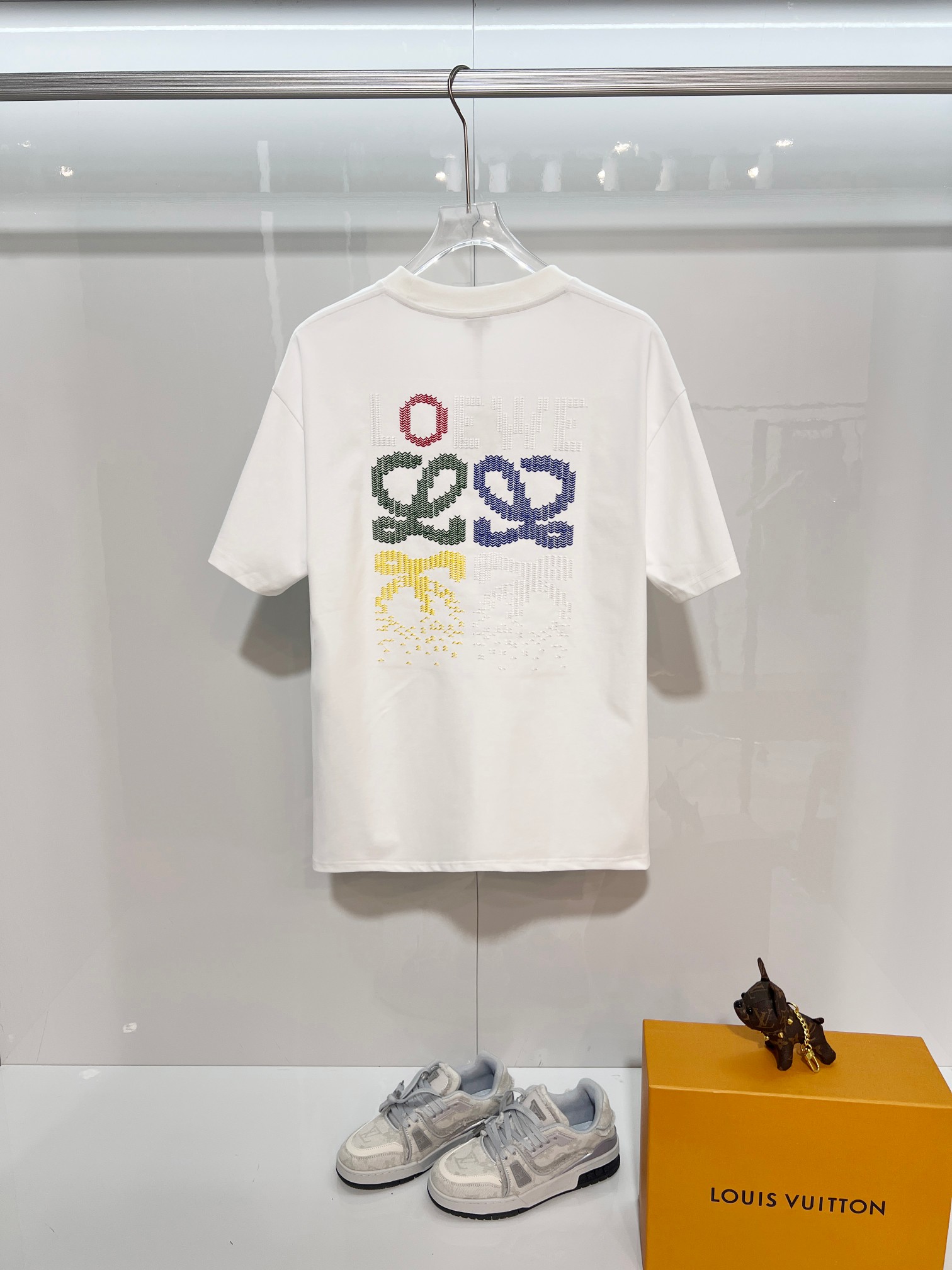 这款衣服是AAAAA 1:1 质量 (非常棒). 使用了和原版一模一样的材料. 商标部分也保持了和罗意威/Loewe一样. 图片拍摄是实物衣服拍摄, 您所收到的实物保证和我们图片一模一样.
