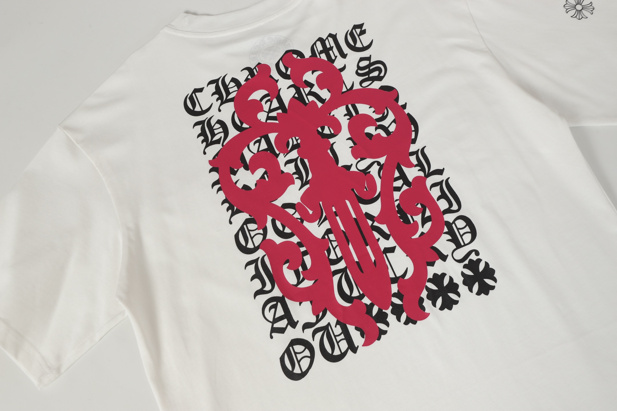 这款衣服是AAAAA 1:1 质量 (非常棒). 使用了和原版一模一样的材料. 商标部分也保持了和克罗心/Chrome Hearts一样. 图片拍摄是实物衣服拍摄, 您所收到的实物保证和我们图片一模一样.