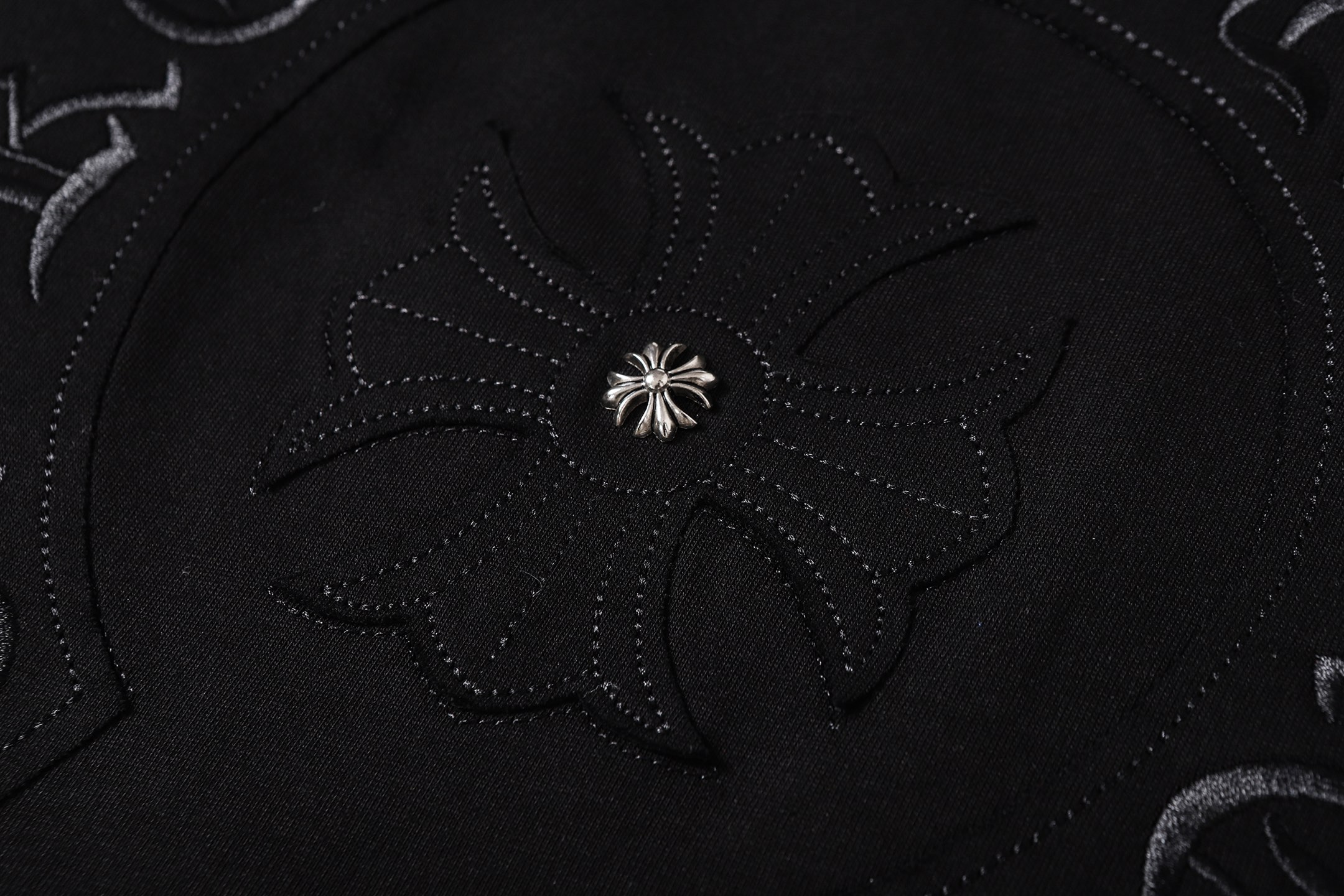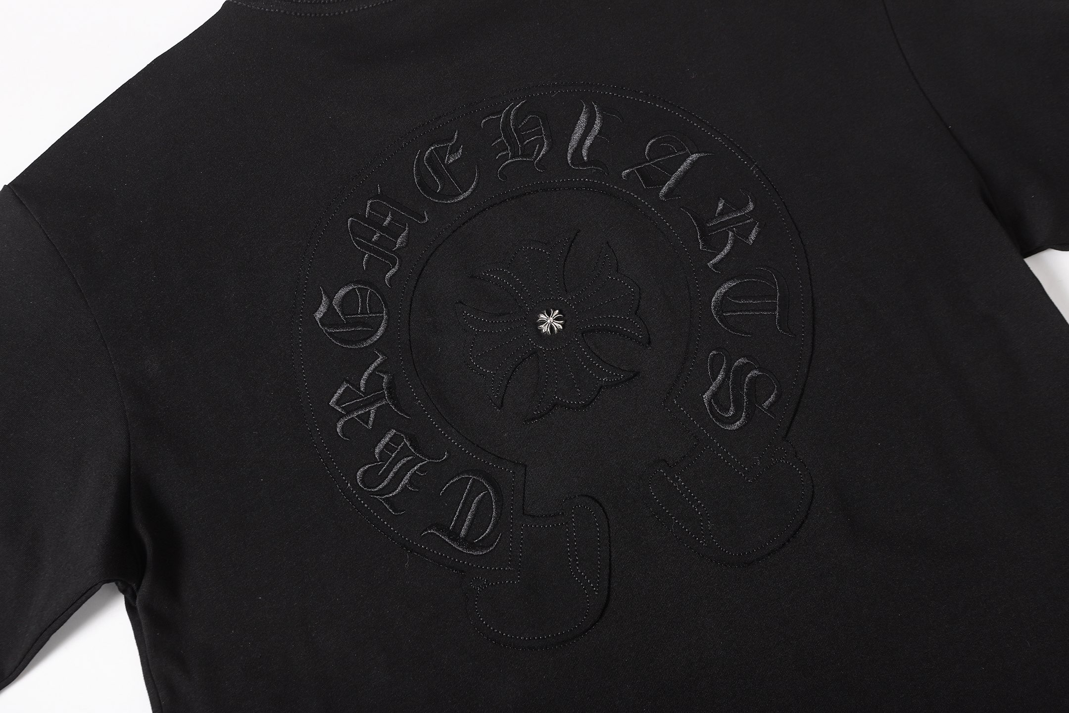 这款衣服是AAAAA 1:1 质量 (非常棒). 使用了和原版一模一样的材料. 商标部分也保持了和克罗心/Chrome Hearts一样. 图片拍摄是实物衣服拍摄, 您所收到的实物保证和我们图片一模一样.
