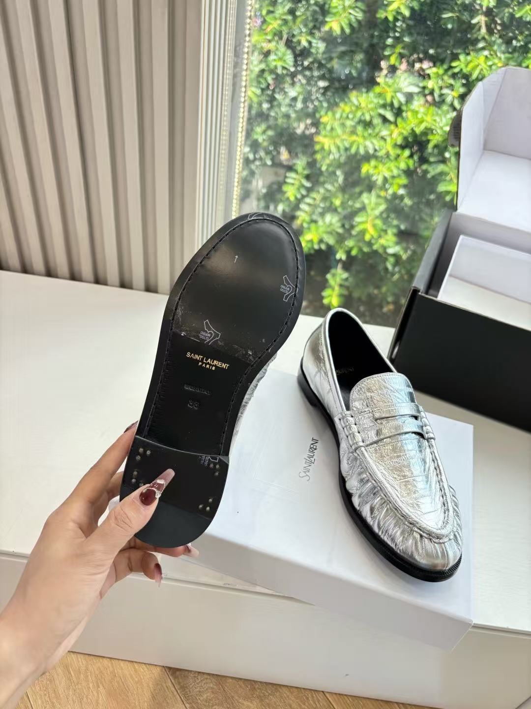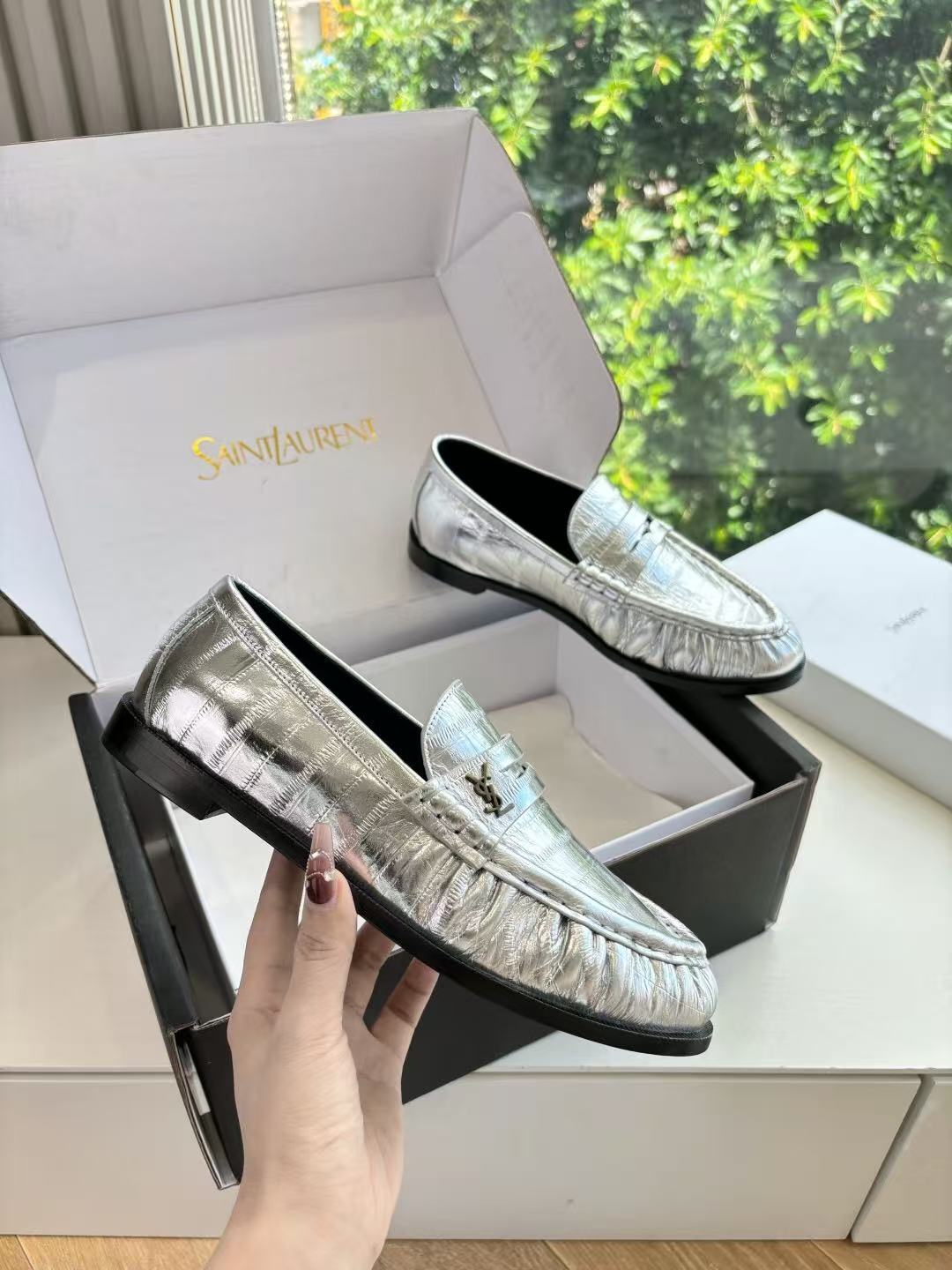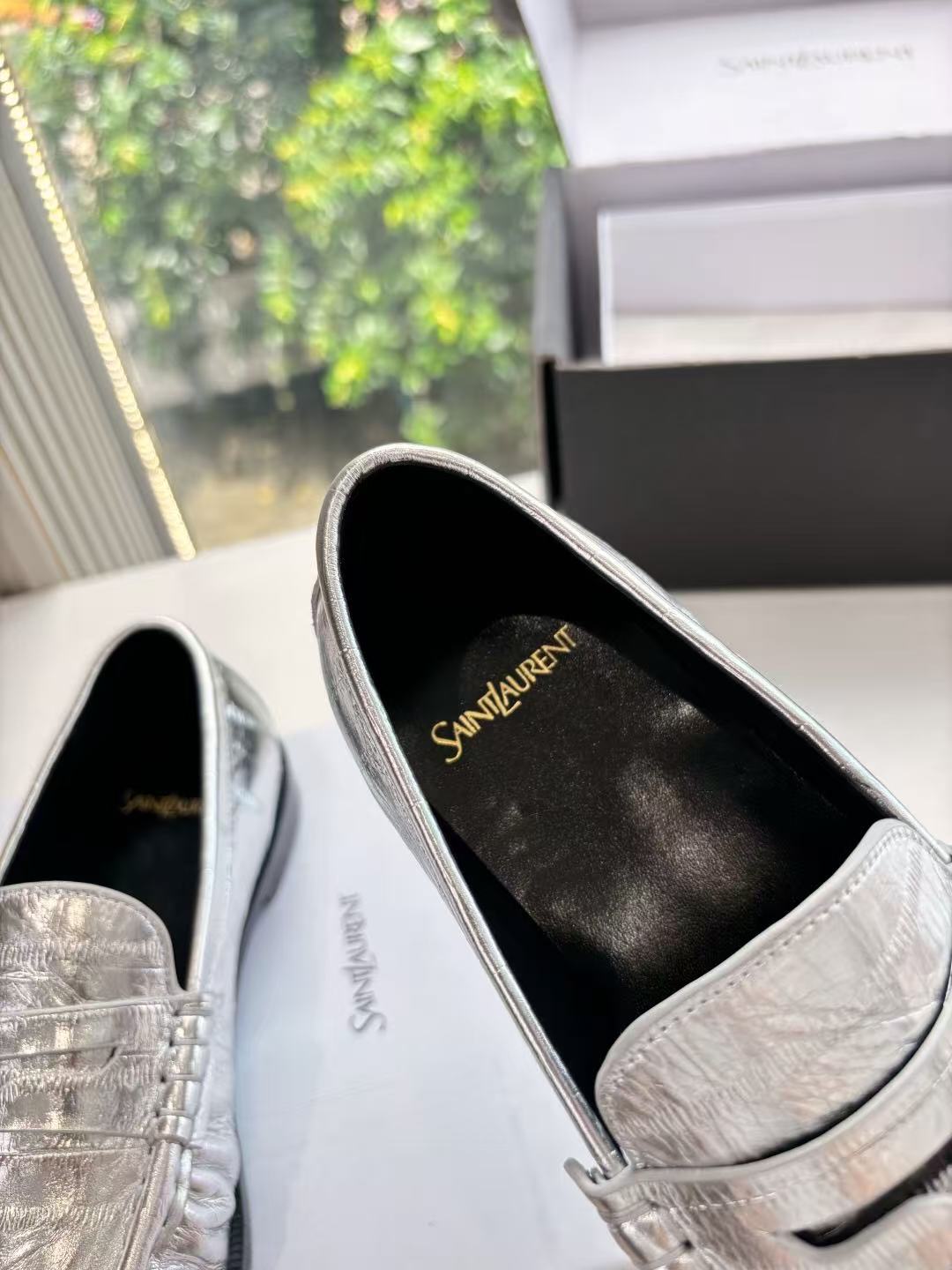 这款鞋子是AAAAA 1:1 质量 (非常棒). 使用了和原版一模一样的材料. 商标部分也保持了和圣罗兰/Saint Laurent一样. 图片拍摄是实物鞋子拍摄, 您所收到的实物保证和我们图片一模一样.