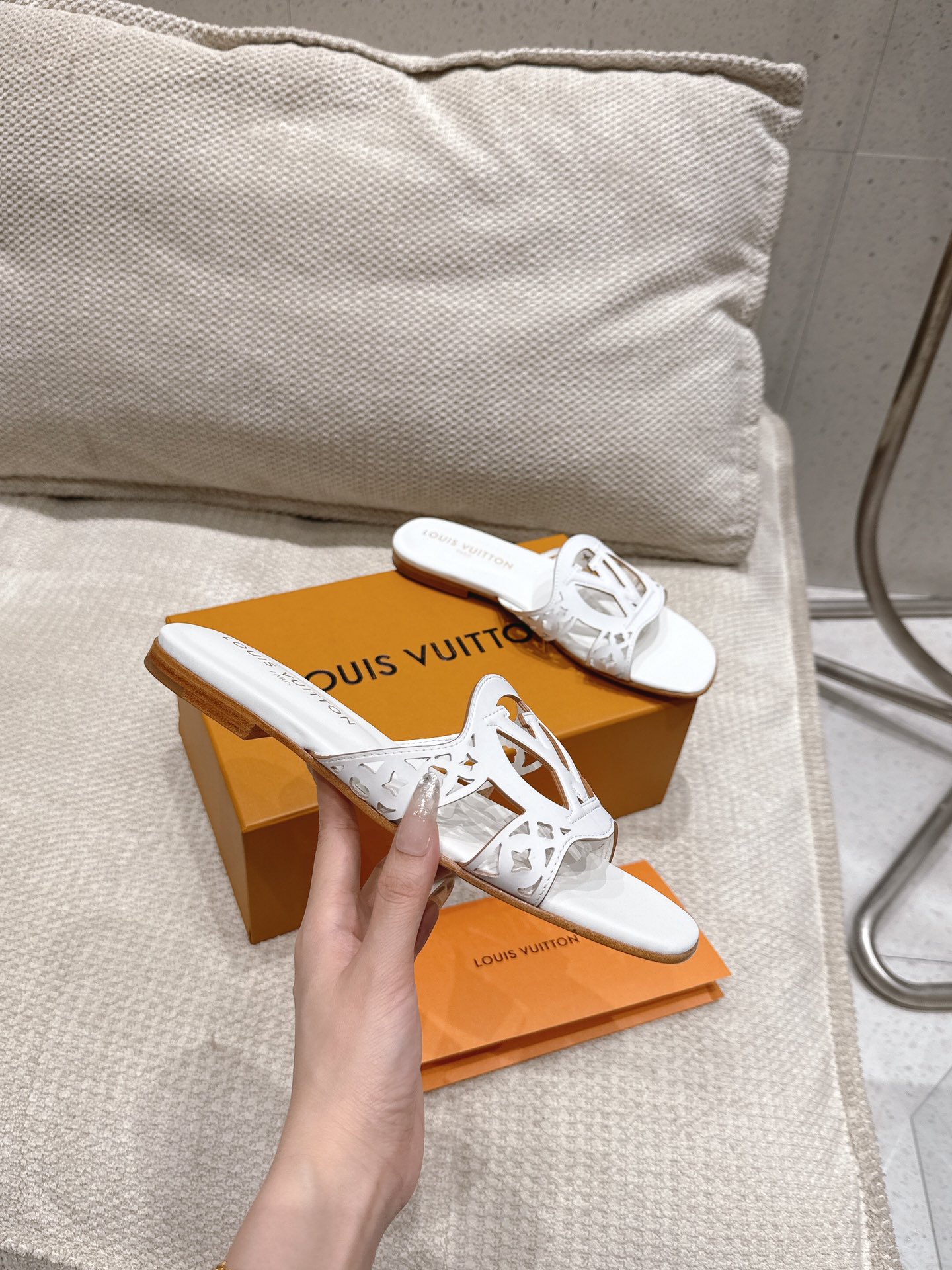 这款鞋子是AAAAA 1:1 质量 (非常棒). 使用了和原版一模一样的材料. 商标部分也保持了和路易威登/Louis Vuitton一样. 图片拍摄是实物鞋子拍摄, 您所收到的实物保证和我们图片一模一样.