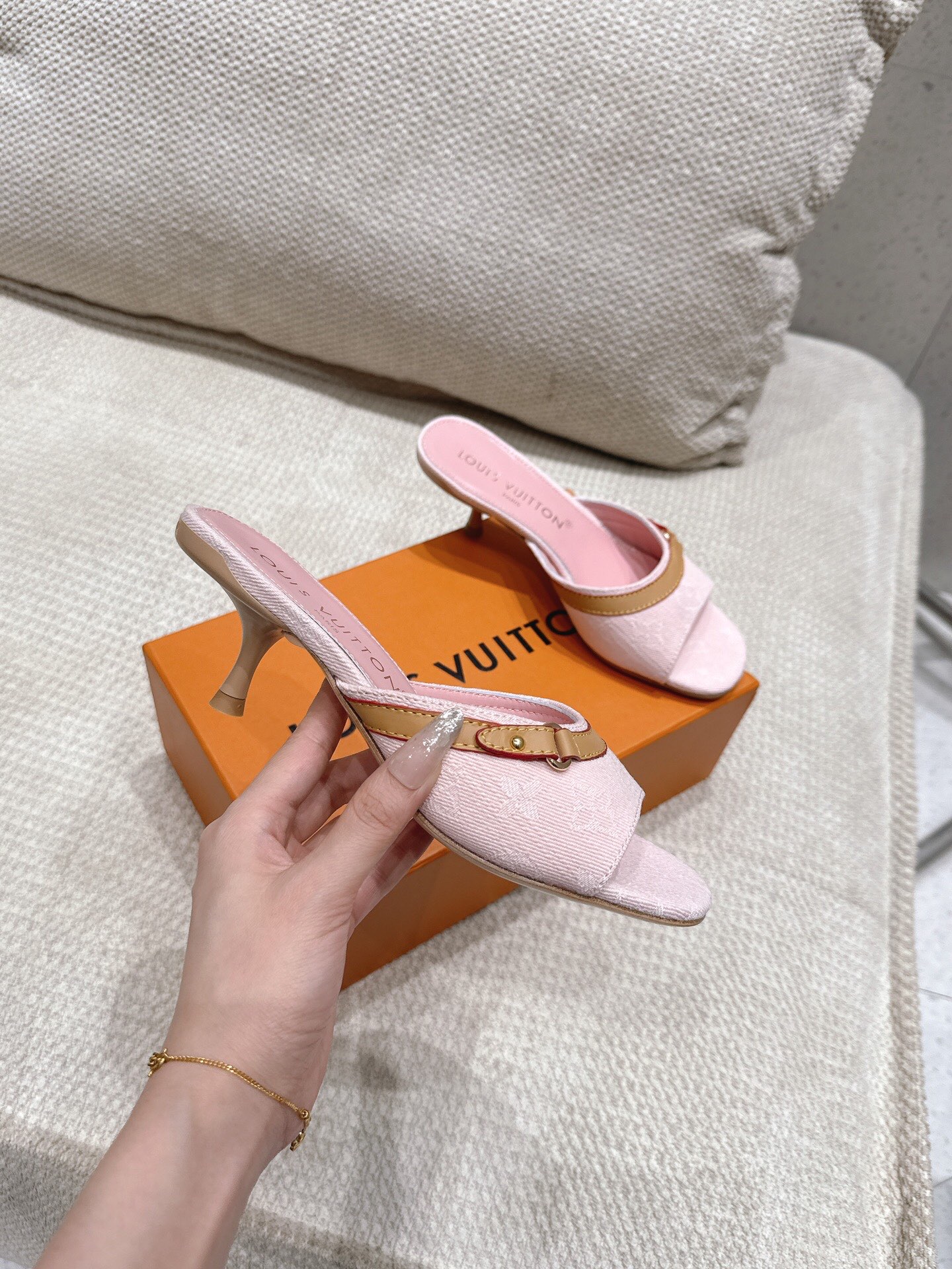 这款鞋子是AAAAA 1:1 质量 (非常棒). 使用了和原版一模一样的材料. 商标部分也保持了和路易威登/Louis Vuitton一样. 图片拍摄是实物鞋子拍摄, 您所收到的实物保证和我们图片一模一样.